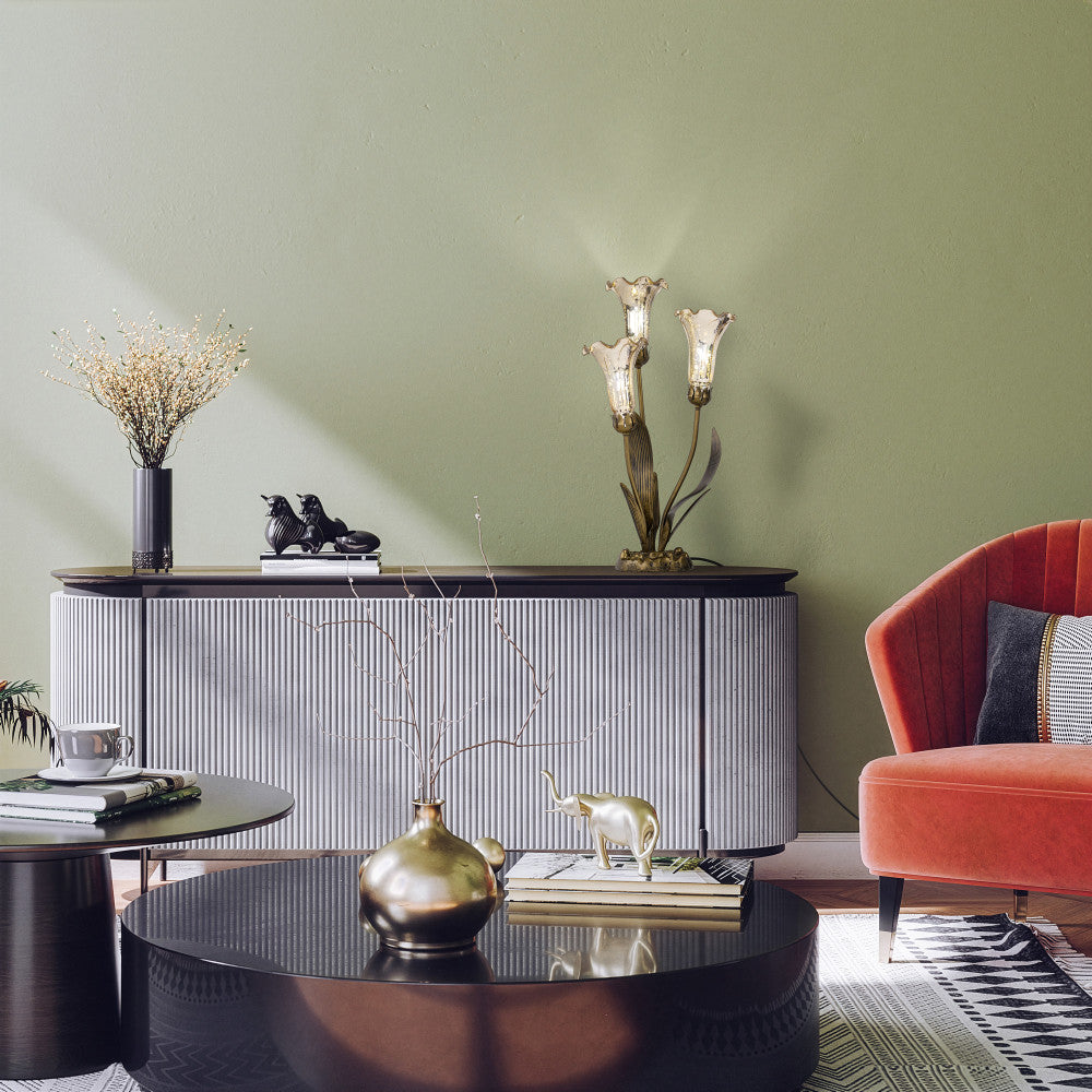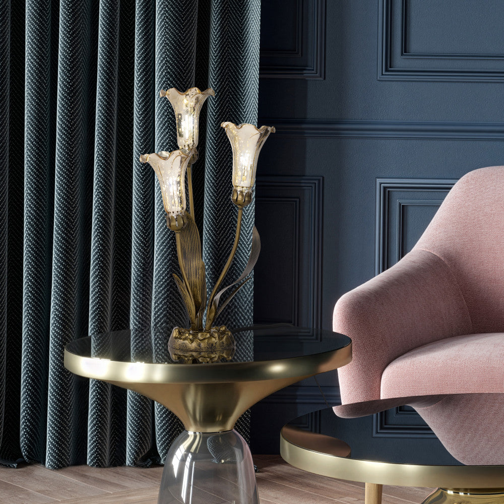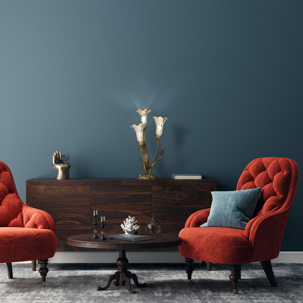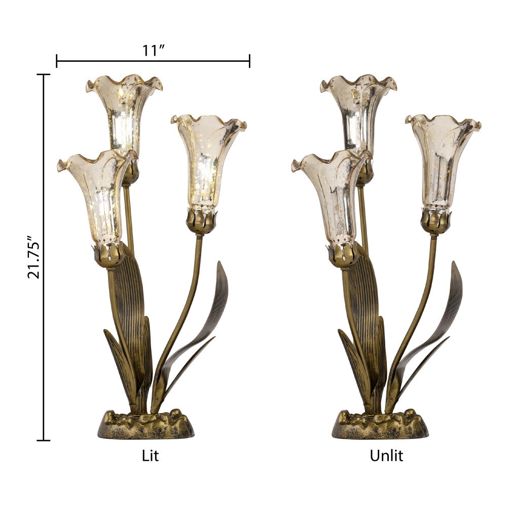 21.75"H Hand Blown Mercury Glass 3 Lily Uplight Accent Lamp