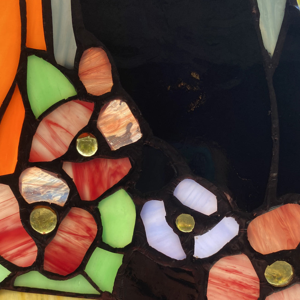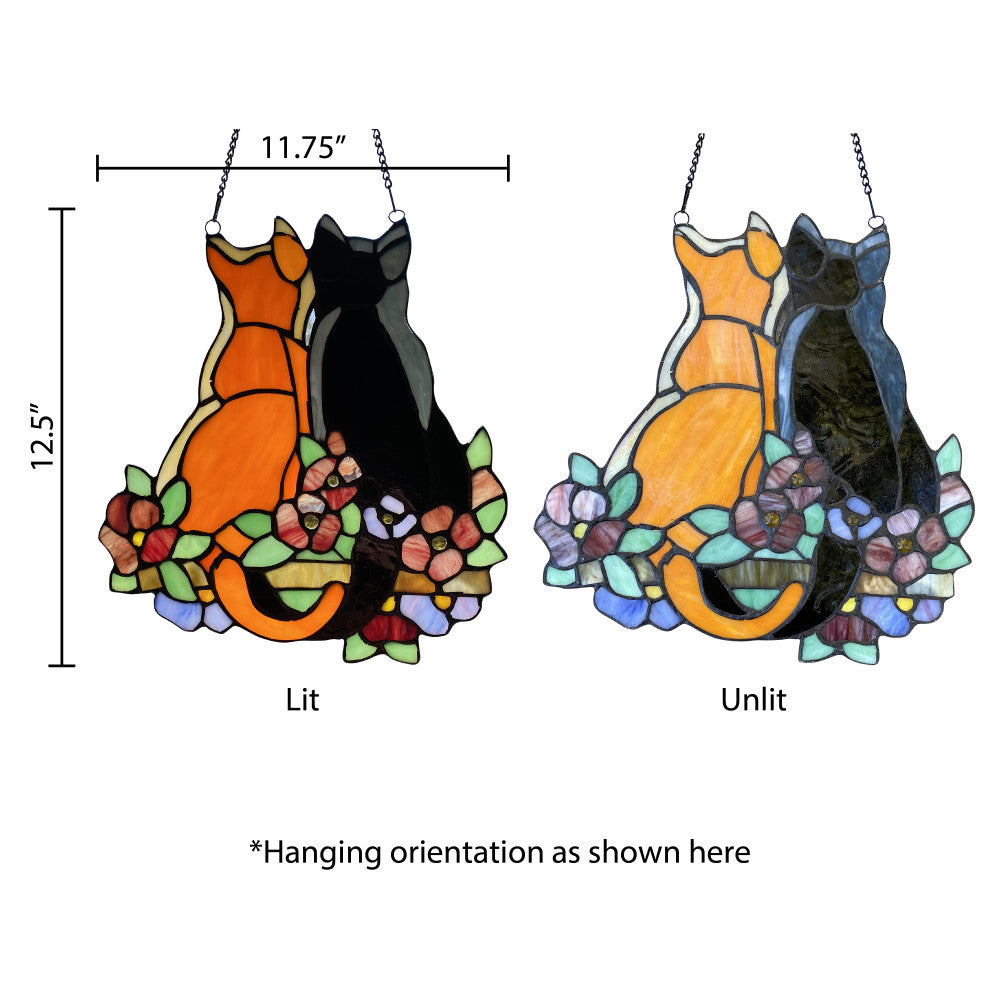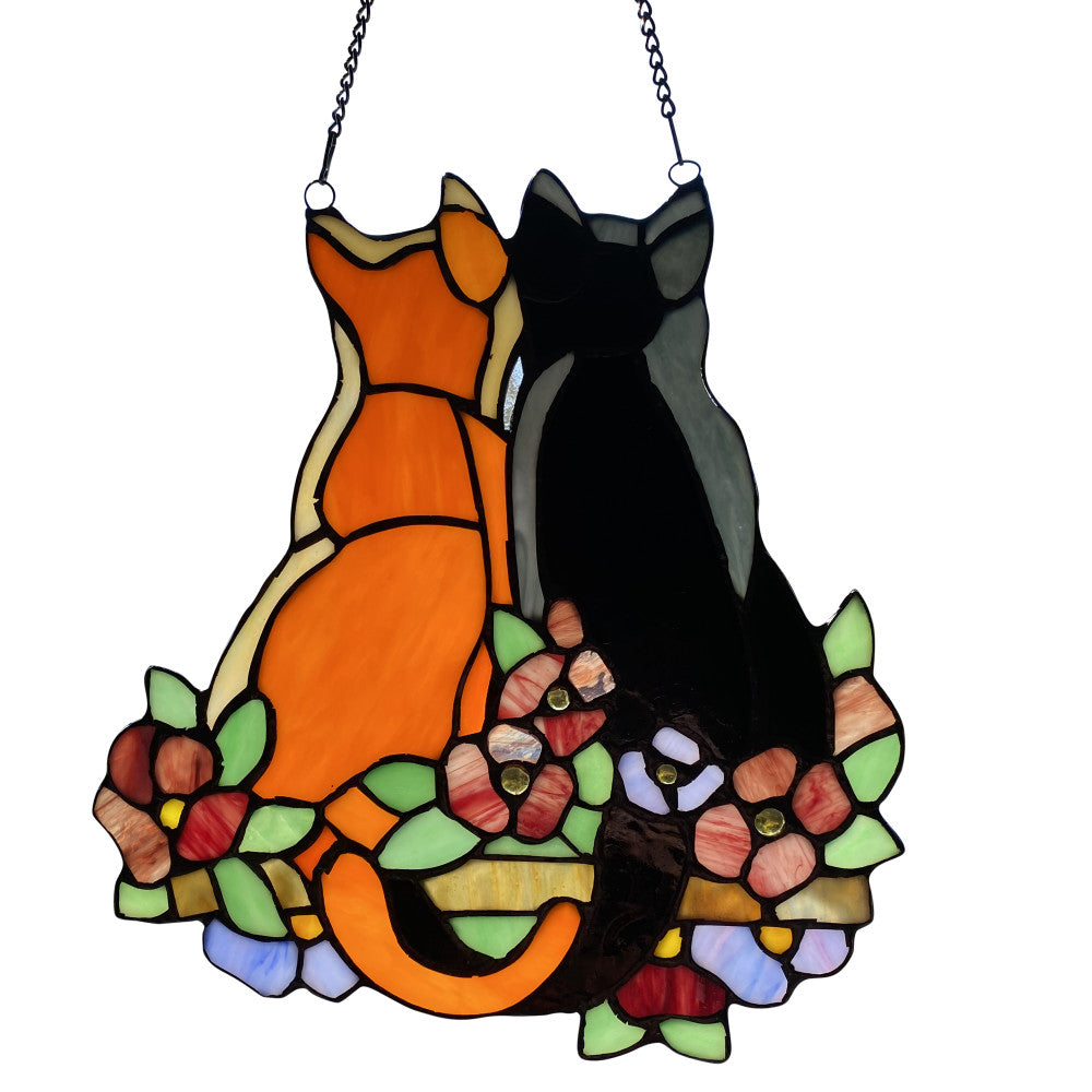 12.5"H Stained Glass Cats in the Garden Window Panel