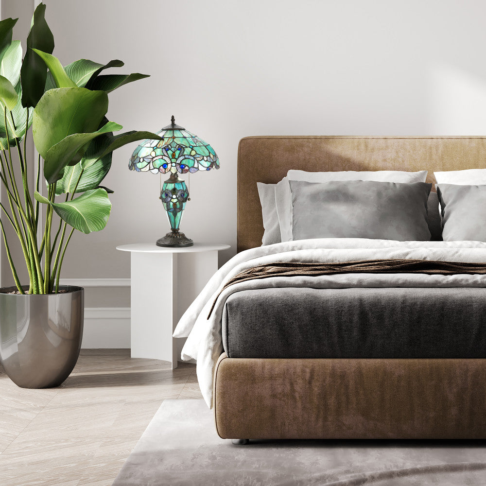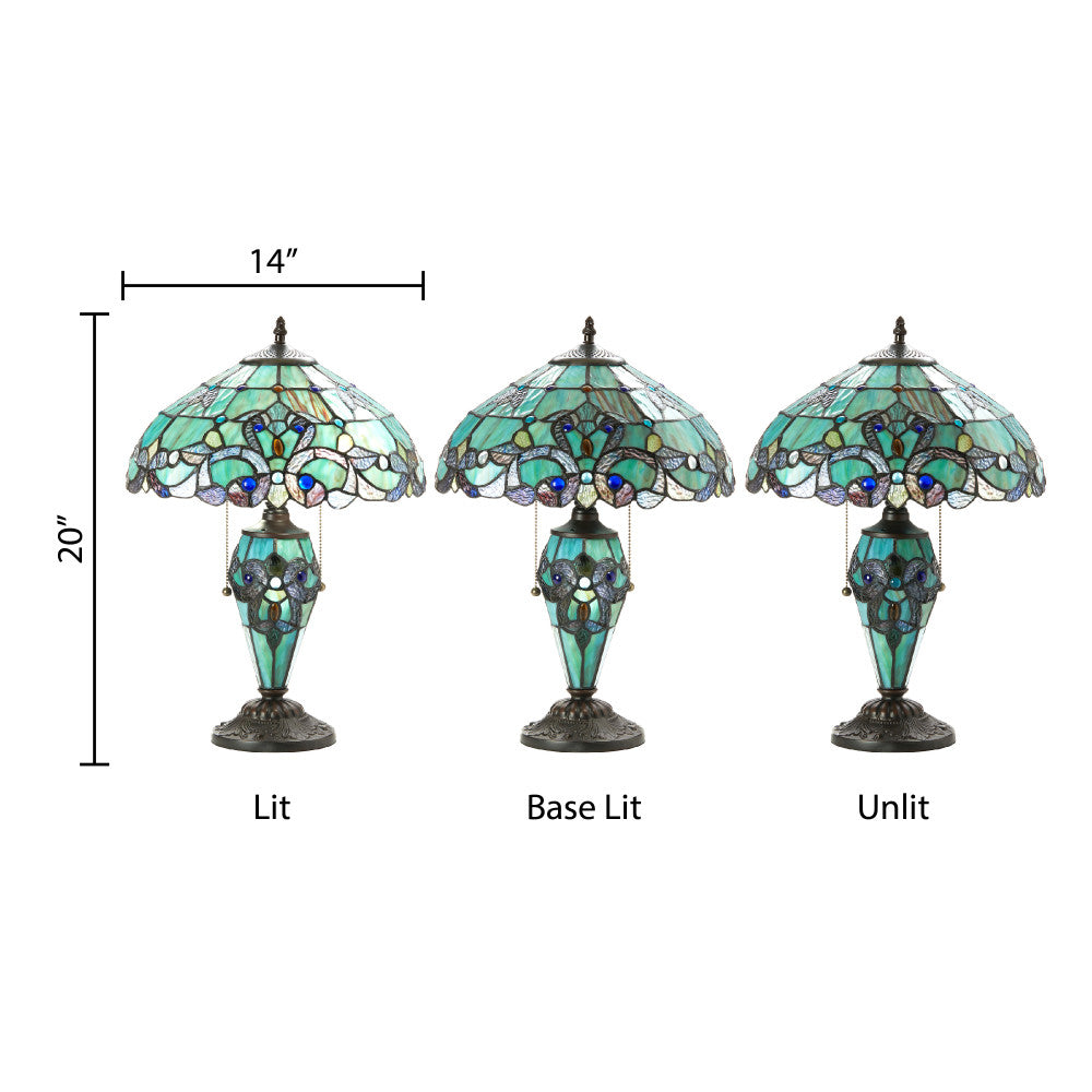 20"H Tiffany Style Magna Carta Stained Glass Double Lit Table Lamp