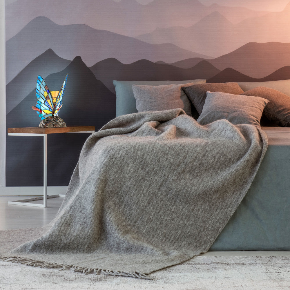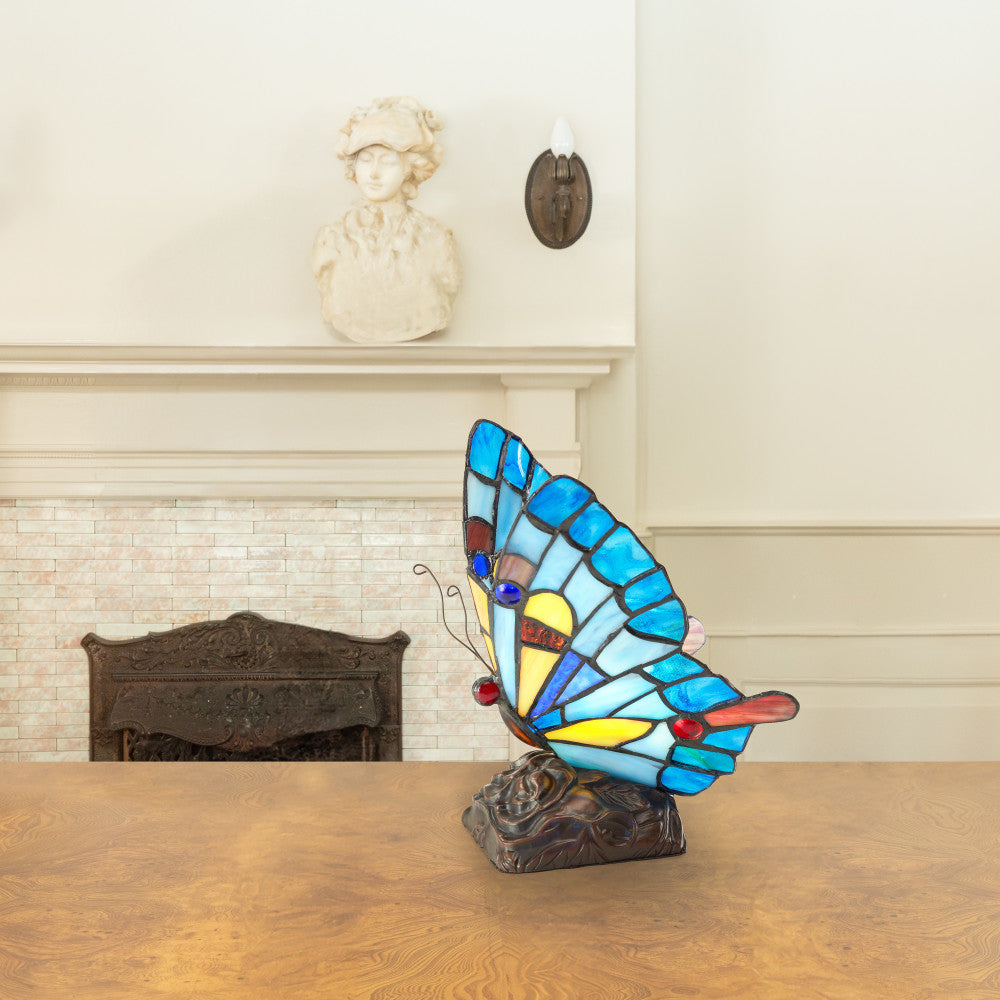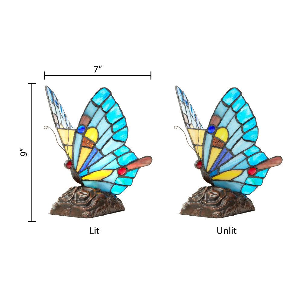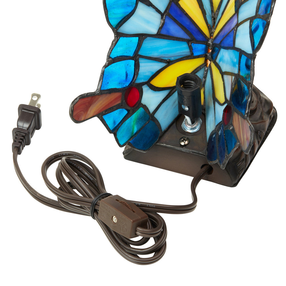 9"H Tiffany Stained Glass Flying Butterfly Accent Lamp