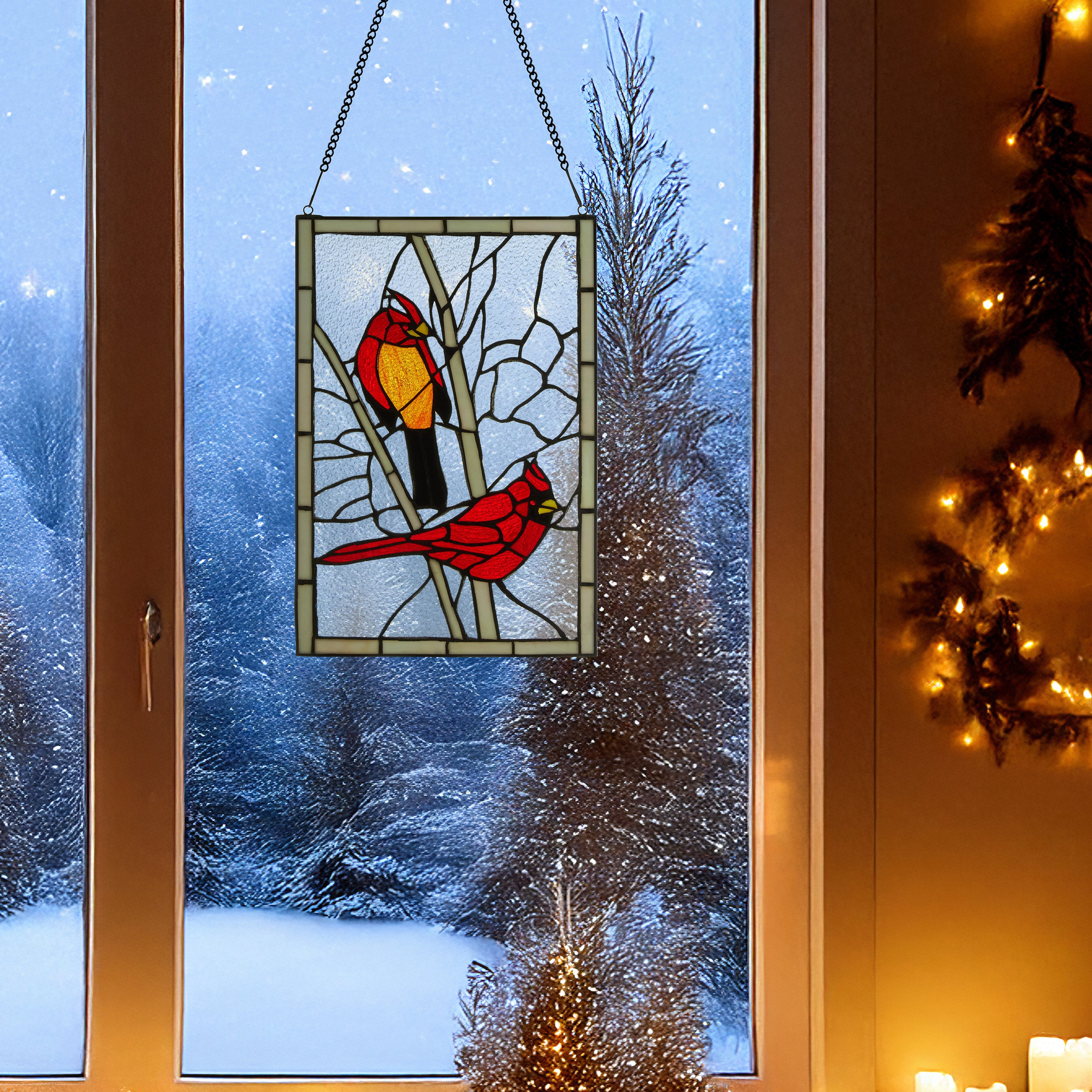 18.5"H Northern Cardinal Songbird Stained Glass Window Panel