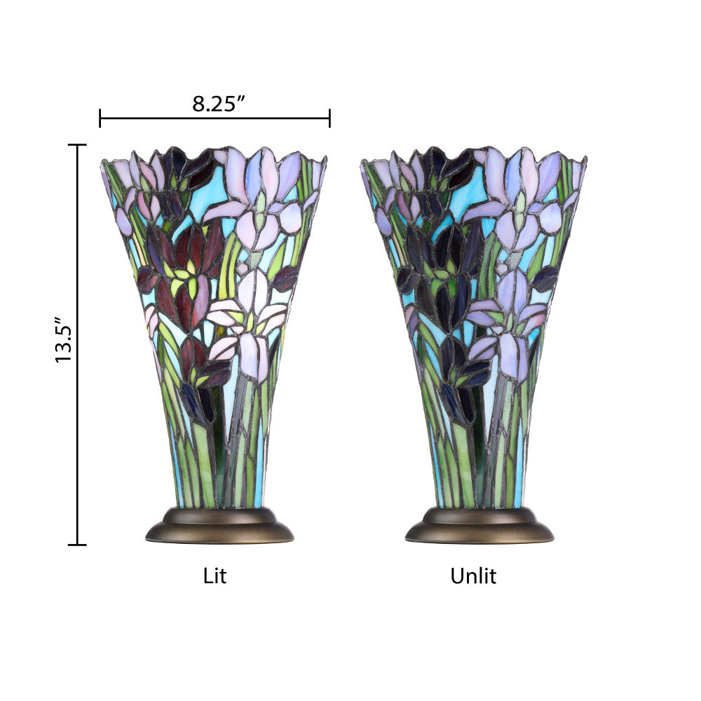 13.5" H Tiffany-Style Floral Vase Stained Glass Hurricane Table Lamp