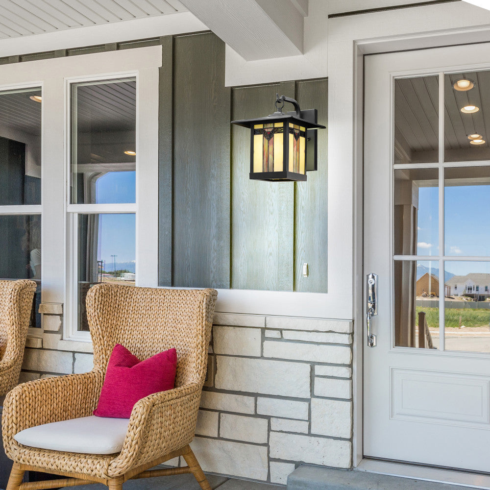 11.75"H Prairie 1-Light Stained Glass Black Outdoor Light Fixture