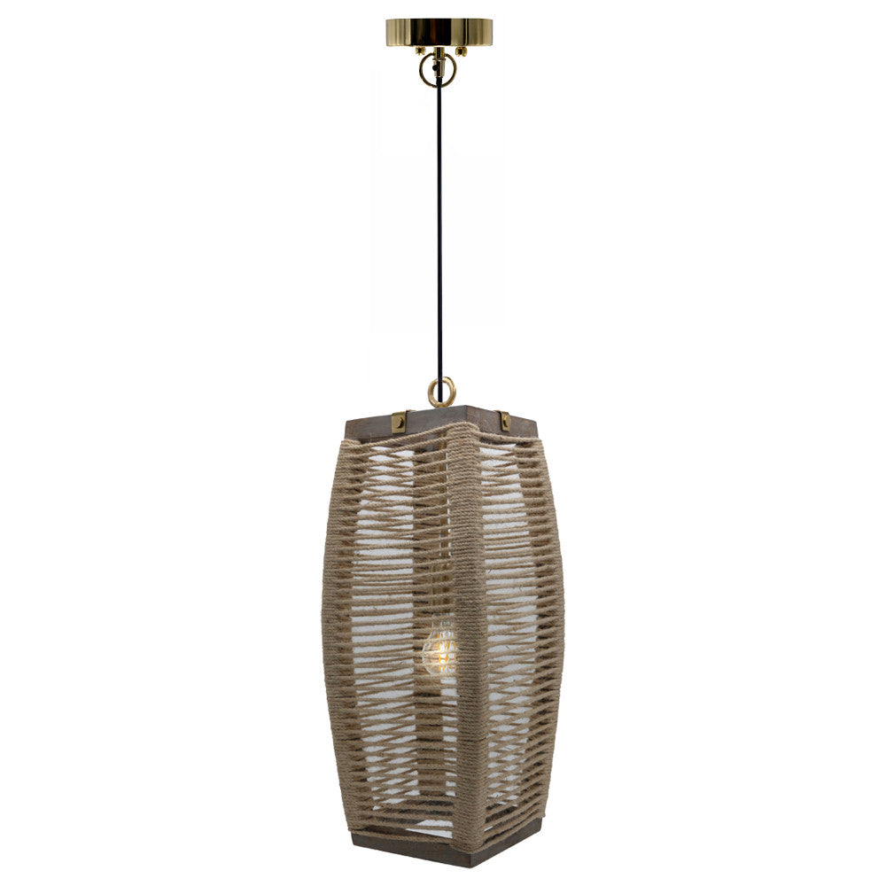 Add ambient lighting with this 1-light handwoven rope and wood pendant. The adjustable hanging cord allows for versatility to any space. The shade is designed with wrapped rope around and cylindrical center, which allows for light to illuminate through. Includes a circular metal canopy for hardwiring and requires one (1) 40W bulb (not included). This 20"H pendant is ideal for Scandinavian or coastal decor styles.