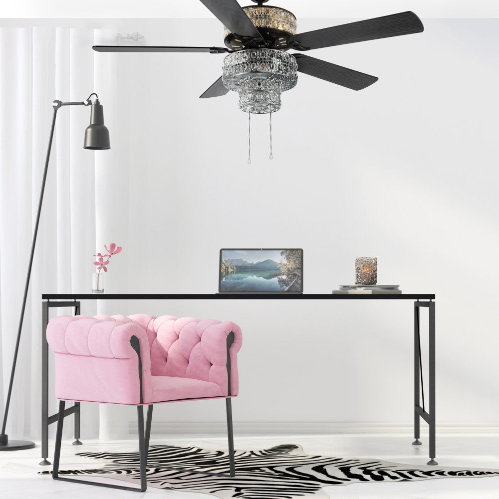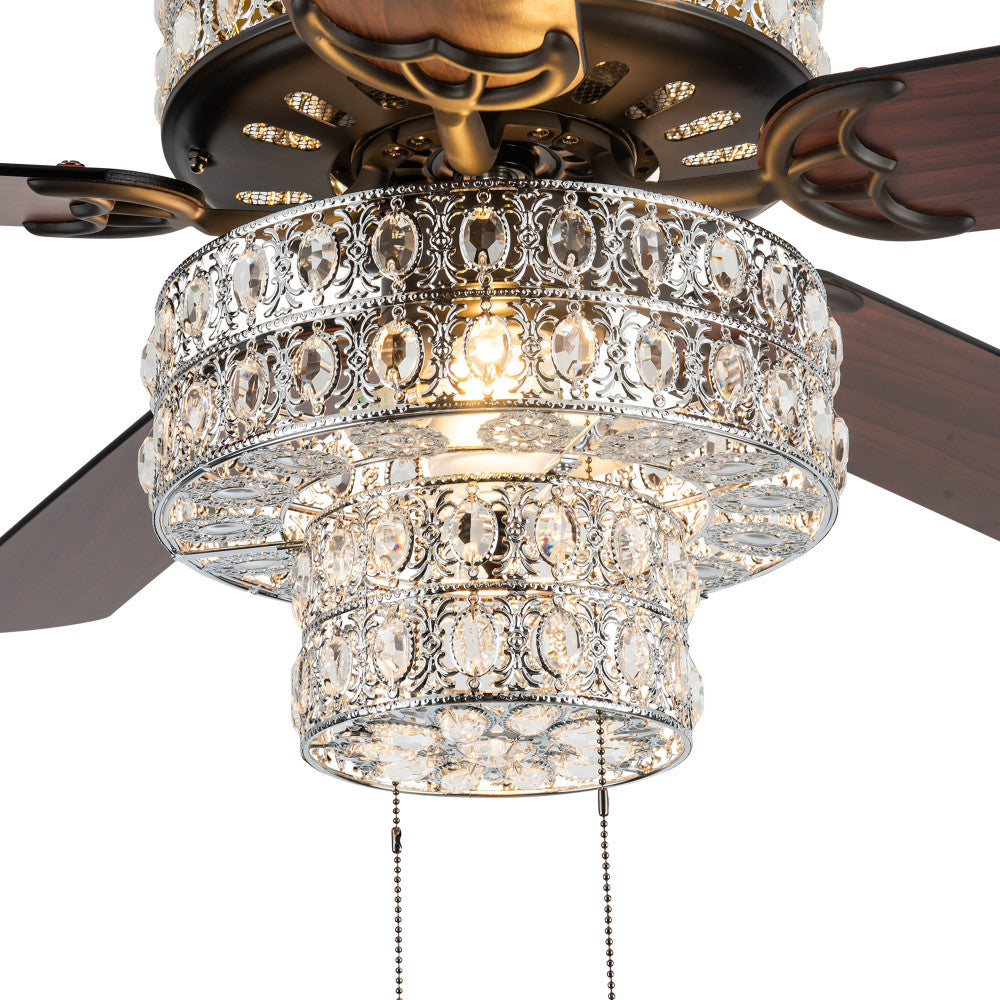 52"W LED Silver Punched Metal and Clear Crystal Ceiling Fan