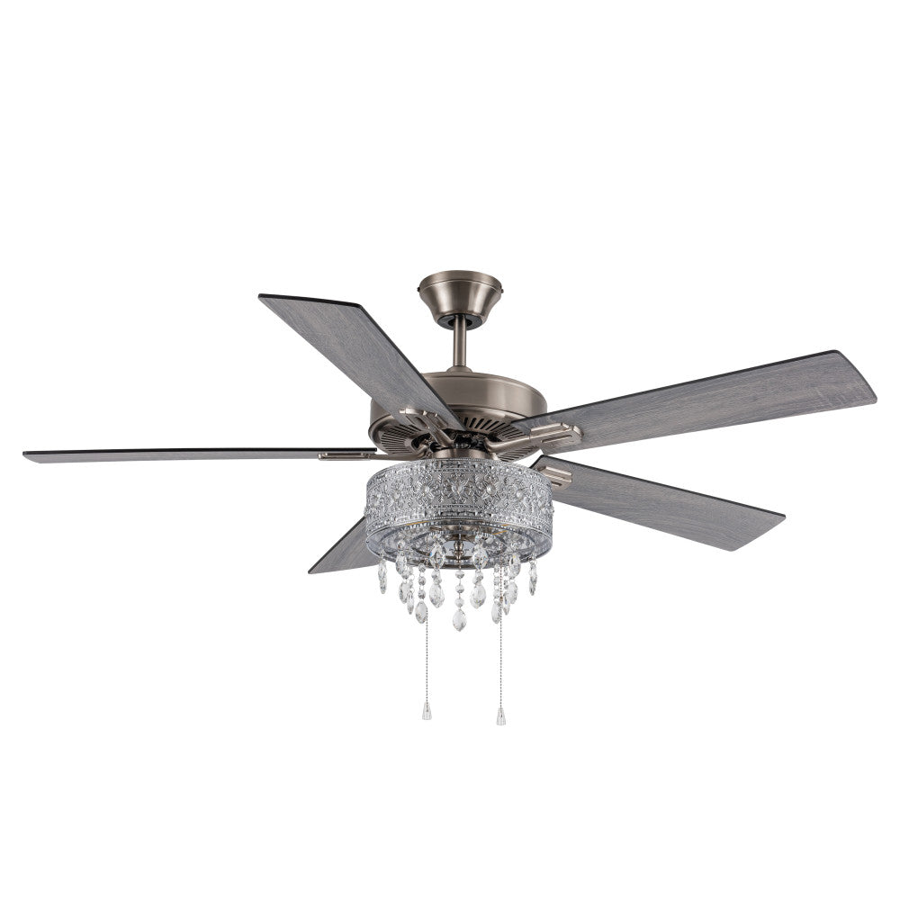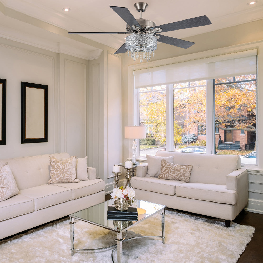 52"W LED Roxsie 5-Blade Crystal LED Chandelier Ceiling Fan