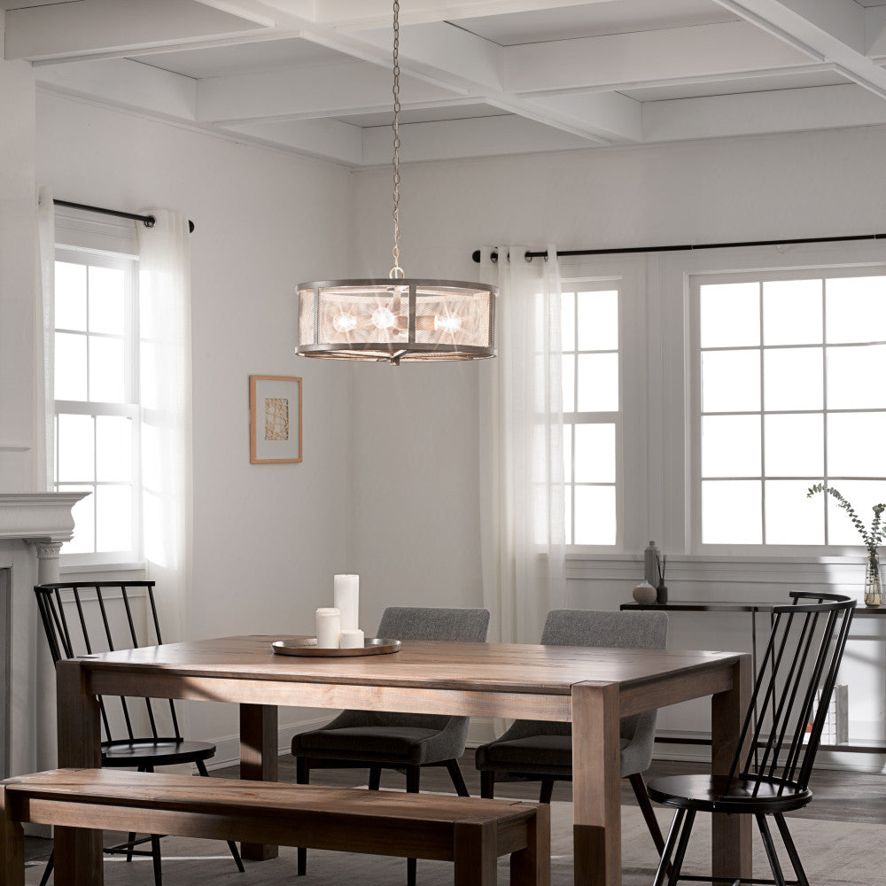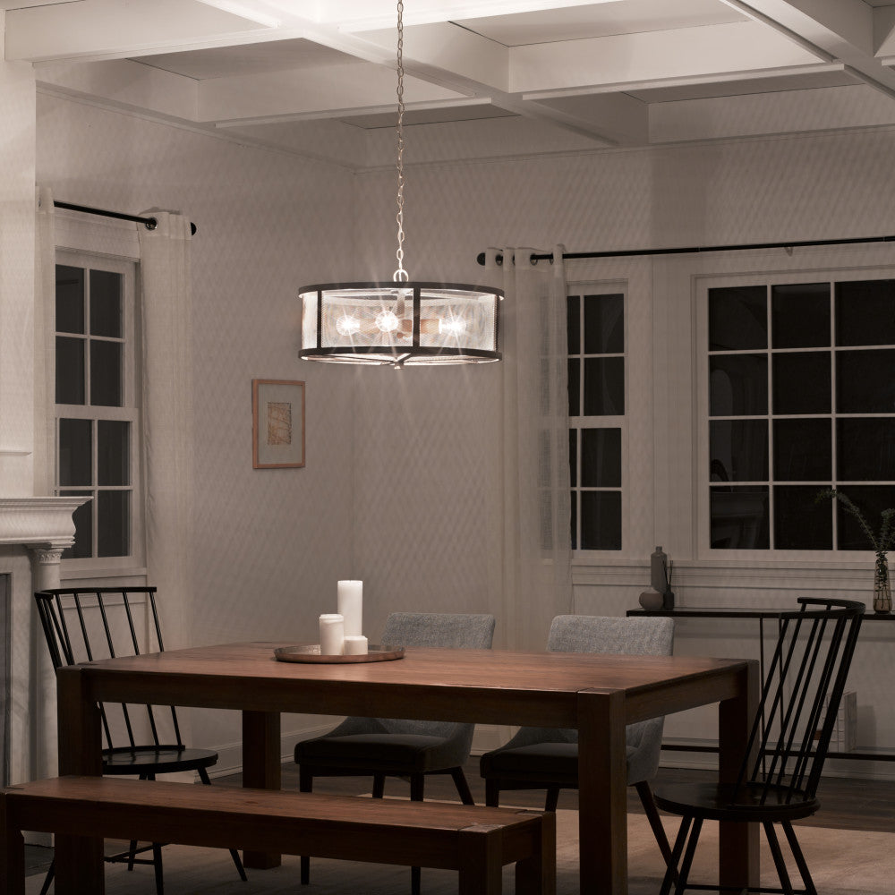 8"H Dixsie Woodgrain Finish Metal Caged Farmhouse 4-Light Chandelier