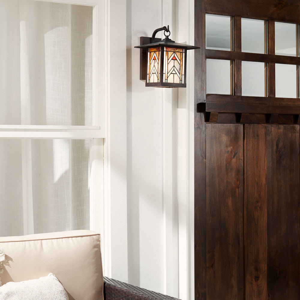 River of Goods Terracotta Stained Glass and Oil Rubbed Bronze 1-Light Outdoor Lantern Wall Sconce
