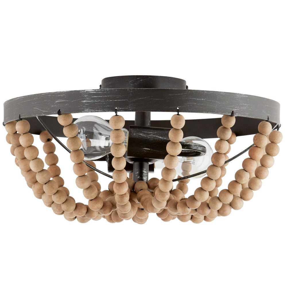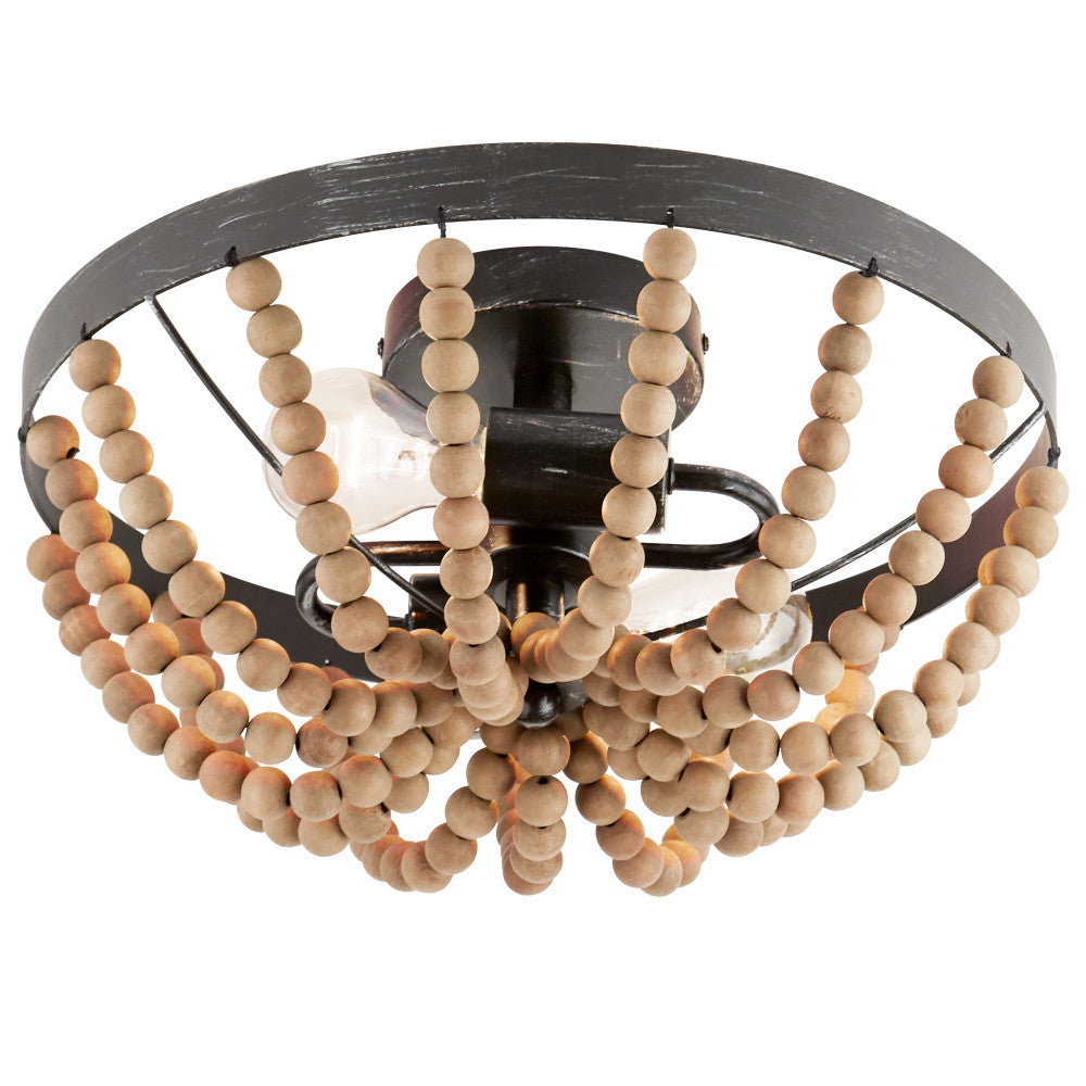 Bring chic bohemian beach vibes to your living room, dining room or hallway with the River of Goods Brown/Brown Metal and Wood 15-inch Ceiling Light. This semi-flush ceiling light features a brushed dark brown metal frame for a driftwood-like finish, and it's decorated with strings of brown wooden beads to add texture and movement that evokes calming coastal destinations.