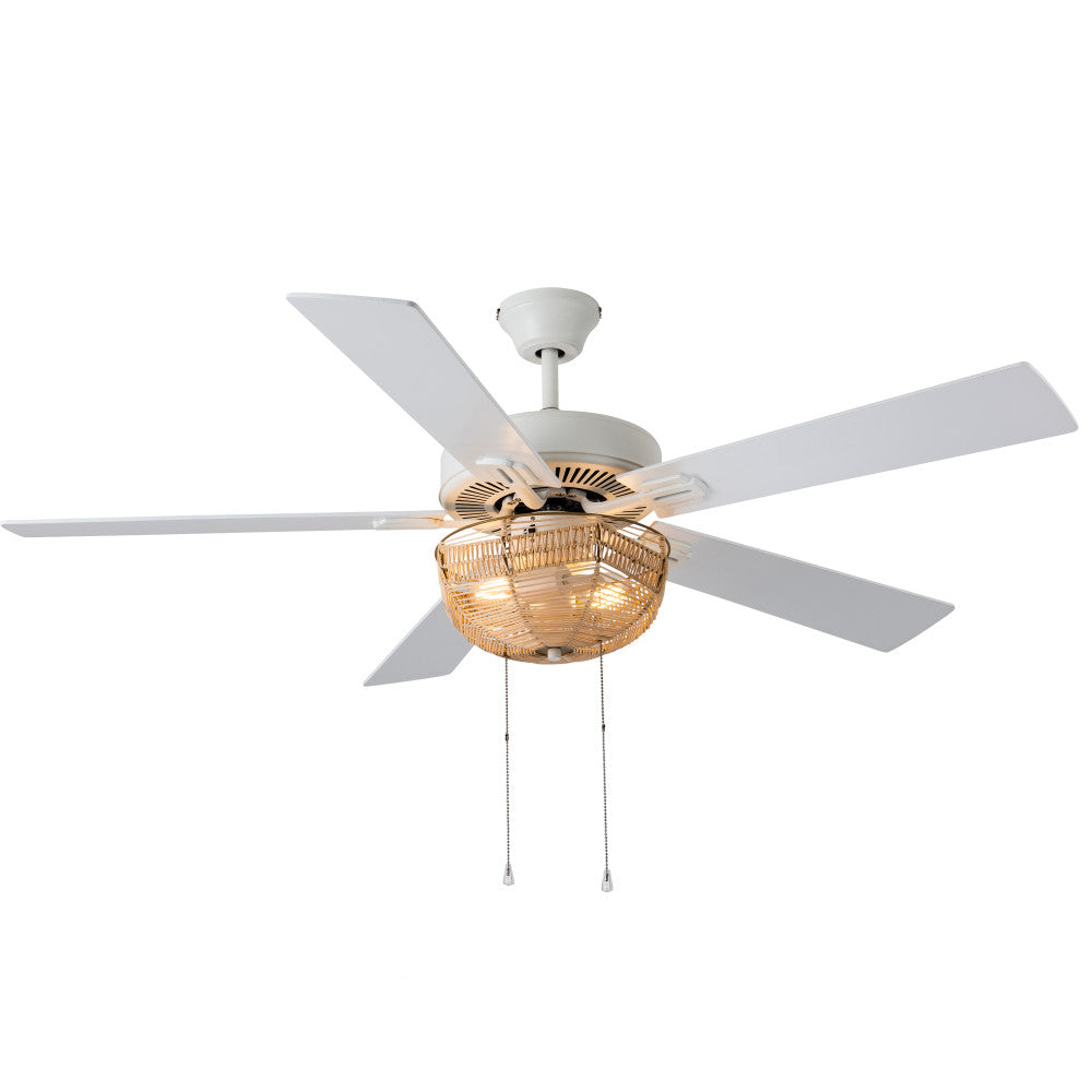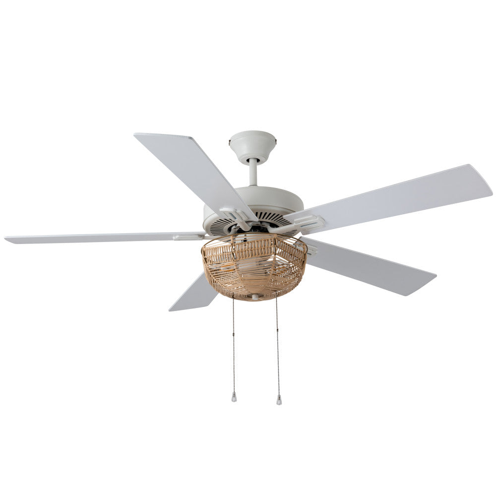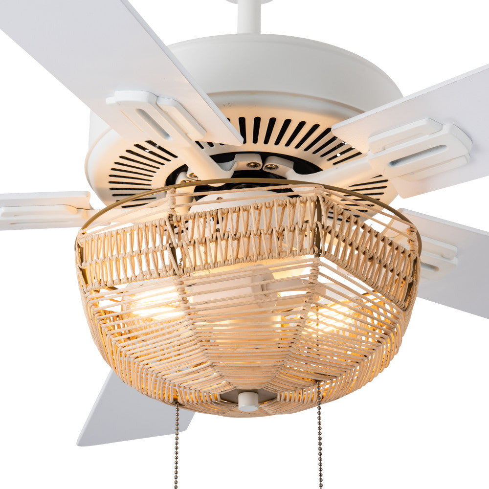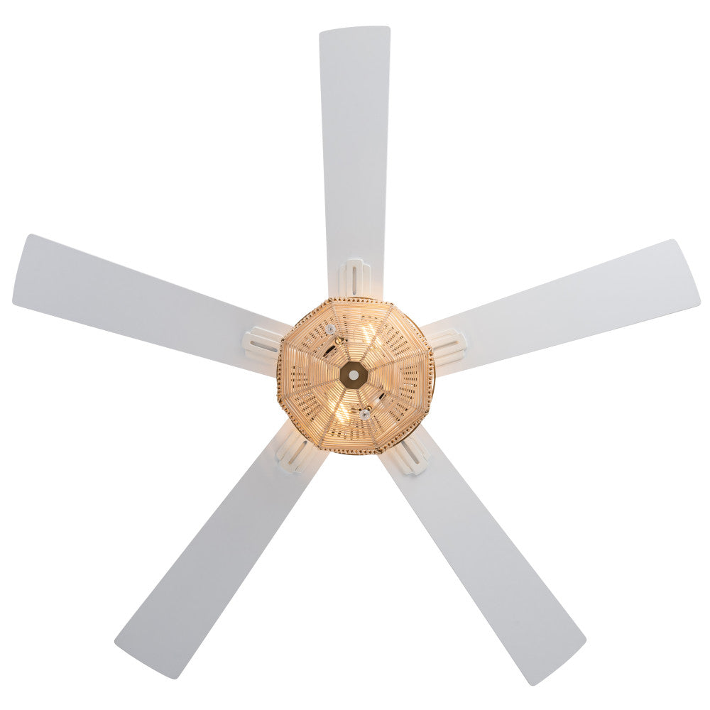 52" 5-Blade LED Tan Rattan Lighted Ceiling Fan