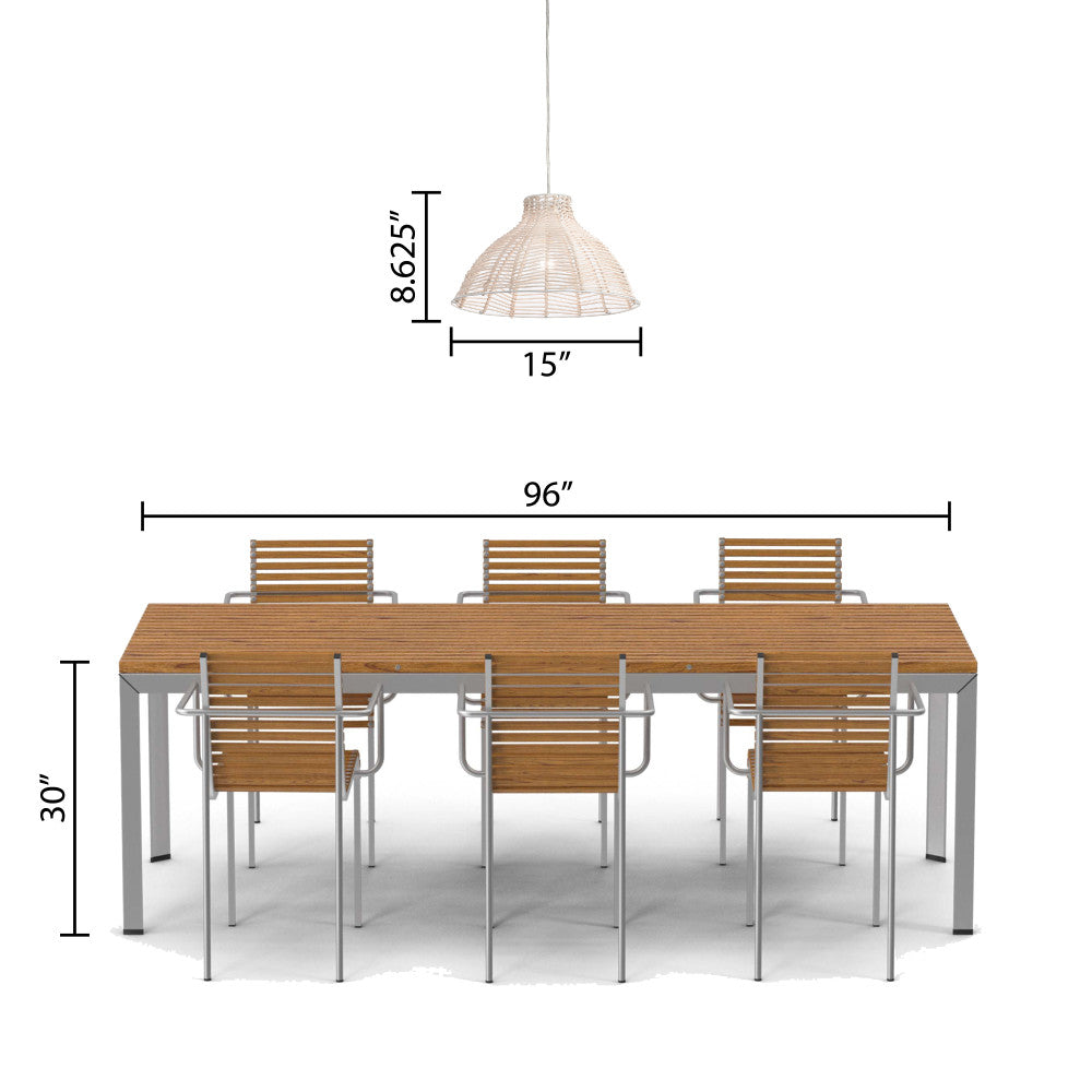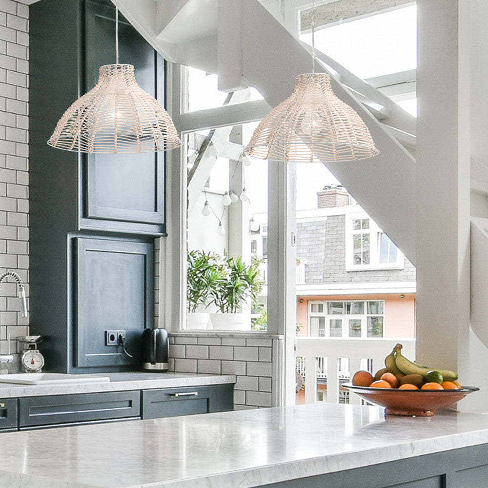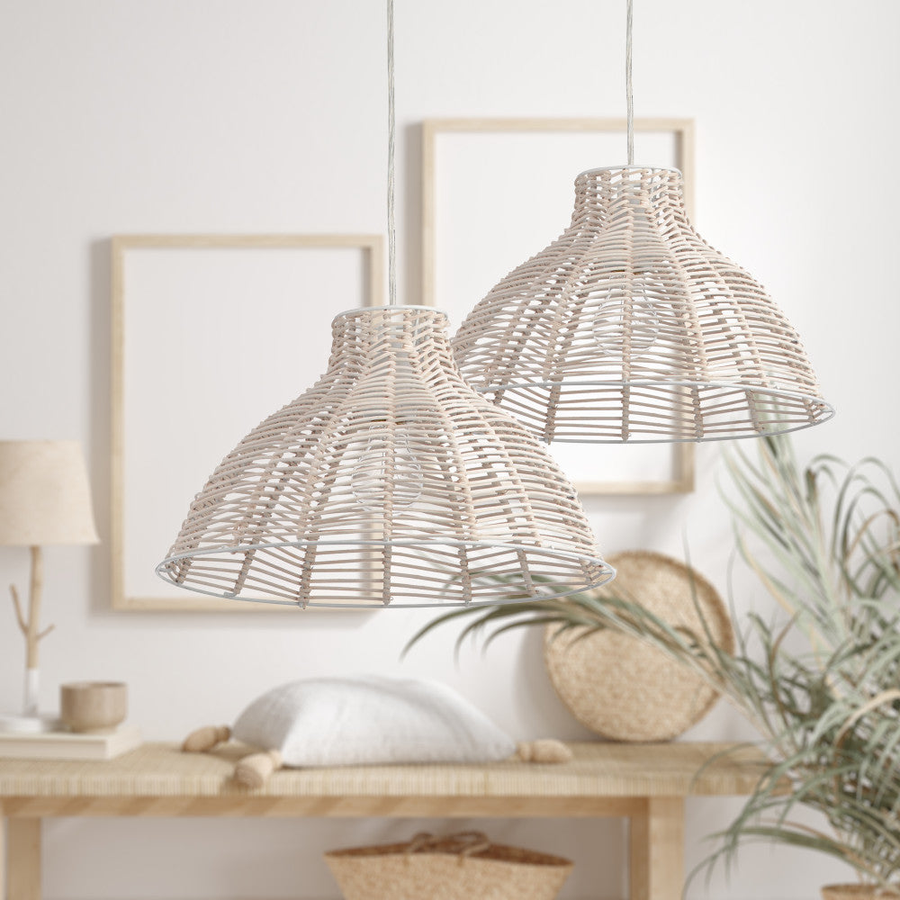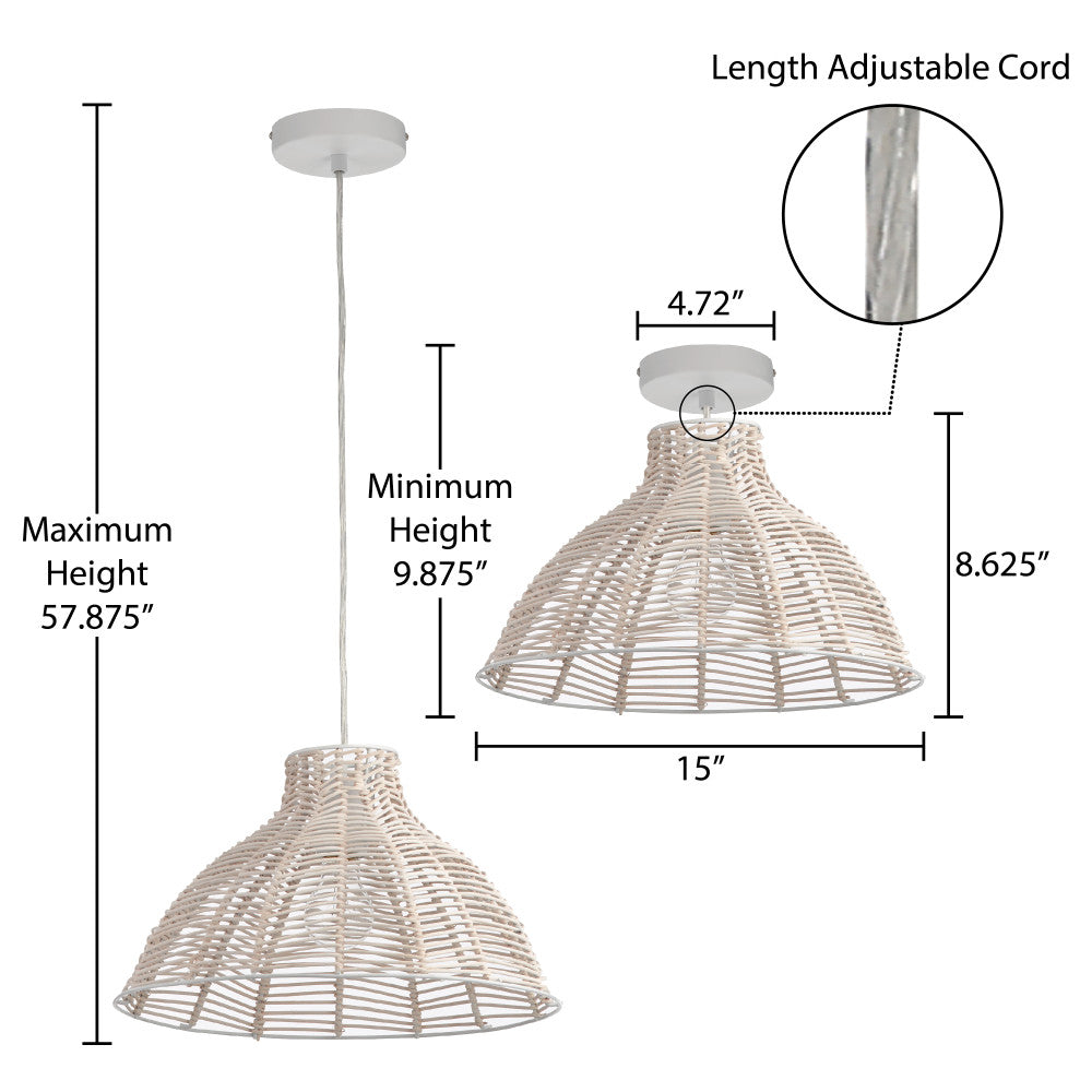 15" 1-Light Elodie Pendant Light Natural Rattan White