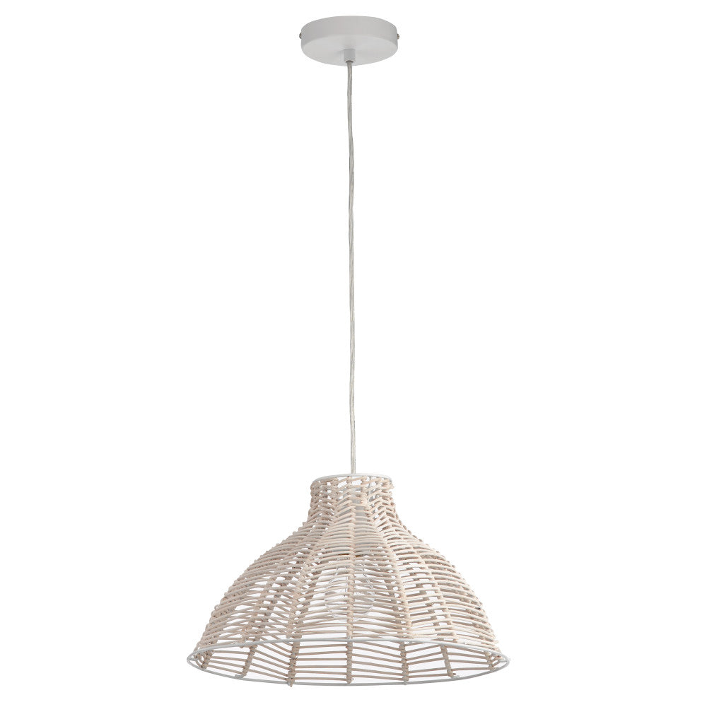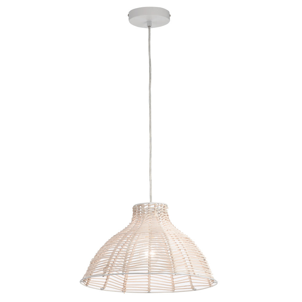 Bring overhead lighting and airy, coastal-inspired style to your living room, kitchen or dining room with this charming white woven rattan hanging pendant light. Designed with a white metal canopy and matching white woven rattan shade, this single-bulb pendant light adds lovely texture to your decor while adding functionality above a tabletop or other surface. Plus, the adjustable-height design can be installed to hang anywhere between 9.875 and 57.875 inches from your ceiling, so it's easy to find the perfect look for your space.