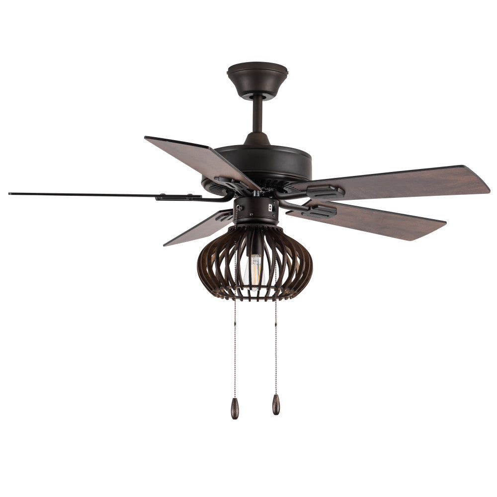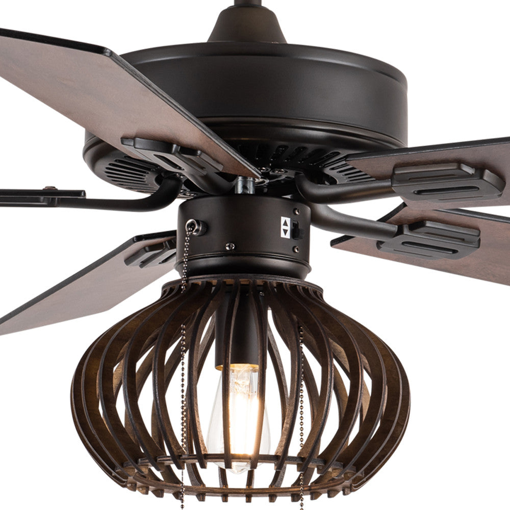 Leigh River of Goods Brown Oil-Rubbed Bronze and Wood Caged Ceiling Fan with Light