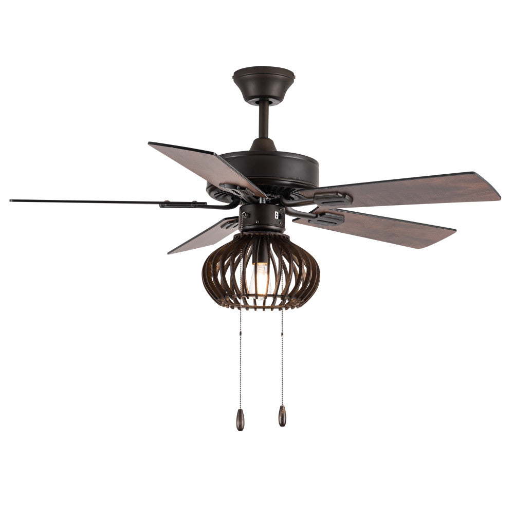 Add overhead light and charming mid-century modern style to your home with this attractive 5-blade ceiling fan. Designed with a caged shade that holds a single 8-watt light bulb to cast light down onto your interiors, this small ceiling fan works even in small rooms thanks to a compact 42-inch width. The reversible blades can be installed so either a rich barnwood or light driftwood finish is visible, making the look easy to coordinate with your furnishings and home decor.