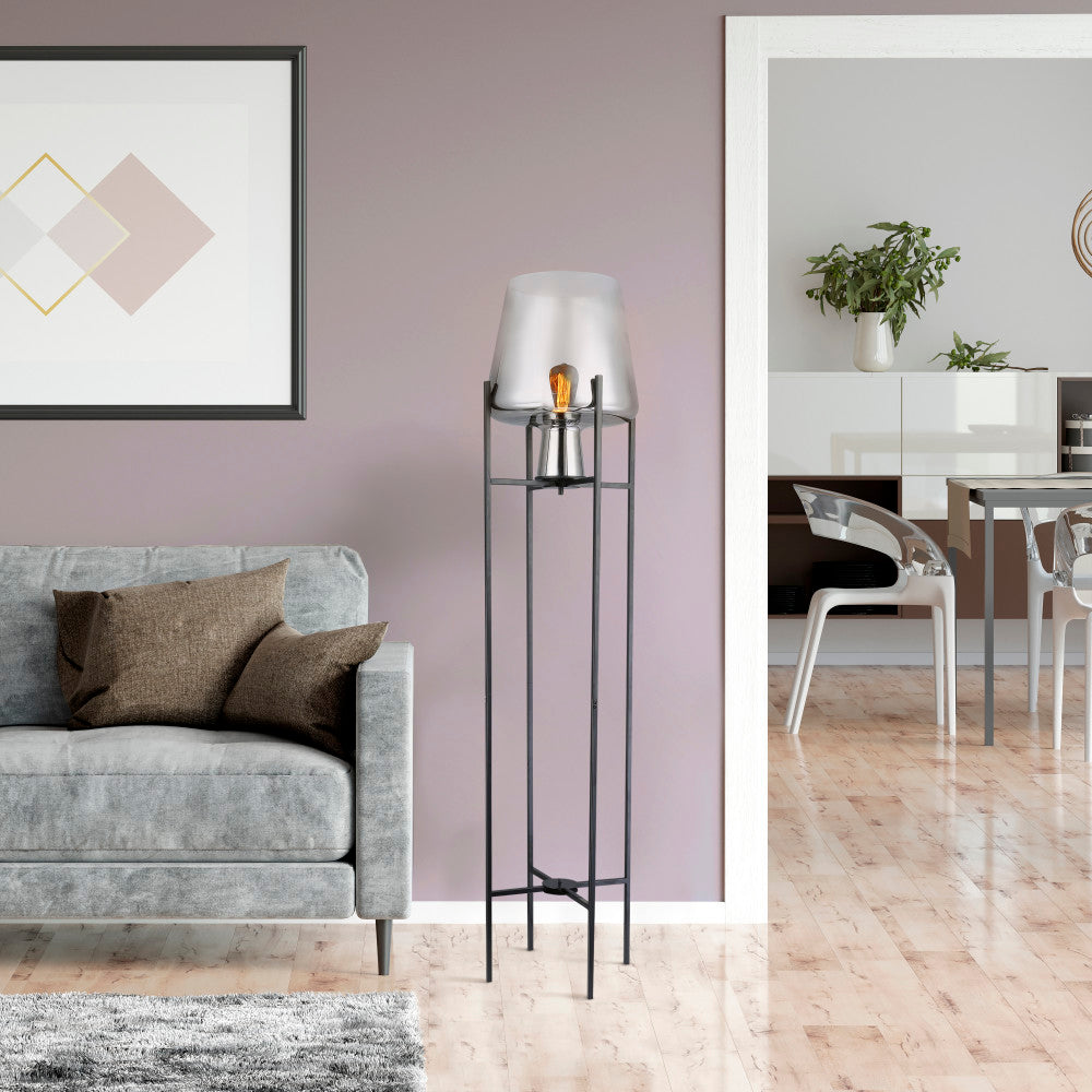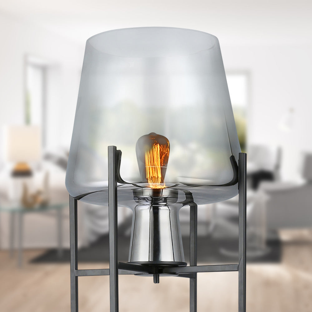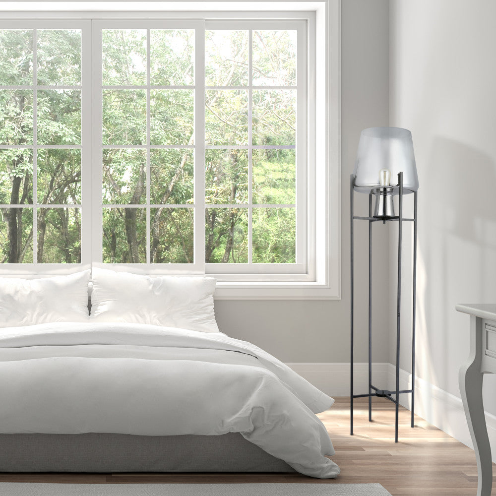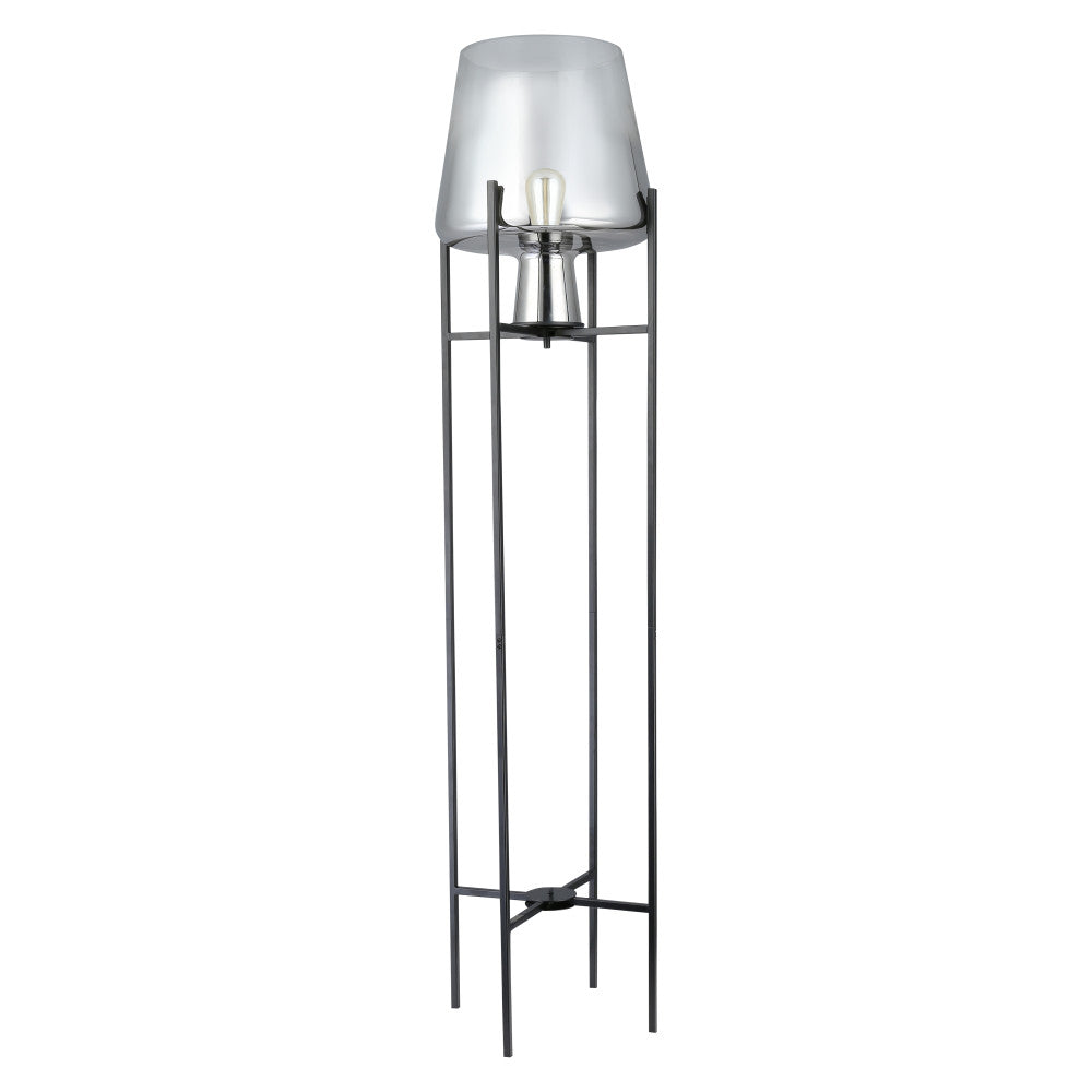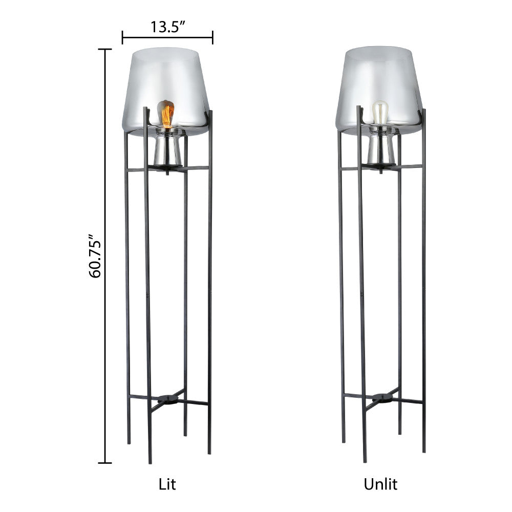 Spruce up your reading chair setup or add a little extra light to your entryway with this lovely metal and glass bowl floor lamp. Featuring a sleek four-legged black metal frame topped with a stunning smoky silver glass bowl shade, this decorative floor lamp combines contemporary style and convenience to bathe your living space in warm, welcoming light. The glass bowl shade lets one 60-watt max. light bulb (not included) easily shine through, and a 60-inch power cord provides ample reach to a wall outlet.
