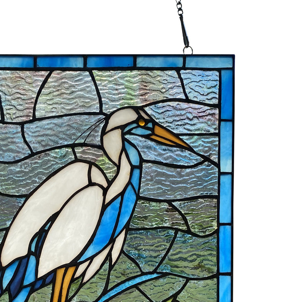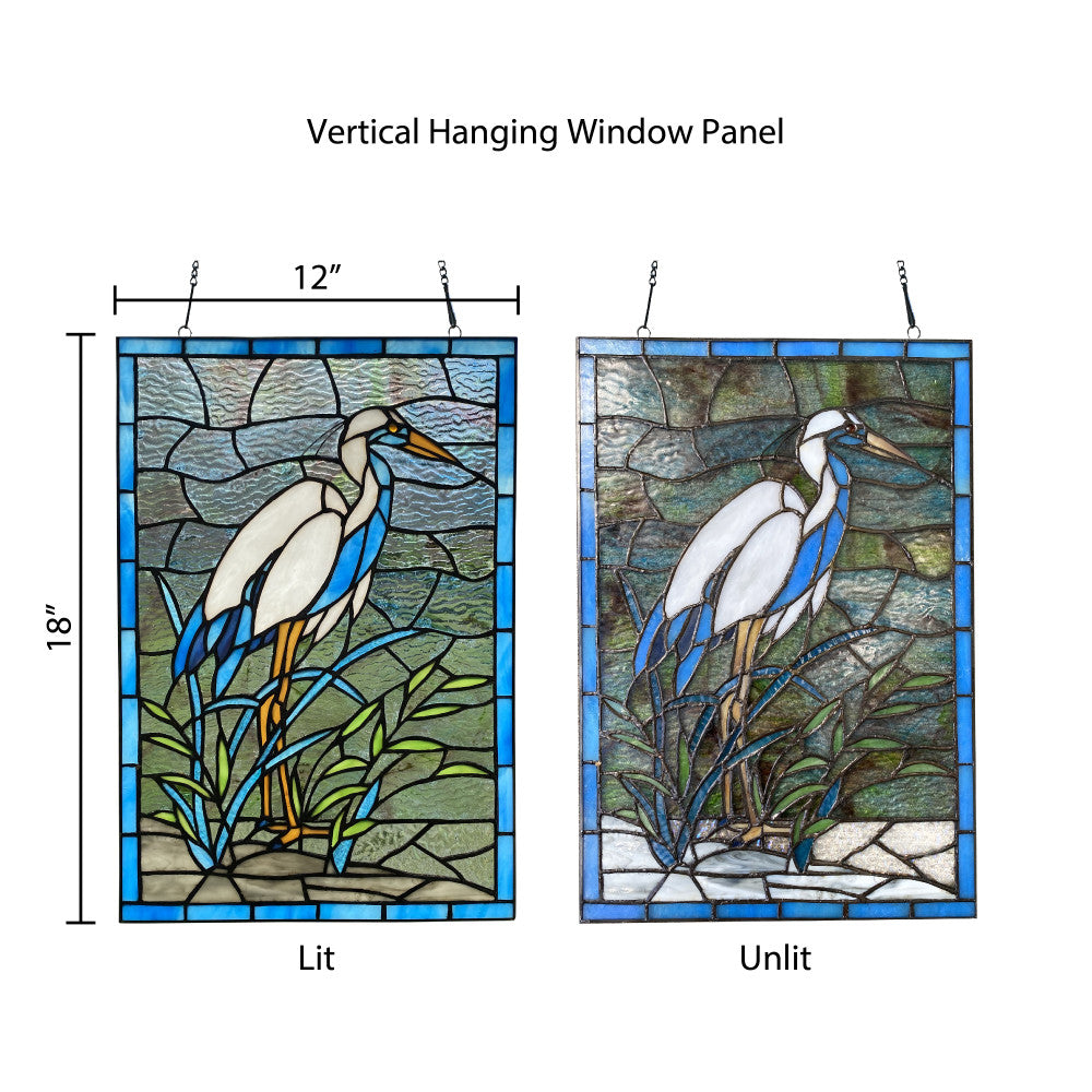 River of Goods 18-Inch Majestic Crane Stained Glass Window Panel