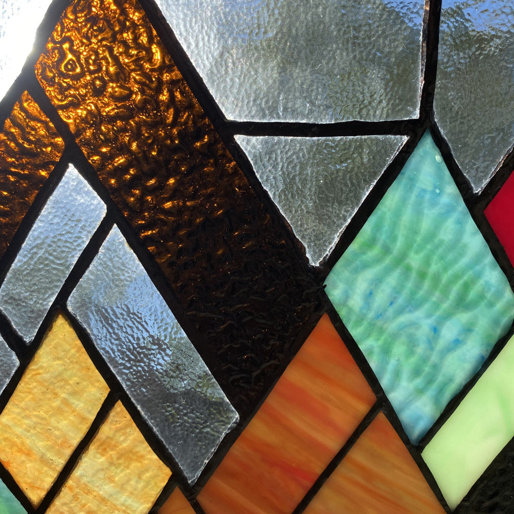 10-inch square stained glass panel created using artisanal iron soldering methods