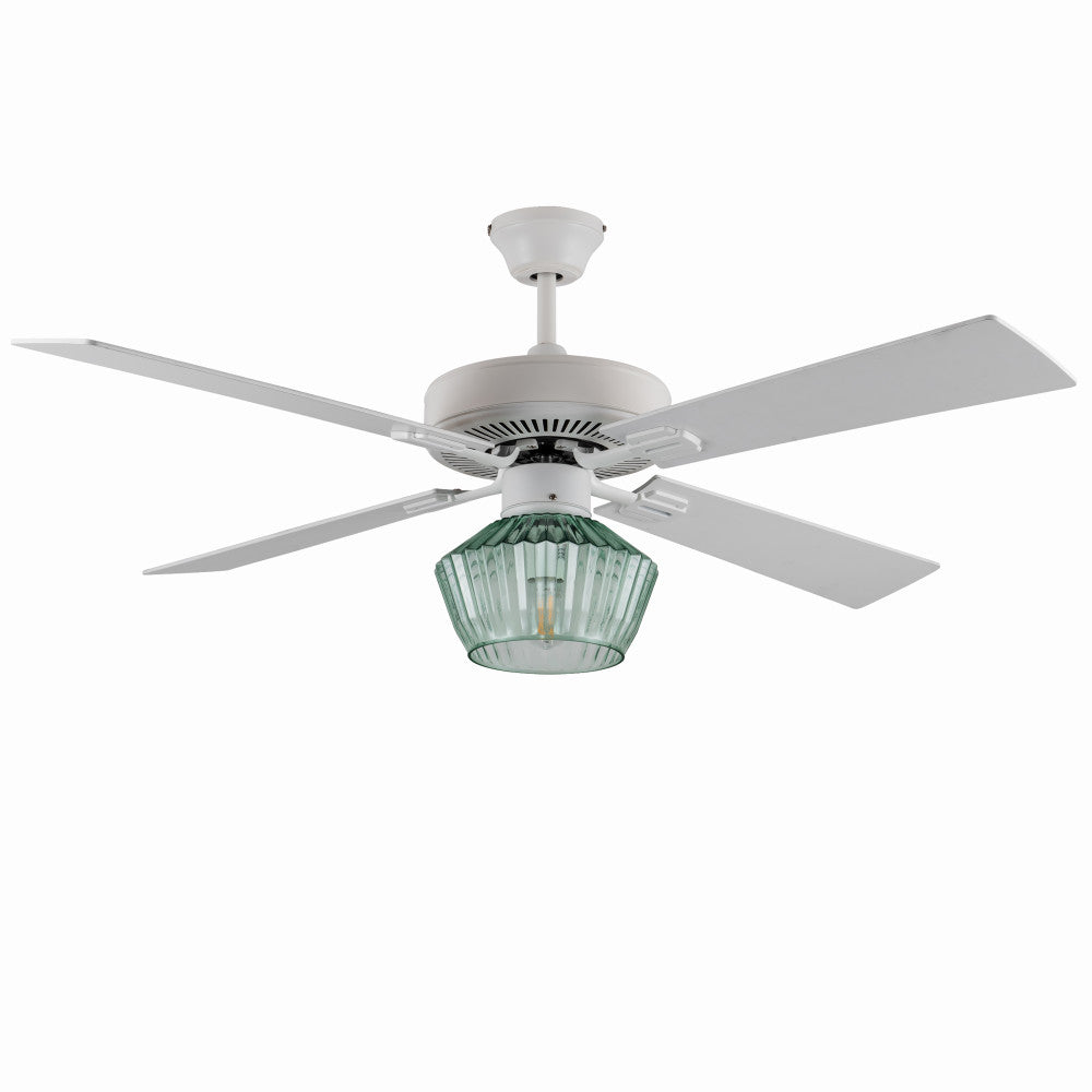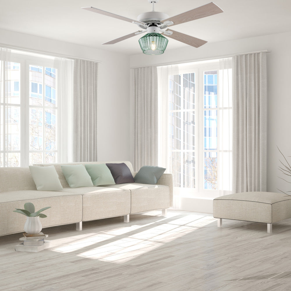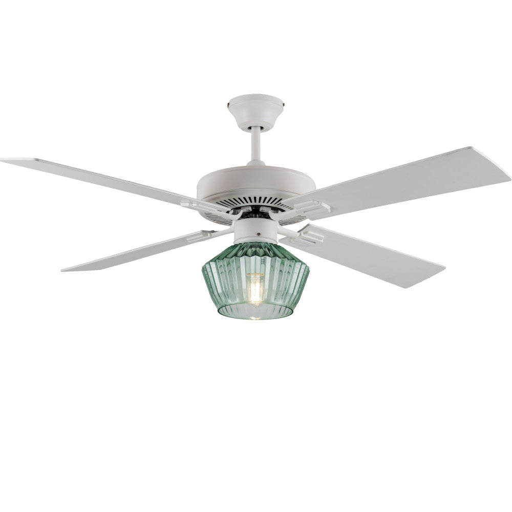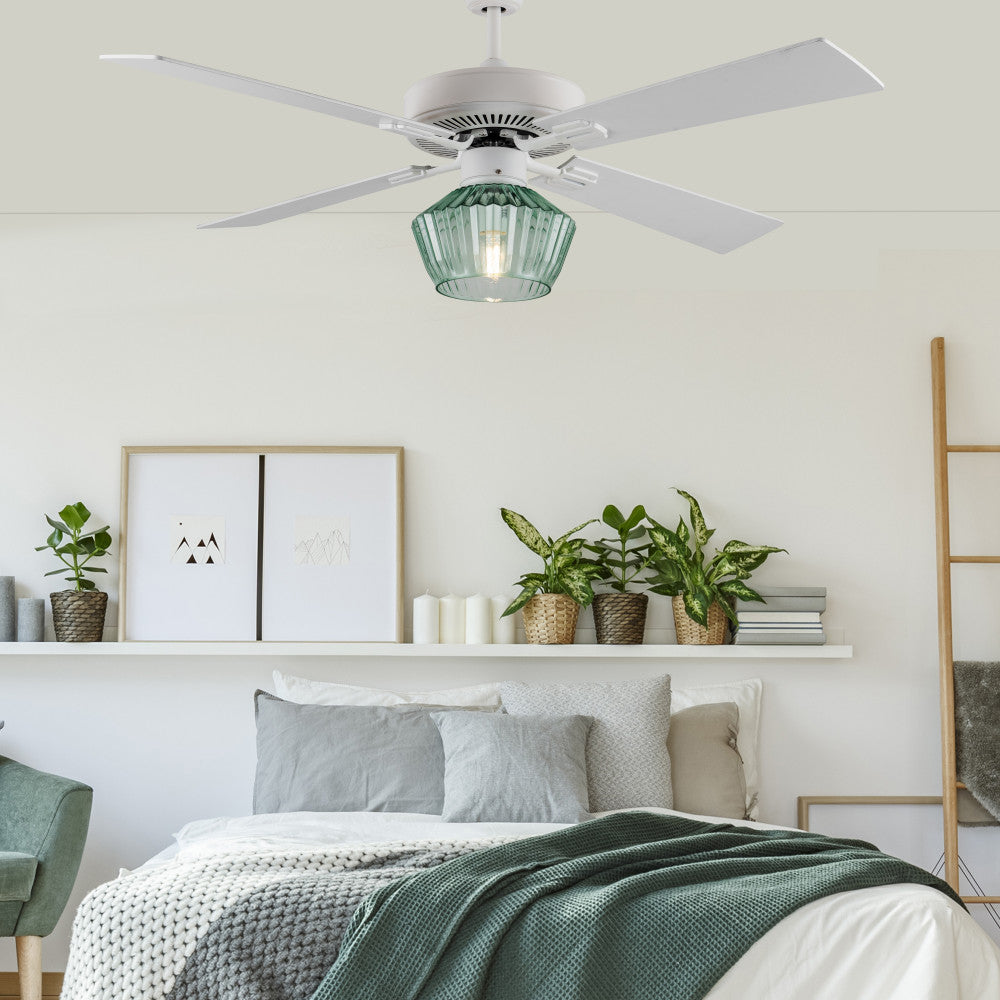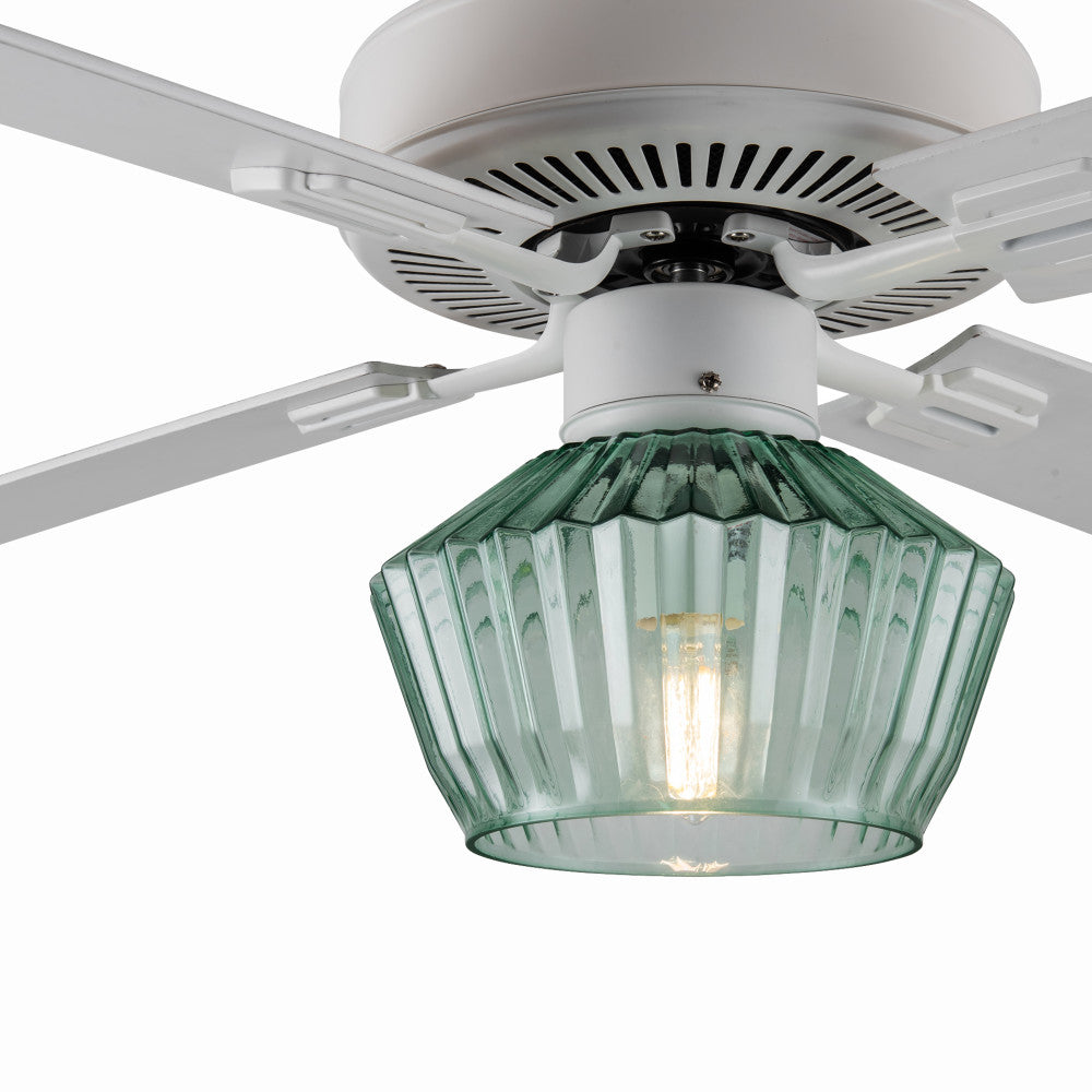 Eva River of Goods Remote Controlled Ribbed Green Sea Glass Shaded 1-Light 52-Inch Ceiling Fan