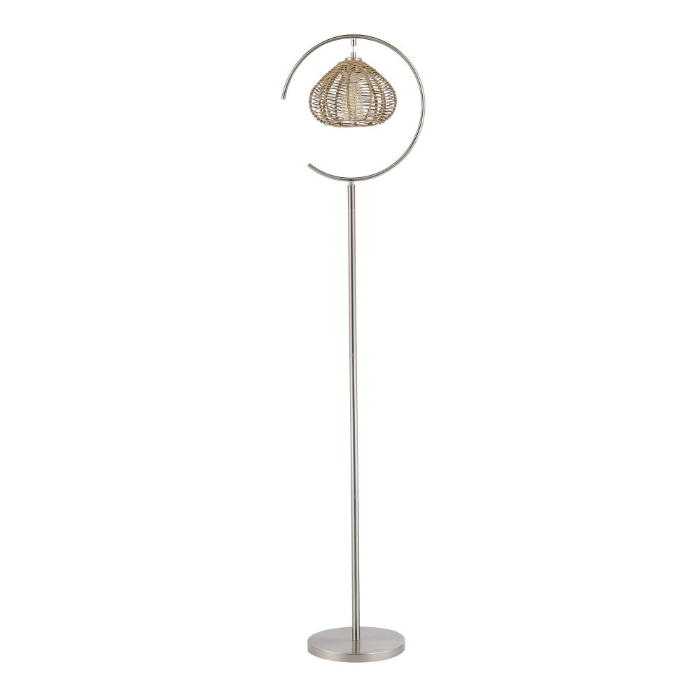 63.75"H Brushed Nickel Iron Floor Lamp & Tan Rattan Shade