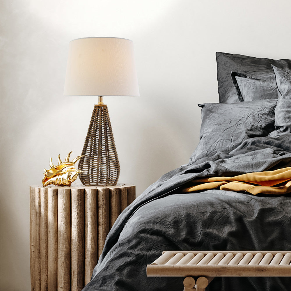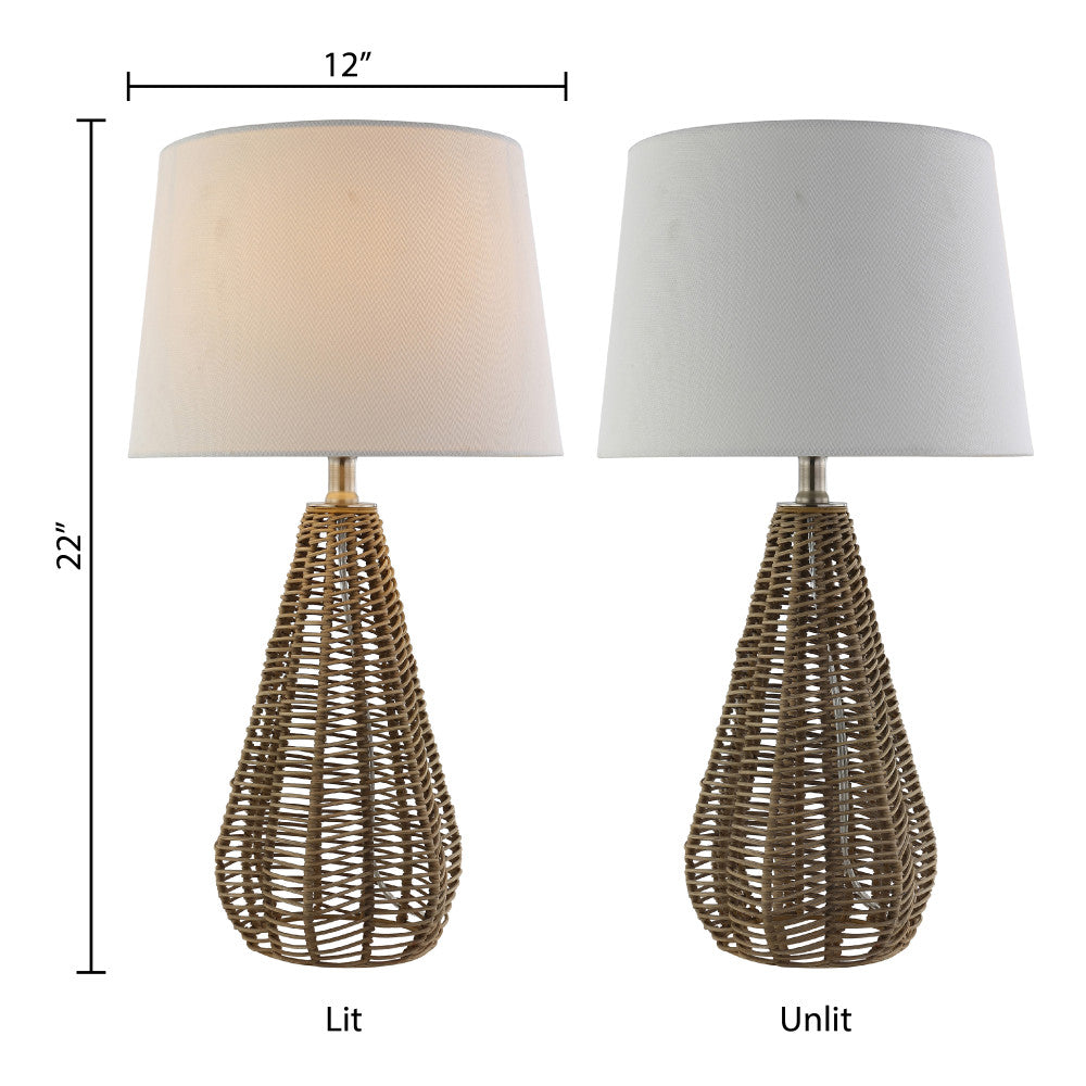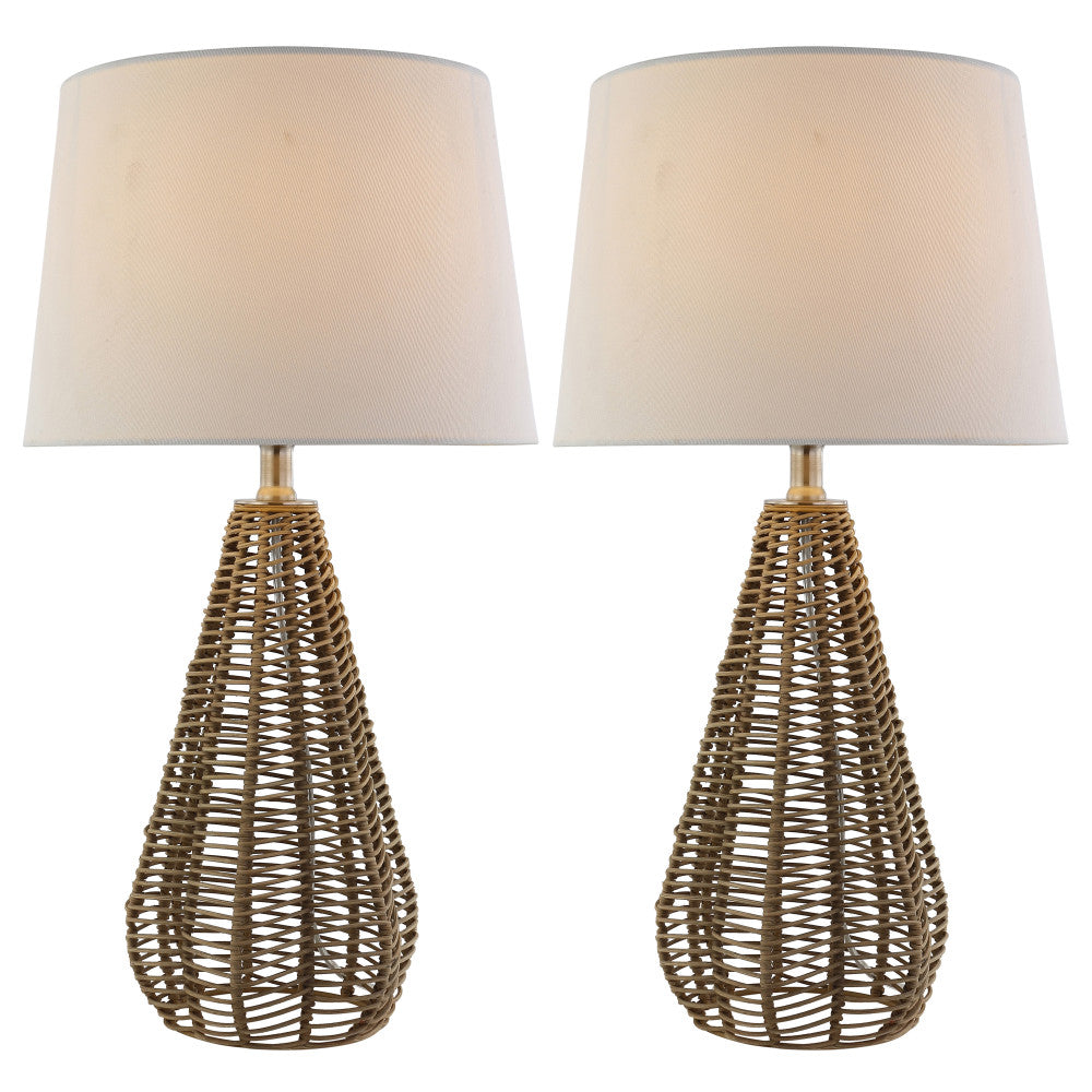 This set of two elegant table lamps gives you the option of displaying them together or separately to spruce up your space. The lamps feature metal frames supporting tan woven rattan urn bases and white fabric drum shades, and each requires one 60-watt Type A bulb (not included). An ideal fit with modern or bohemian decor schemes, they're easy to display nearly anywhere in your home thanks to 60-inch power cords with in-line switches.