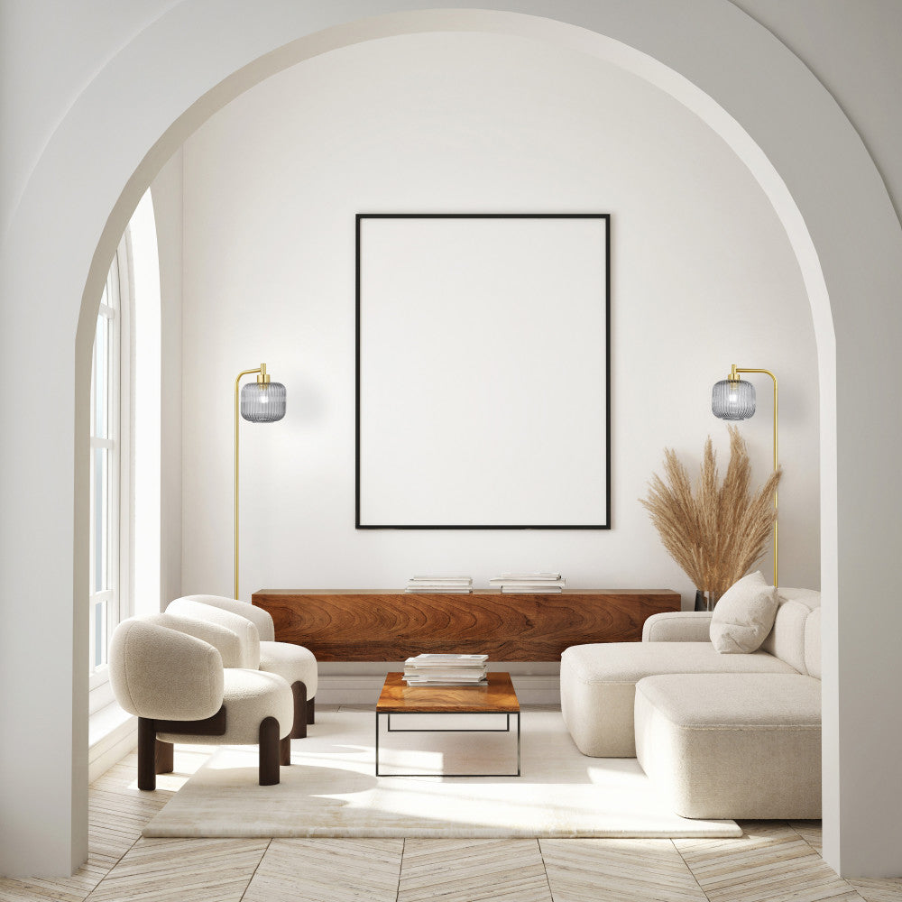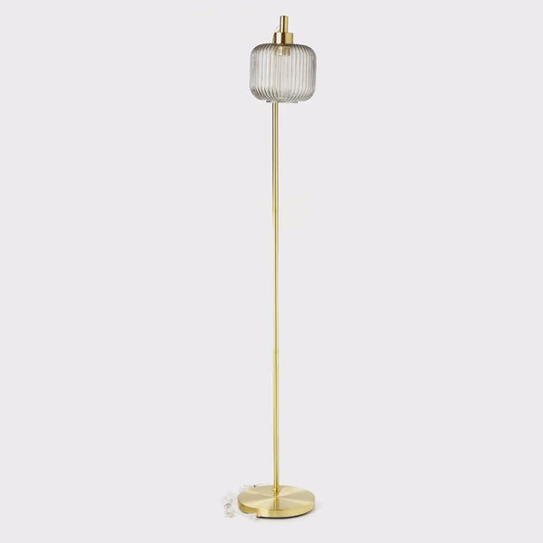 If you love retro-style decor, this stylish floor lamp is the piece you need for your living room, bedroom or entryway. The lamp features a brushed gold-finish metal candlestick base and a globe shade made from smoke-colored glass for lovely contrast. It casts a soft, warm glow with one 40-watt E26 bulb (not included) and thanks to the 90-inch power cord with a foot switch, it offers easy, stress-free placement in any space.