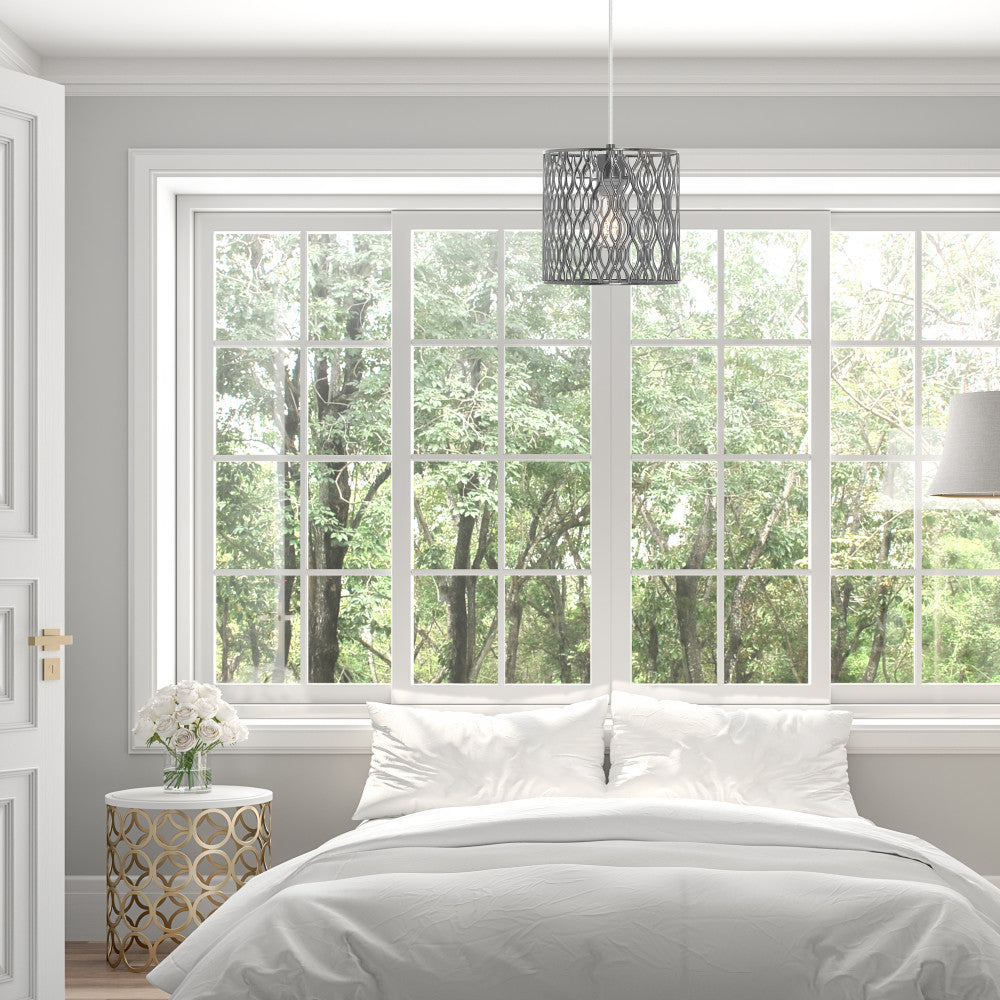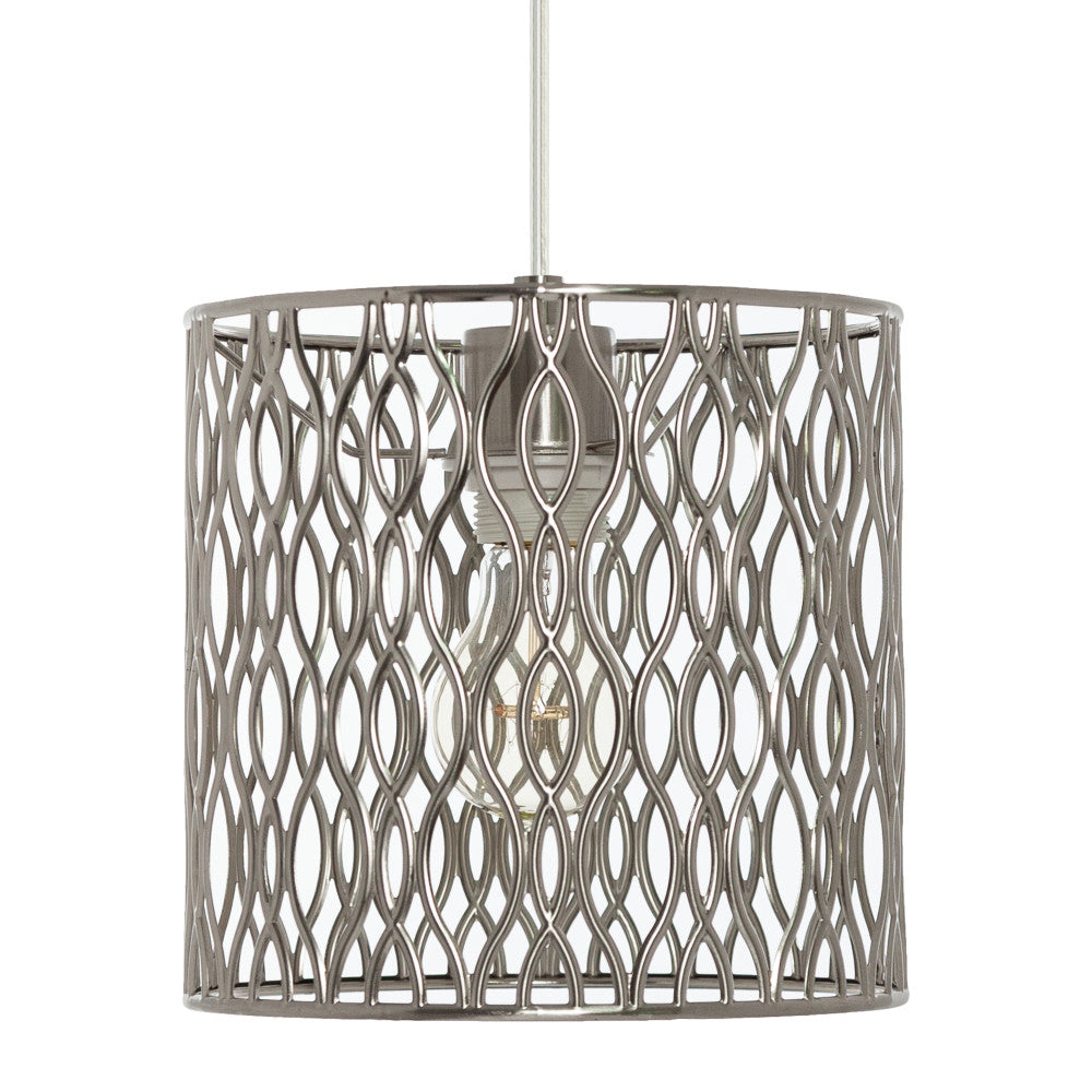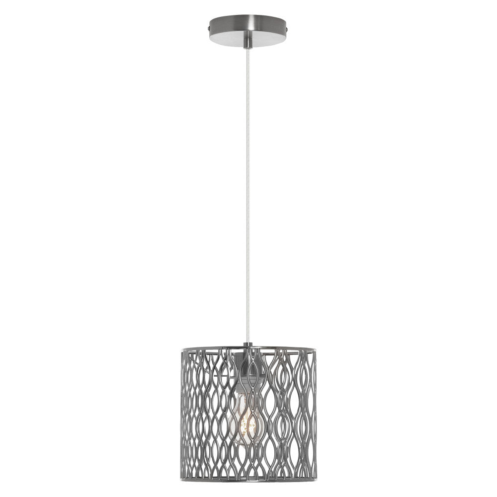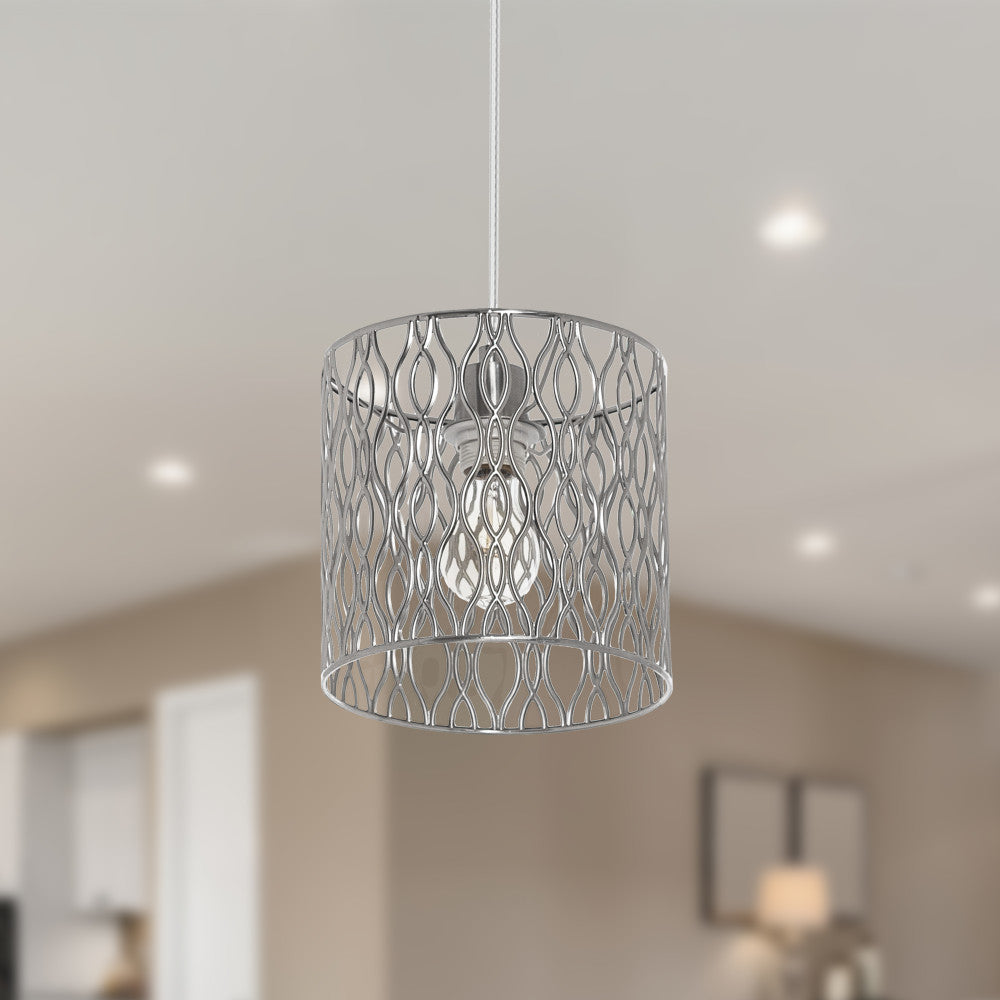 Add form and function to your home lighting with this stunning adjustable metal pendant light. Featuring an all-over silver finish and a punched-out drum shade, this hanging light hardwires into your ceiling and can be adjusted for a slight drop or a dramatic one depending on your needs. The sleek, modern look and Art Deco-inspired metal pattern are sure to make a stylish addition to your kitchen, dining room or entryway.