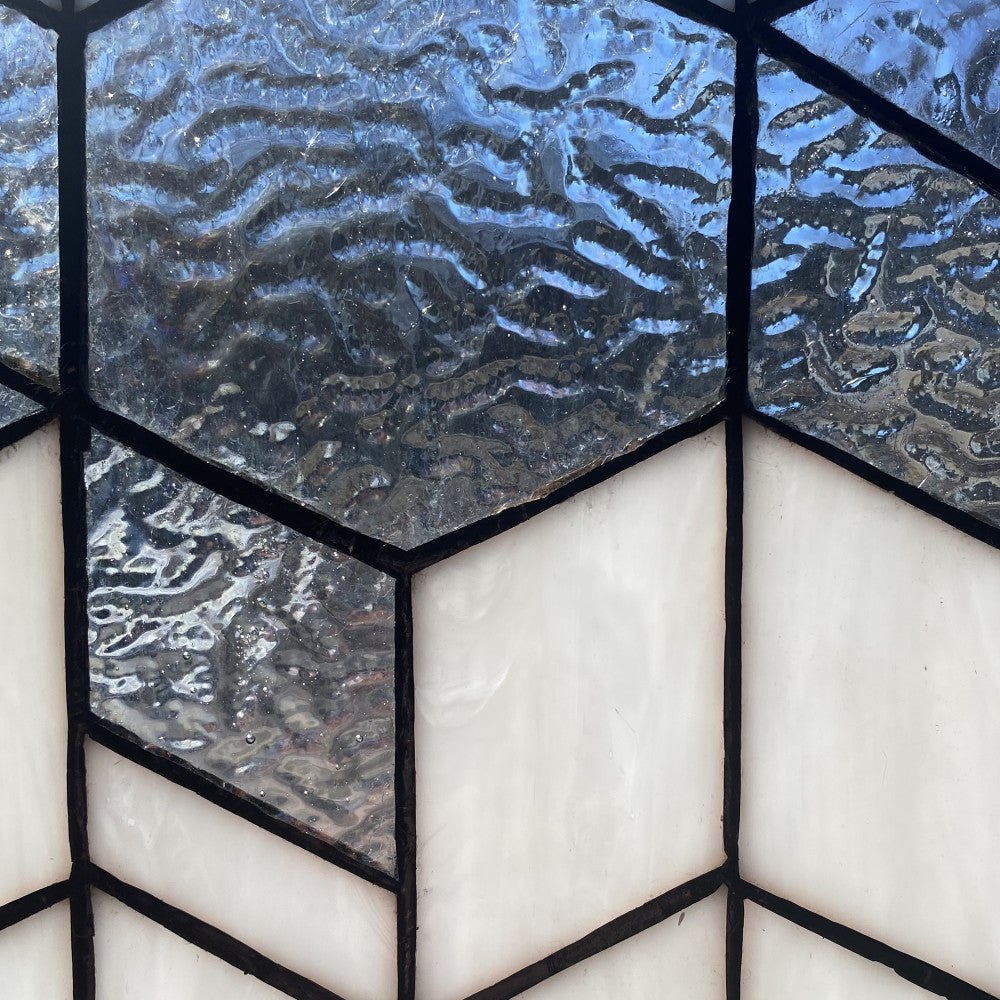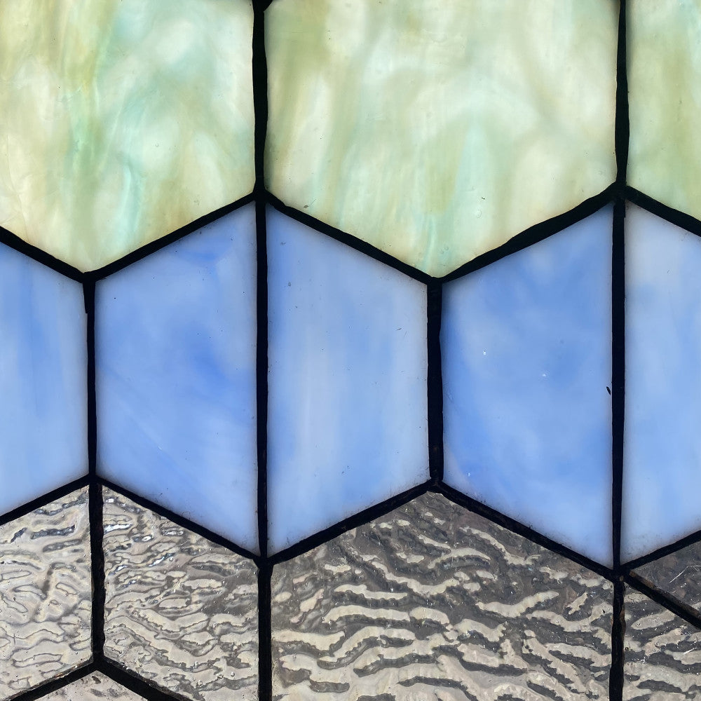 16.5"H Olivia Grey & Blue Cubes Stained Glass Window Panel