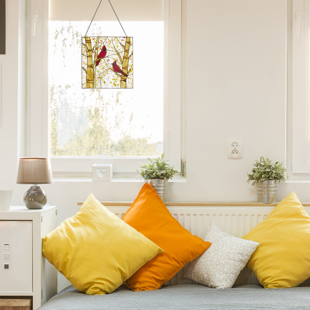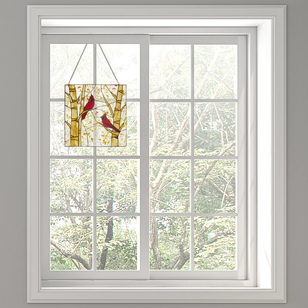 14"H Eden Red Cardinals in Autumn Stained Glass Window Panel