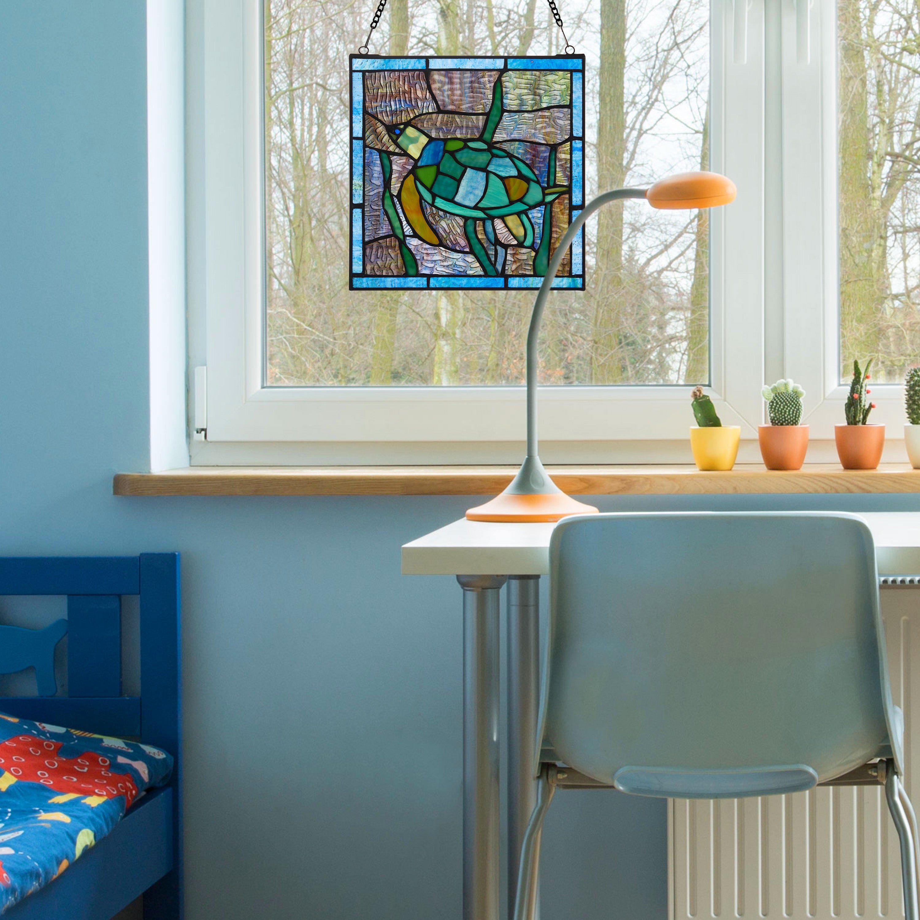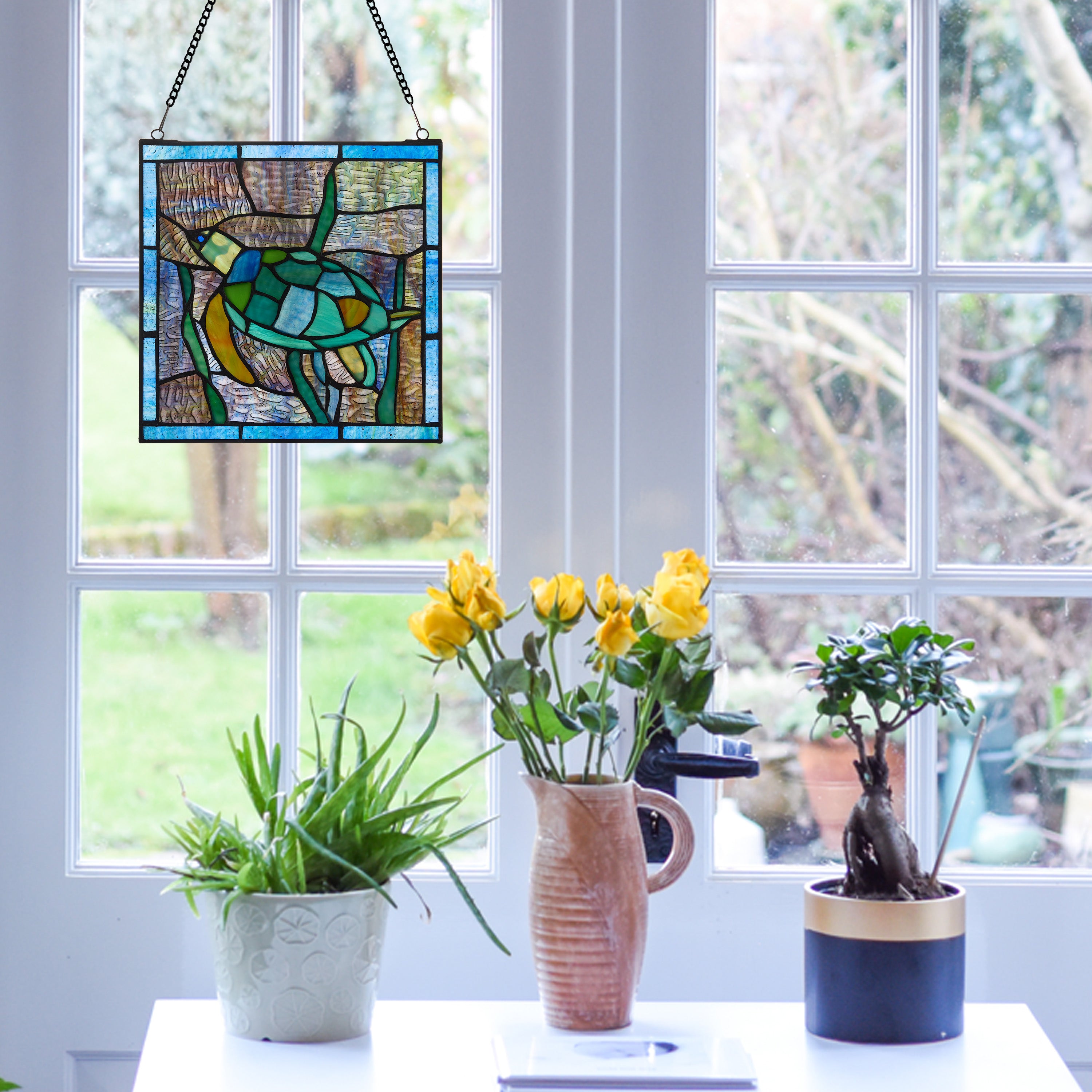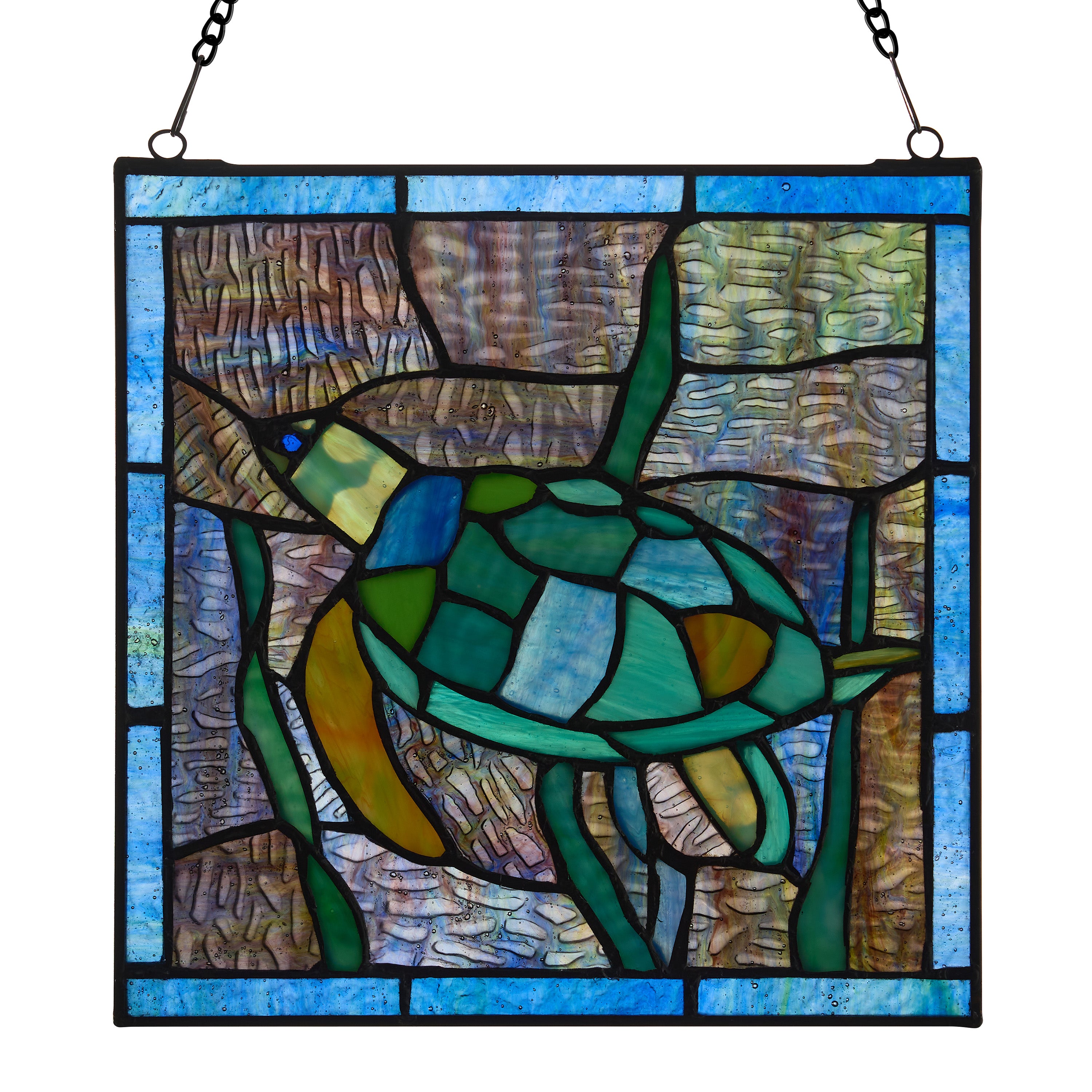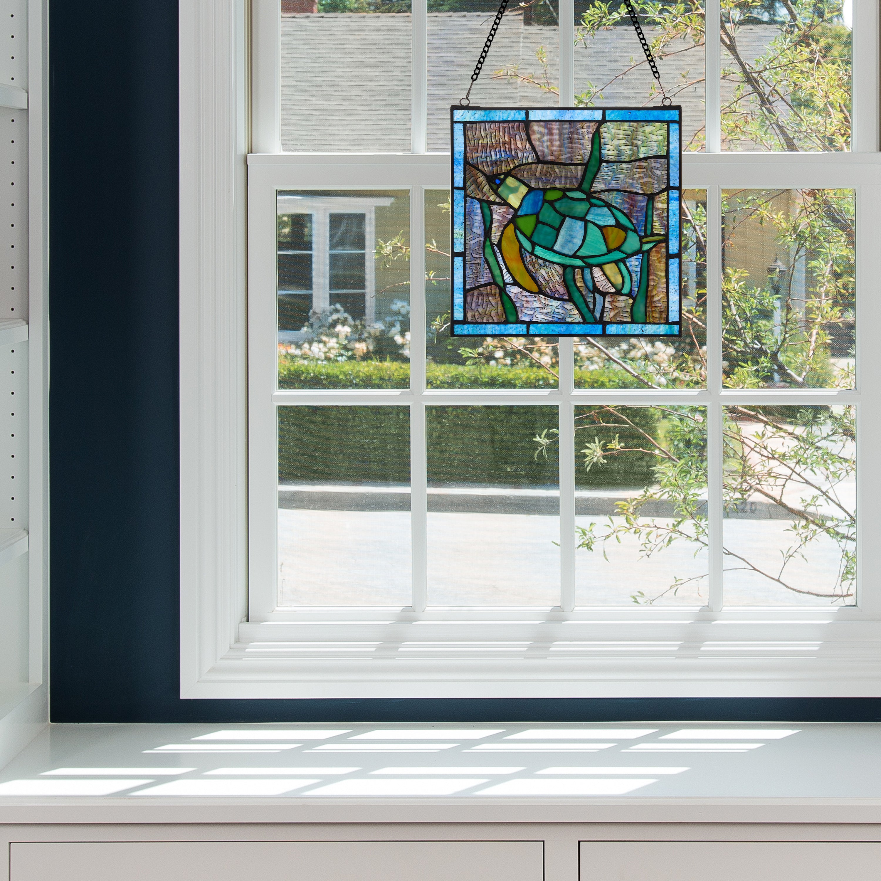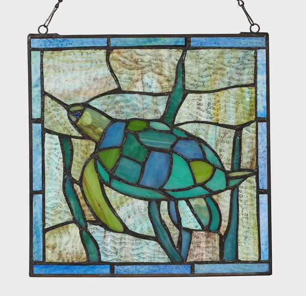 10.5"H Tommy the Green Sea Turtle Stained Glass Window Panel