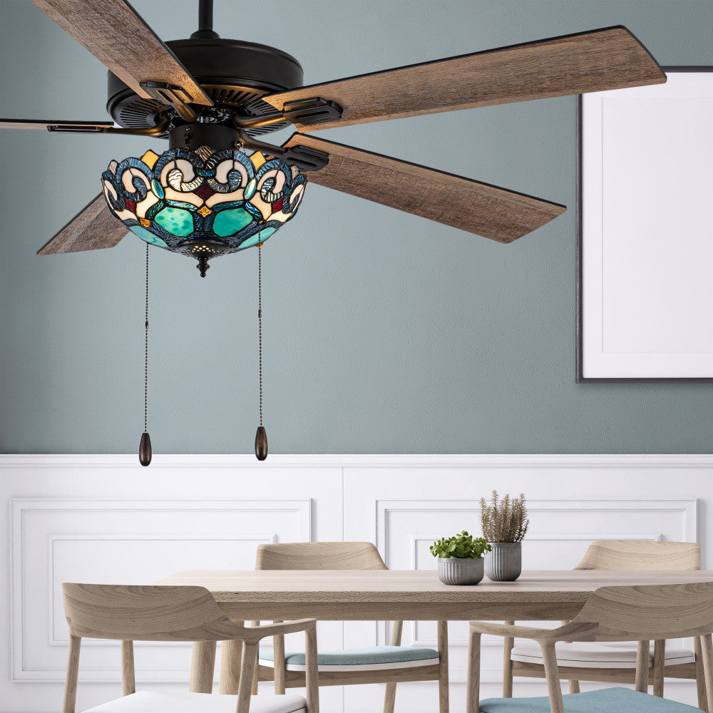 52"W 5-Blade Remote-Controlled Ceiling Fan Tiffany Glass