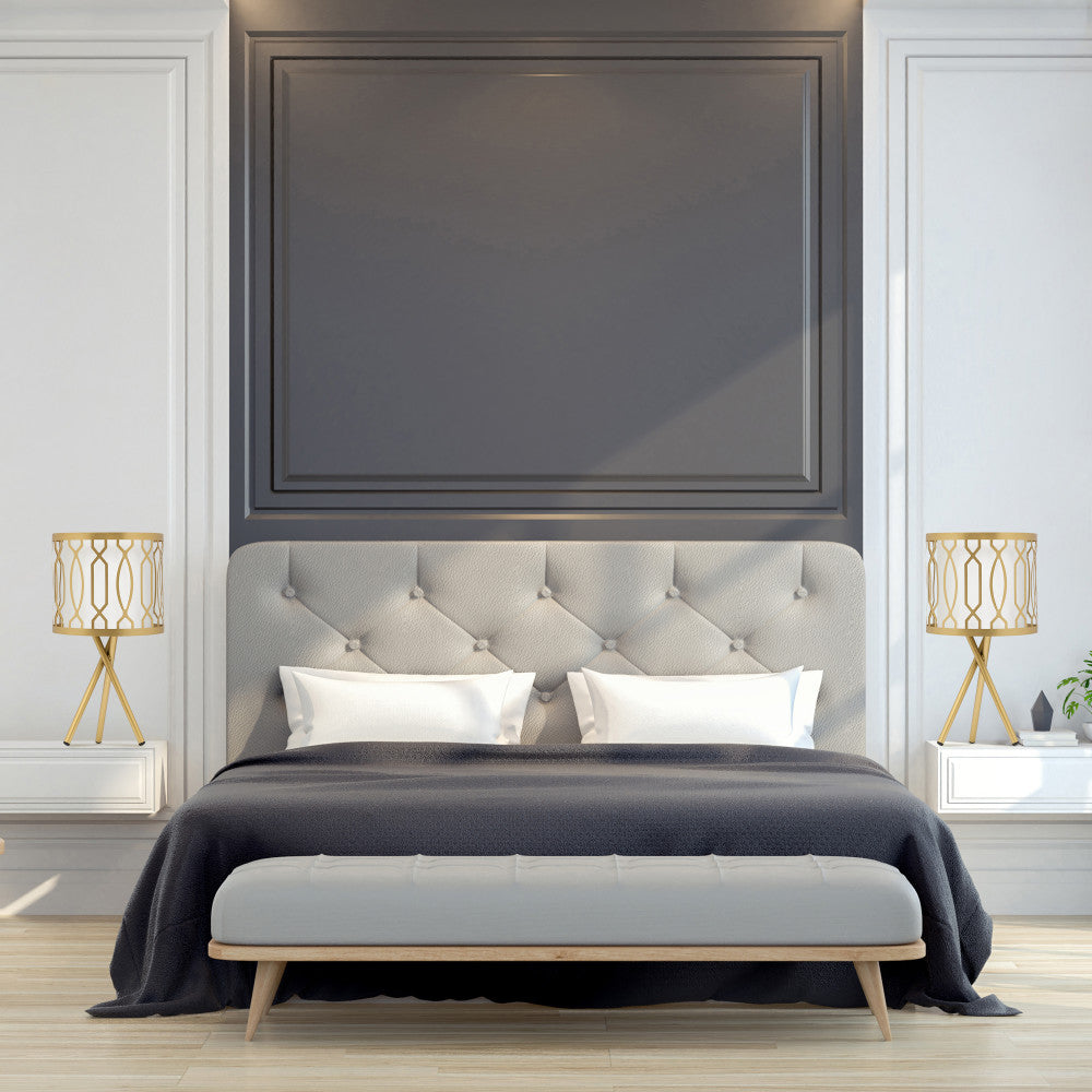 Soft white fabric of the drum-shaped shades creates a soothing glow