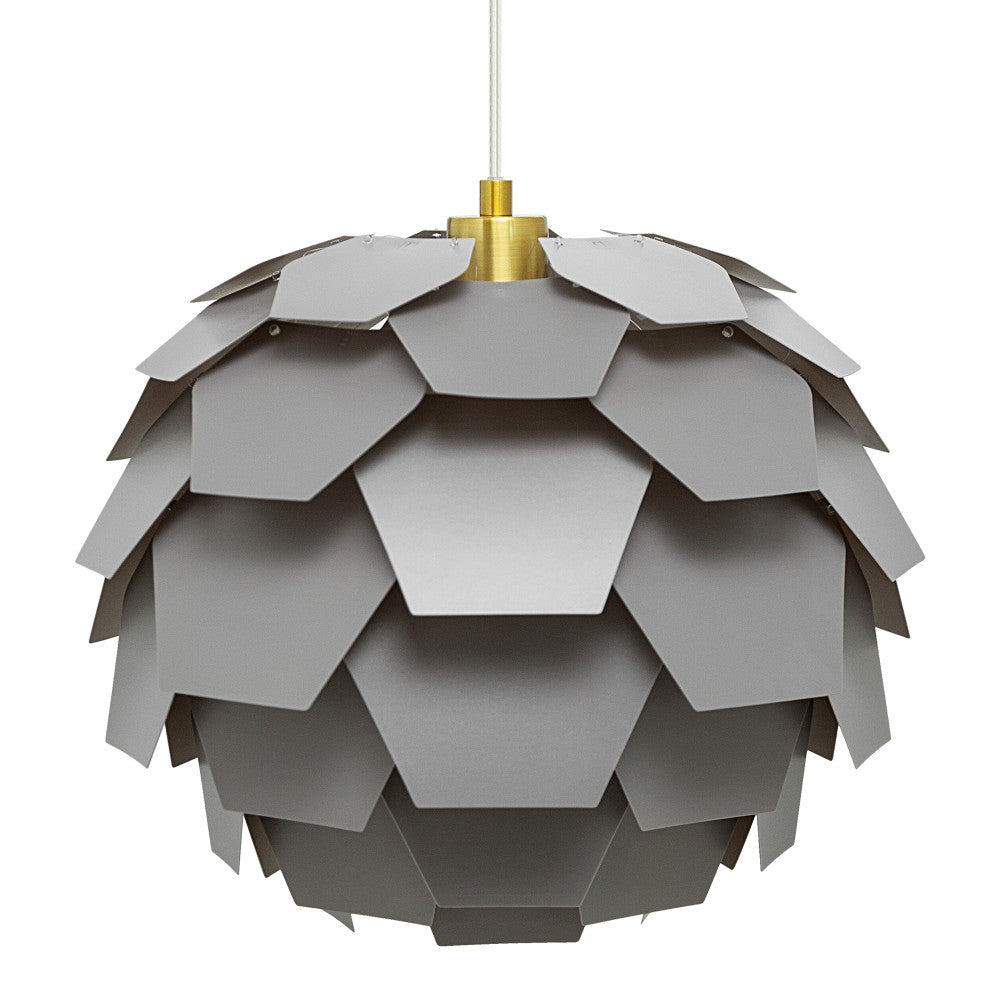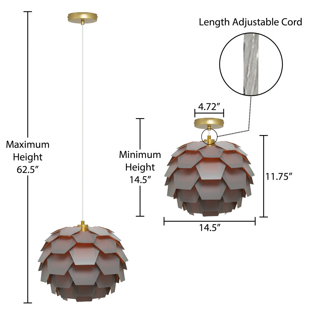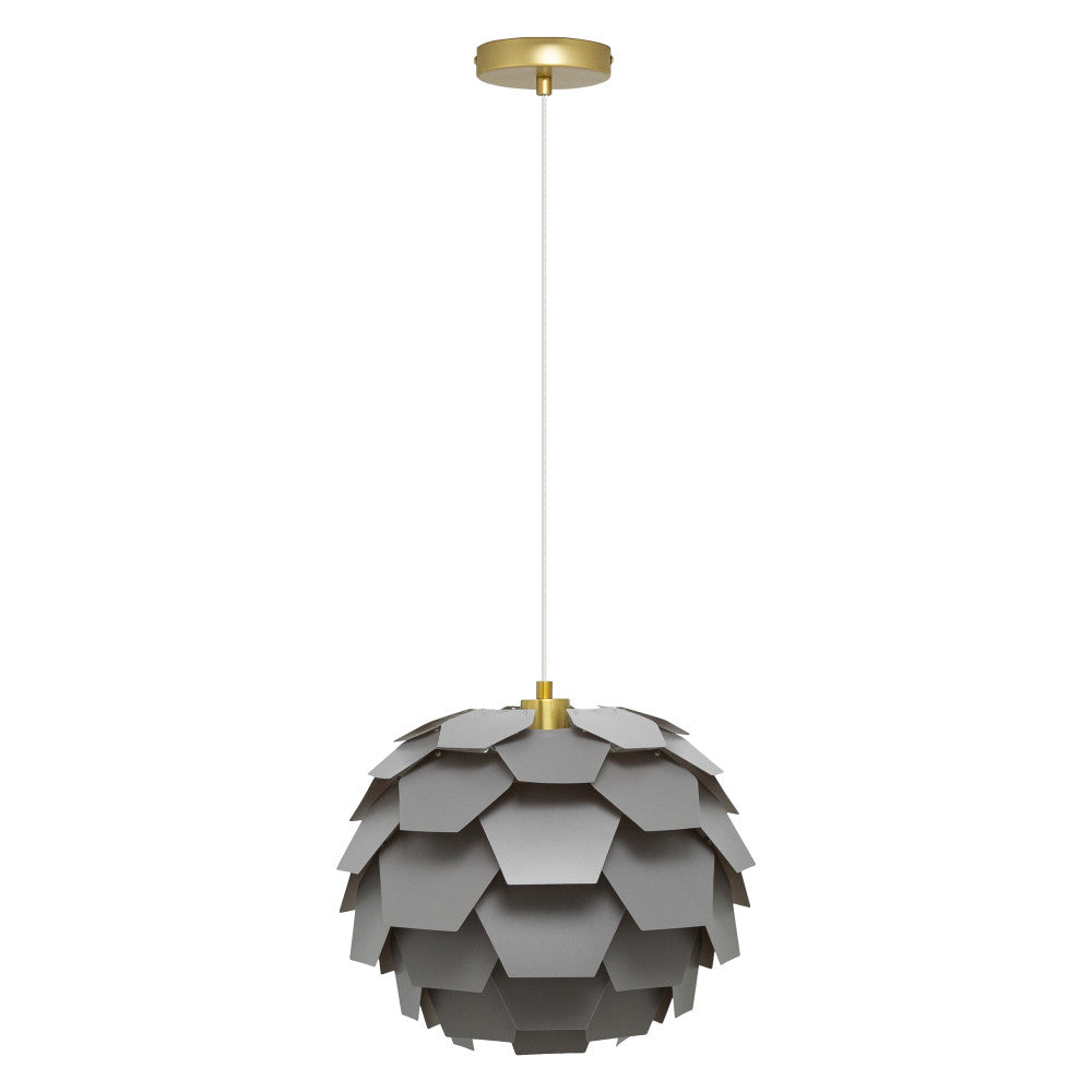 Bring an eye-catching hanging light to your living room or entryway with this stunning modern sculptural pendant light. Featuring a brushed gold canopy and matte gray plastic "petals" that make up the rounded shade, this modern lotus-shaped pendant light adds a glam touch to your interior decor while providing soft, inviting light to the room. An adjustable cord conveniently allows for a drop between 14.5 in and 62.5 in.