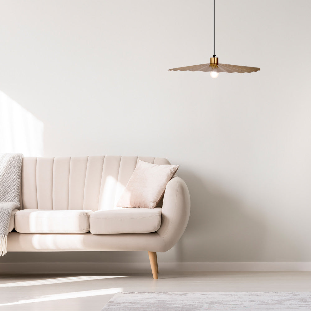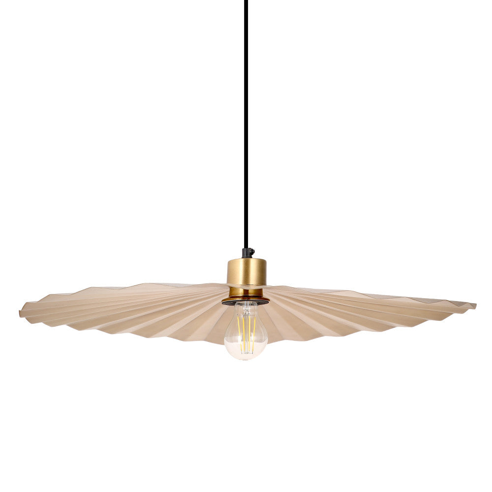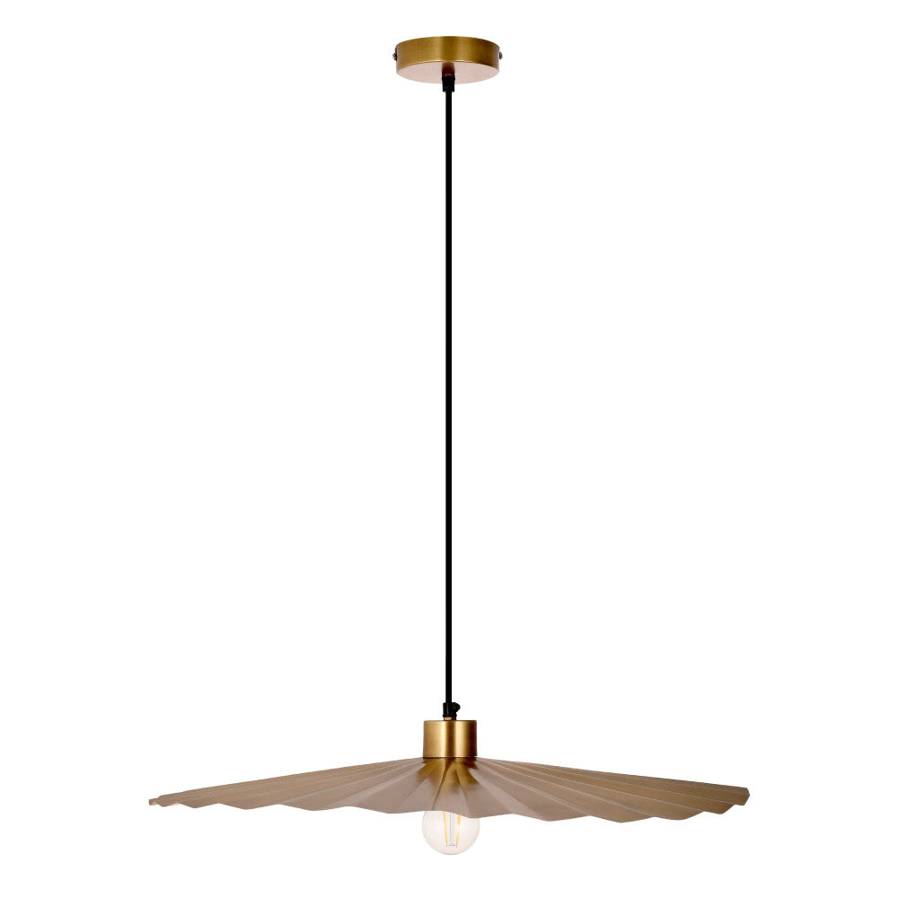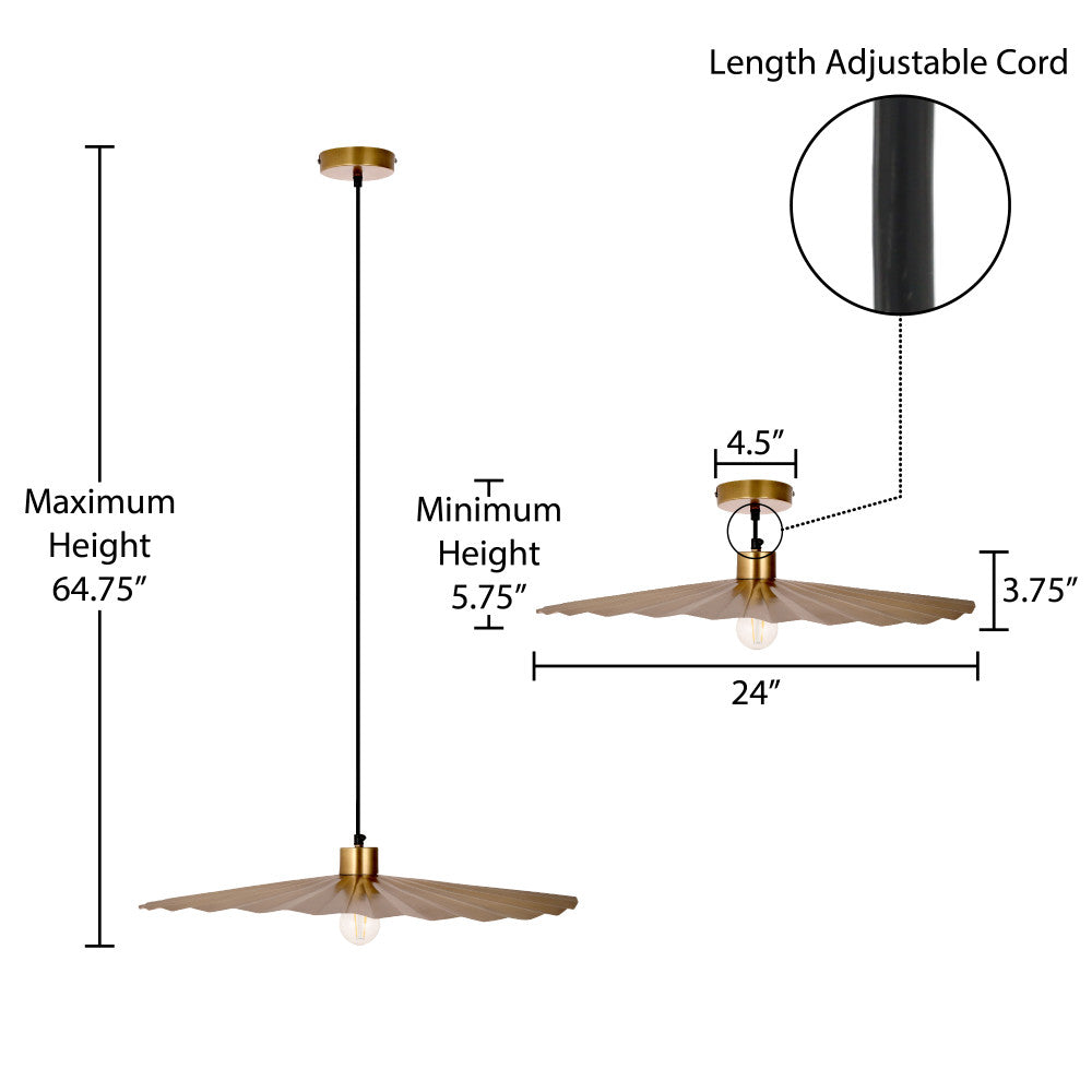 This retro inspired, disk-shaped antique brass painted pendant lamp gives a fresh take on décor styles ranging from farmhouse to contemporary. The antique brass-painted metal shade provides downward illumination, and the wavy shape of the flat, disk-shaped shade creates an interesting focal point. This pendant lamp can be adjusted from 5.75 to 64.75 inches — allowing you to hang it above your dining room table, bedroom reading chair, or even above the pass between your kitchen and family room for retro-inspired style. This pendant lamp requires one 40W E26 light bulb (not included).