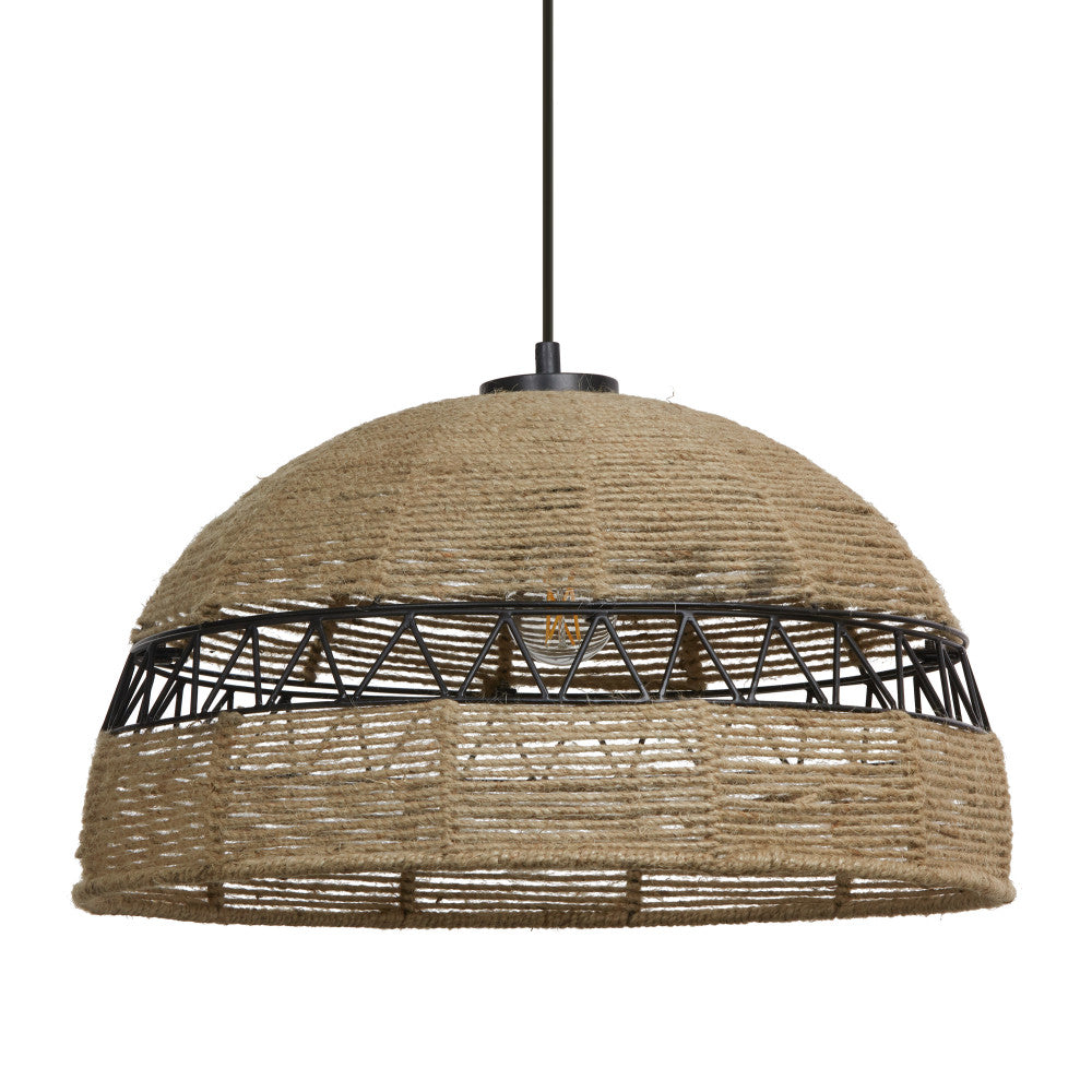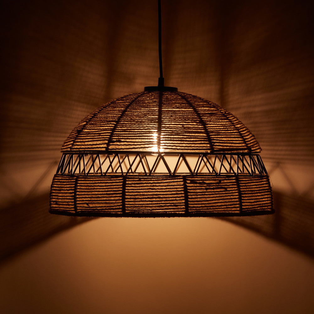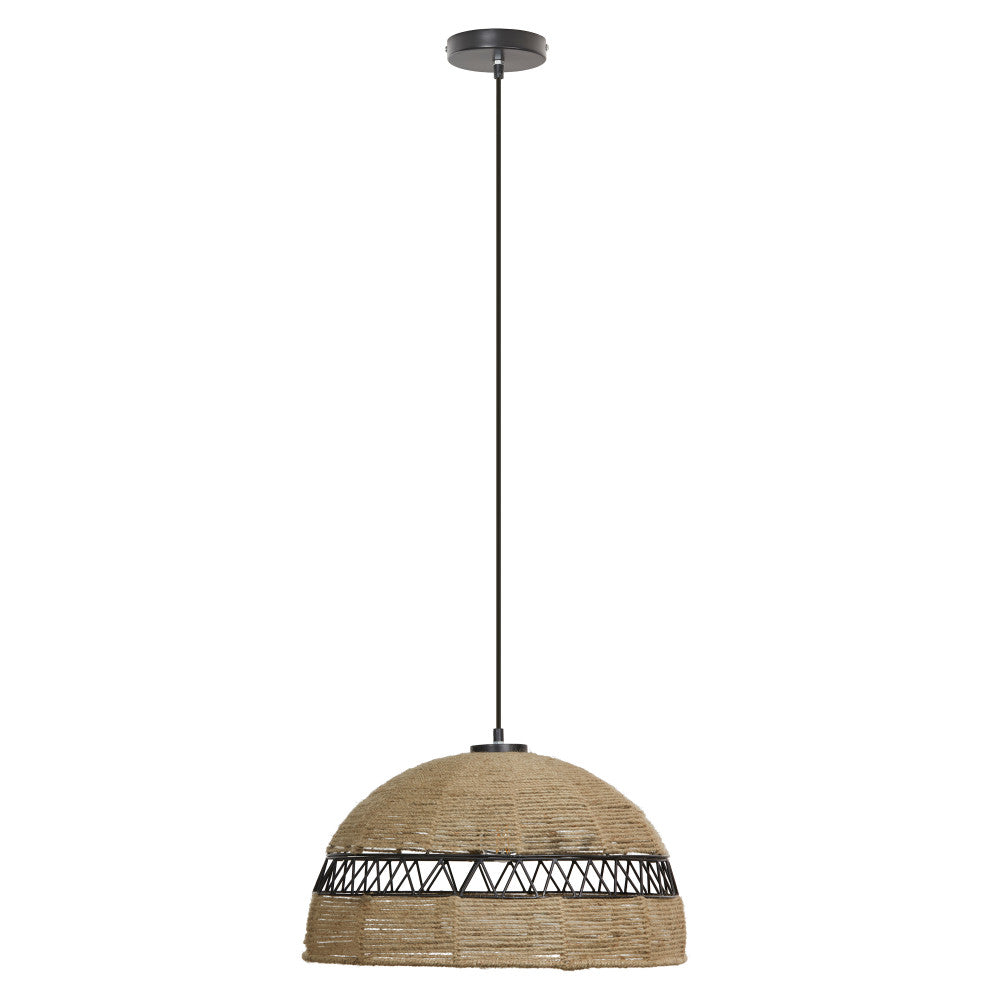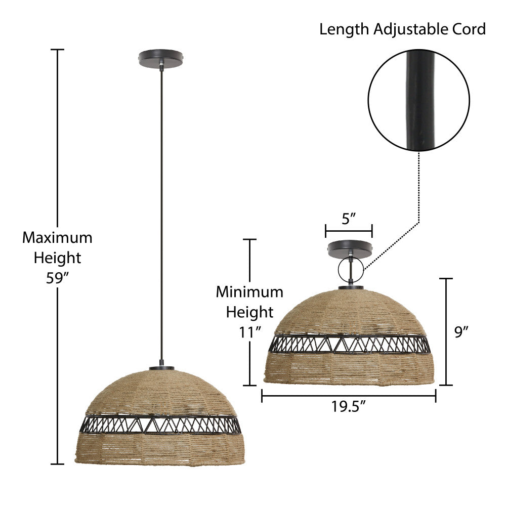 If you love all things bohemian, this hardwired hanging pendant light makes a perfect lighting choice for any room in your home. Designed with a black-finish metal canopy and a tan and black jute dome shade, this pendant exudes rustic style. It requires one 40-watt Type A bulb (not included), and the adjustable hanging cord lets you set the drop height from 11 inches to 59 inches to best fit your space.