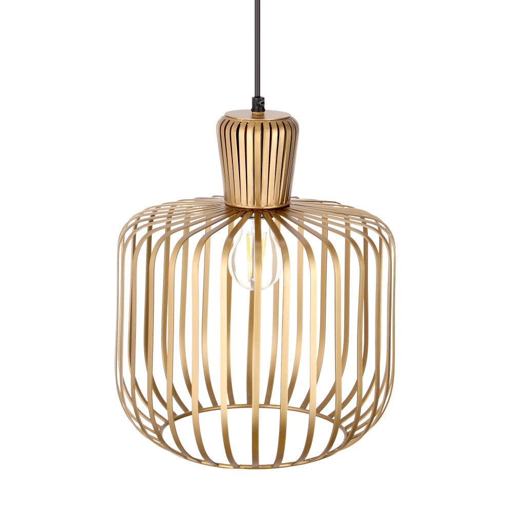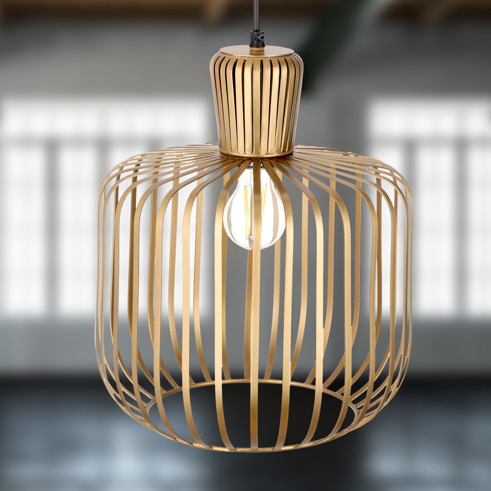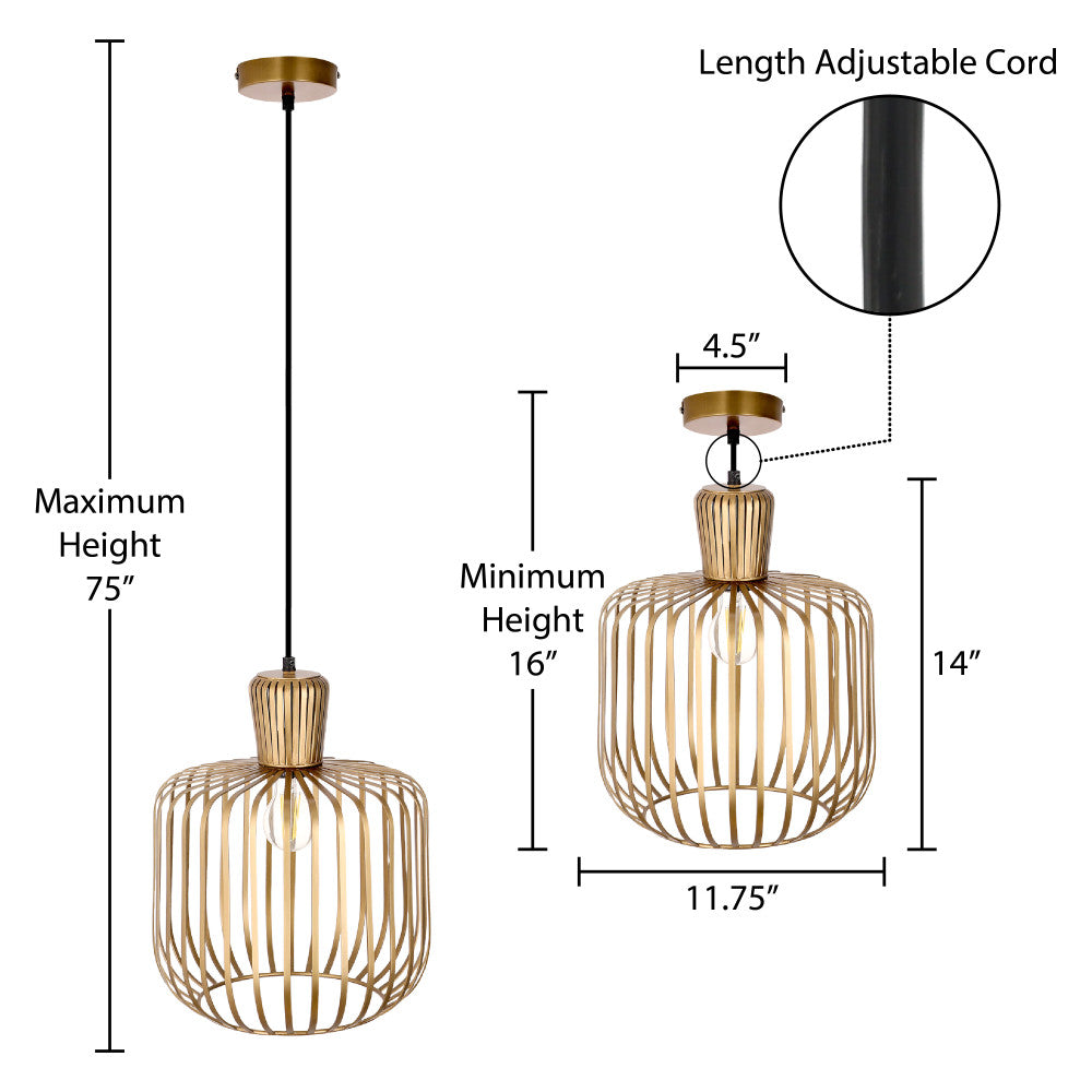 This pendant light is a glam lighting option that will make a statement wherever you choose to hang it in your home. Made from antique brass-painted metal, it features a globe shade in an antique brass cage style. The adjustable hanging cord allows you to alter the drop height anywhere from 16 to 75 inches to best fit any space, and it makes a great pairing with modern, glam or industrial decor.