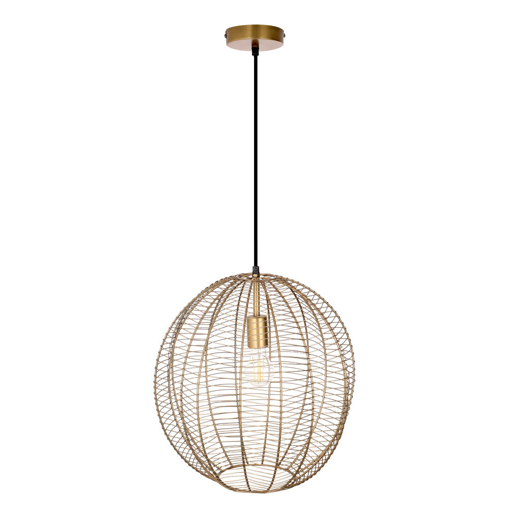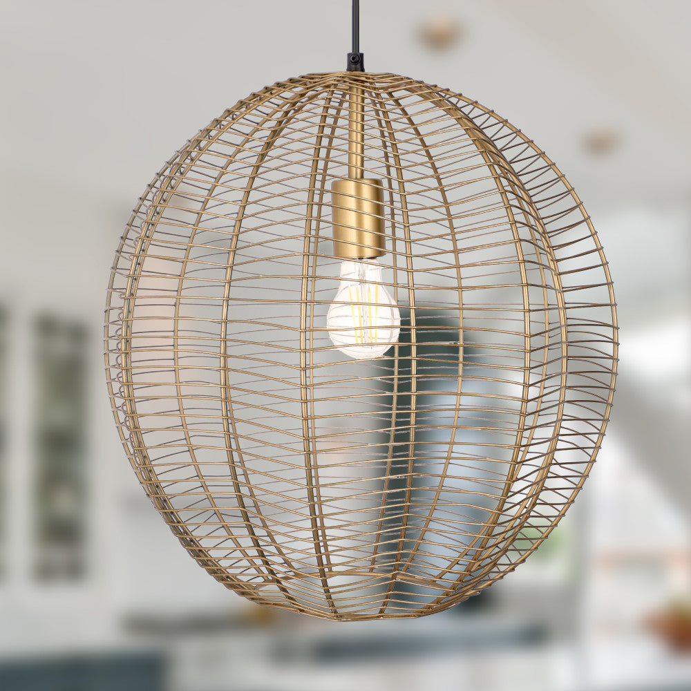 This pendant light is a glam lighting option that will make a statement wherever you choose to hang it in your home. Made from antique brass-painted metal, it features a globe shade wrapped in a delicate antique brass metal wire. The adjustable hanging cord allows you to alter the drop height anywhere from 18.25 to 77.25 inches to best fit any space, and it makes a great pairing with modern, glam or industrial decor.