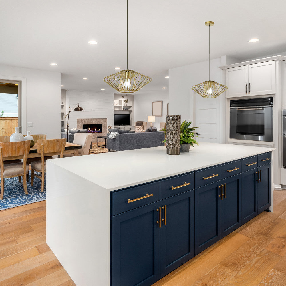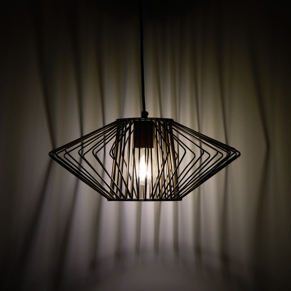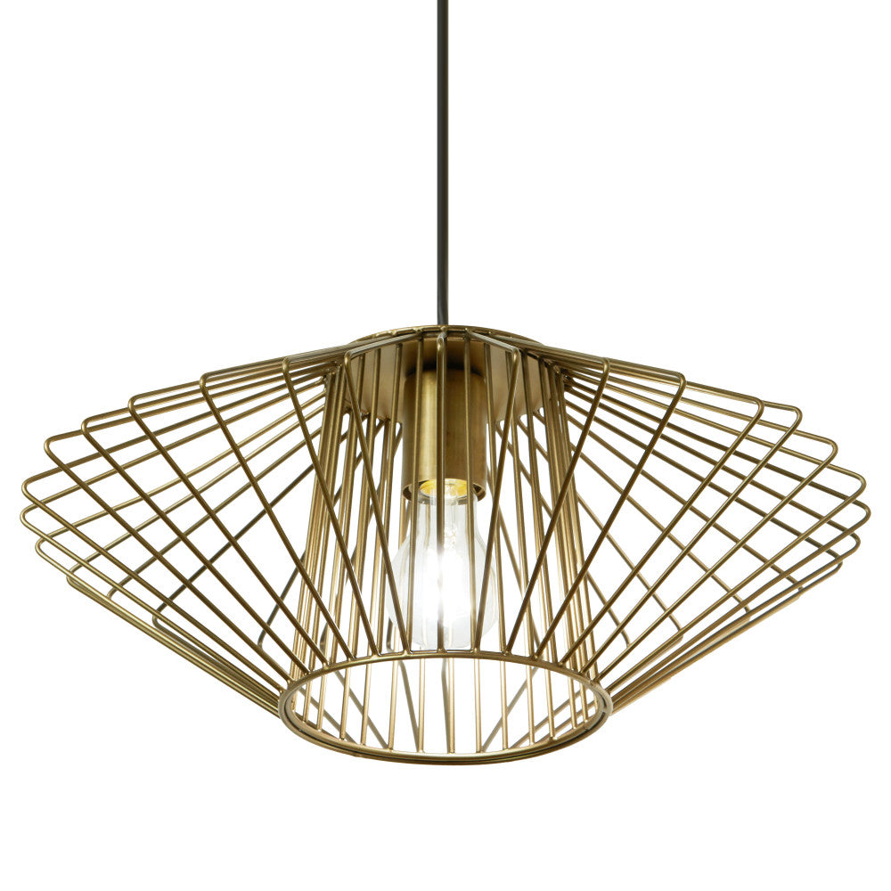 This industrial-style pendant light brings a touch of modern sophistication to any space. Its stunning gold metal construction demands attention while also providing a warm, inviting glow. The open saucer-like, cage shade creates a captivating geometric pattern as the light shines through, casting a multidirectional light that beautifully illuminates your room. The height of the pendant light is adjustable, allowing you to tailor the light to your needs and the specifics of your space. The unique industrial styled shade adds a distinctive touch to the overall design. This pendant light is perfect for those seeking to add a touch of elegance and modern charm to their home decor. This light fixture requires one 40-watt or compatible LED, incandescent, or CFL bulb (not included).