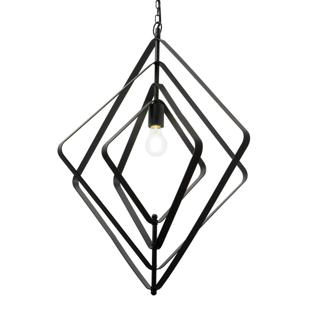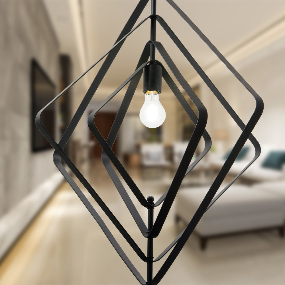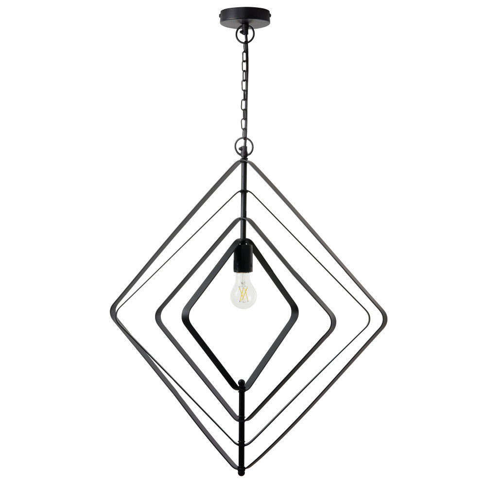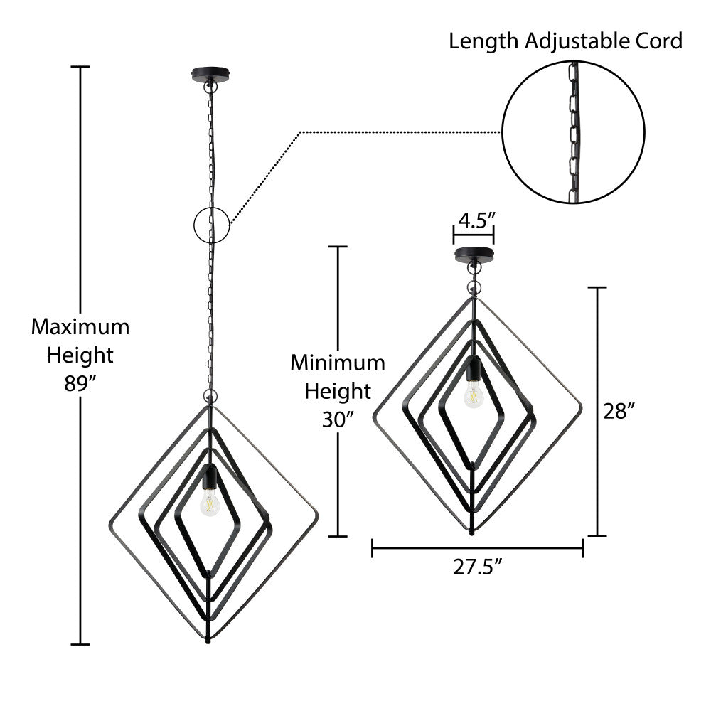 Crafted with industrial style, this black metal pendant light features a multi-layered square-shaped cage shade that casts multidirectional light, giving your space a unique illumination. It's multilayered design is not fixed so the item can be set in a design to fit your space. The black metal finish is handcrafted, adding an antique touch to the light. The height of the pendant light is also adjustable, making it flexible to suit various spaces. Its design is not only functional but also helps enhance the aesthetic of your home, adding a touch of modernity and elegance. This pendant requires installation and one 40 watt bulb, not included.