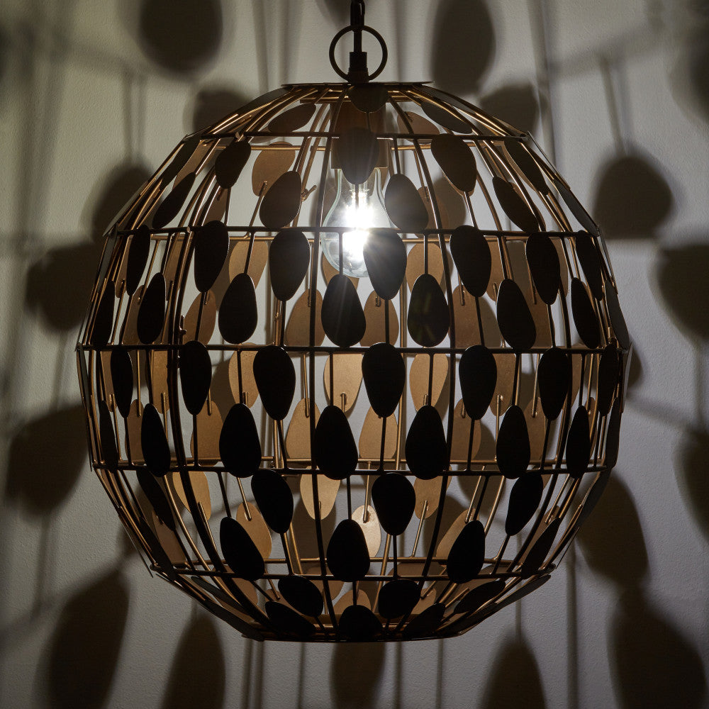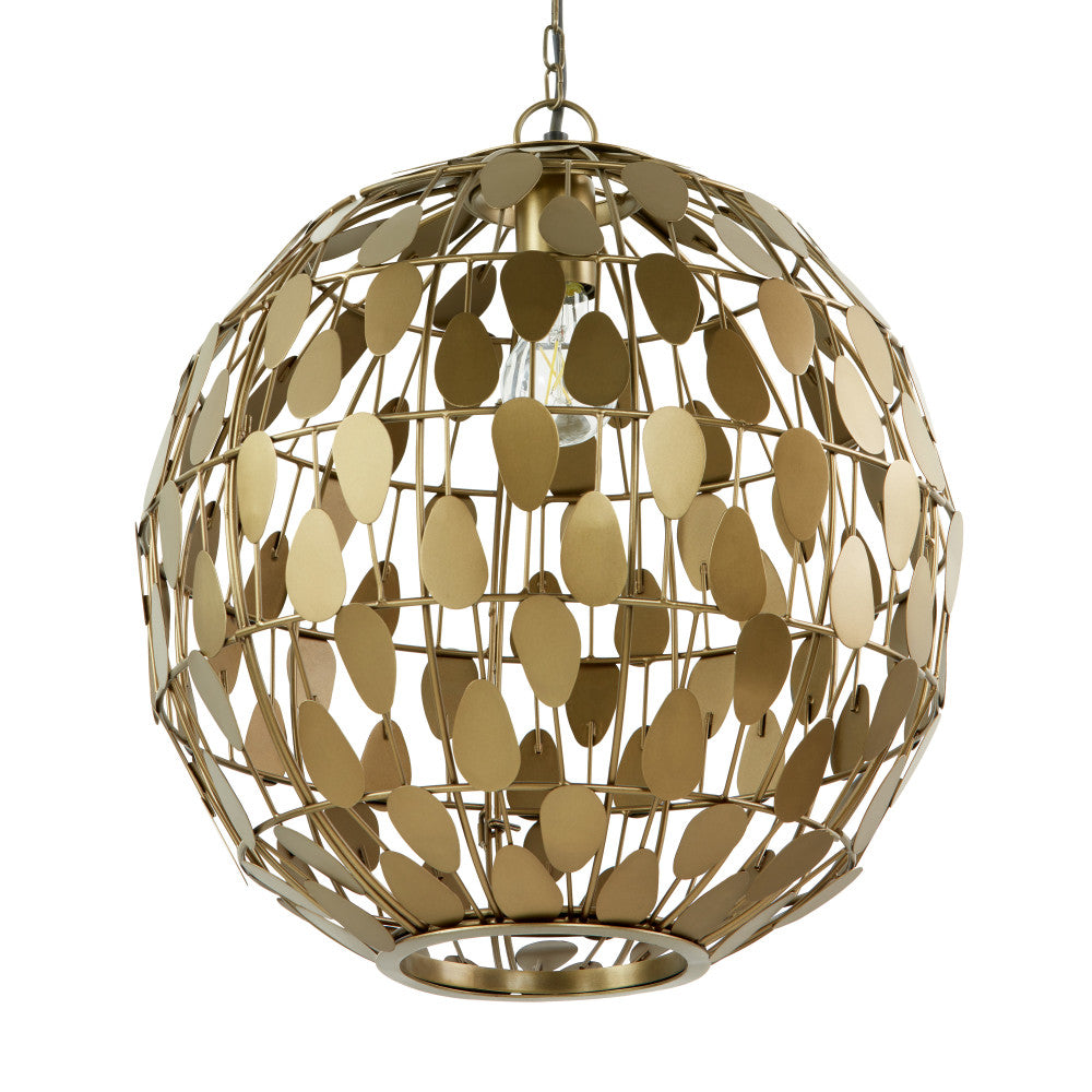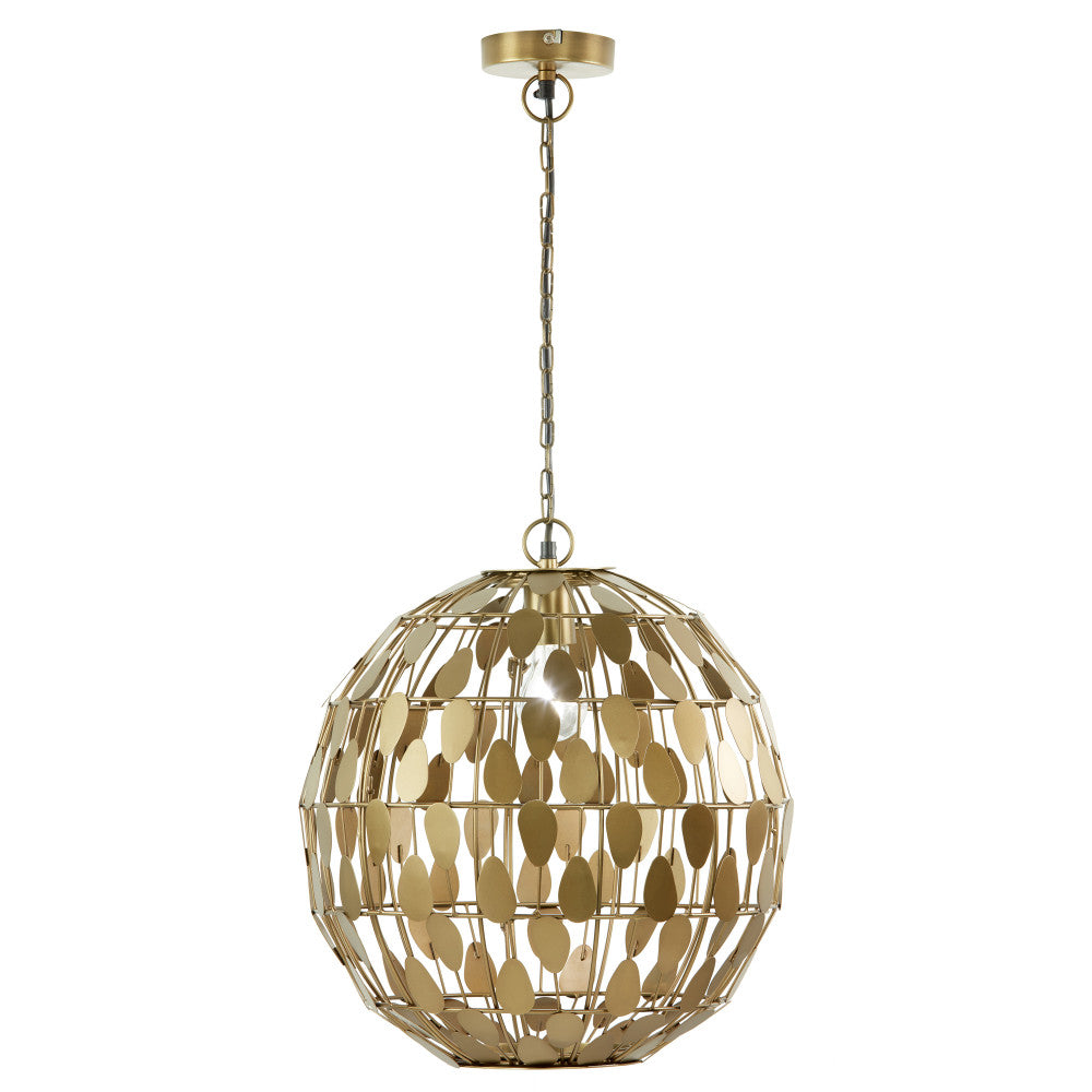 Illuminate your space with this unique pendant light. Its gold metallic finish and globe-shaped shade make a striking visual statement, while the affixed oval cut-outs in the metal shade cast intriguing shadows for a multi-directional light effect. The unique pendant light comes with an adjustable hanging cord, allowing you to customize the height to suit your space. With capacity for one 40-watt bulb, this pendant light is compatible with incandescent, CFL, and LED bulbs to cater to your preference (bulb not included).