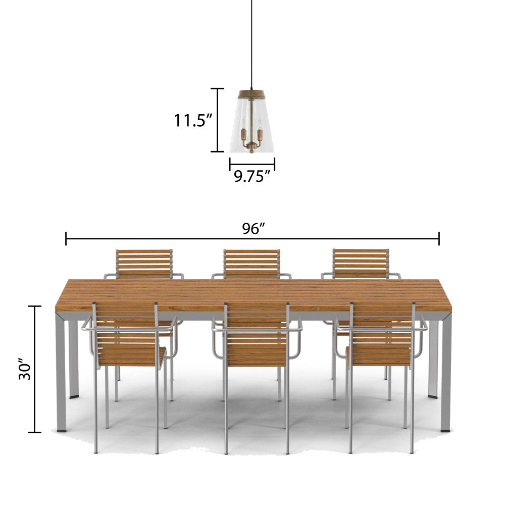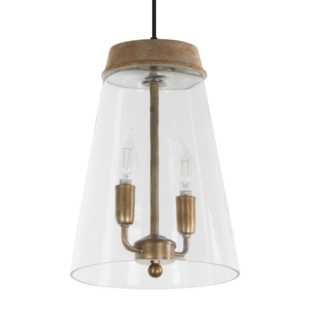 9.75" W 2-Light Angelique Metal, Glass and Mango Wood Pendant