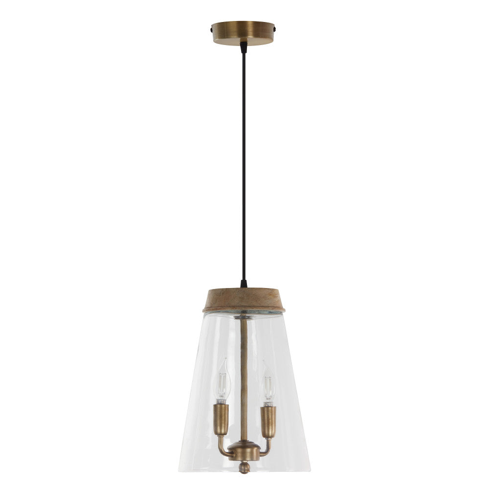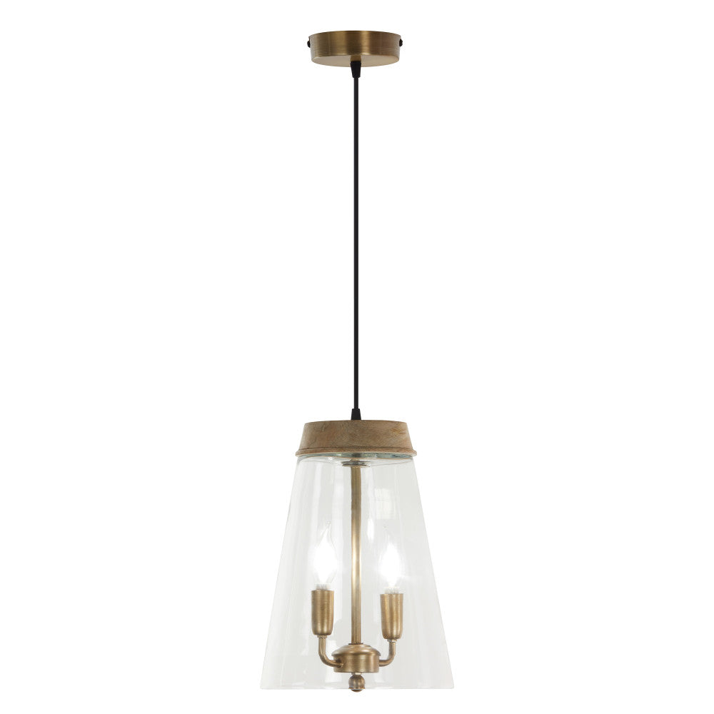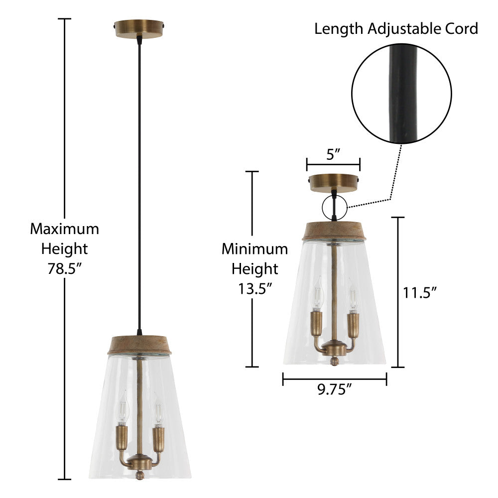 Bring dramatic lighting to your living room, kitchen or foyer with this beautiful mixed-material pendant light. Showcasing a gold-finish metal canopy and a clear glass empire shade accented by a mango wood top, it makes a great pairing with modern, industrial or transitional décor. The pendant requires two 40-watt Type B bulbs (not included). Plus, the adjustable hanging cord lets you set the drop height between 13.5 and 78.5 inches to create the look that best suits your space.