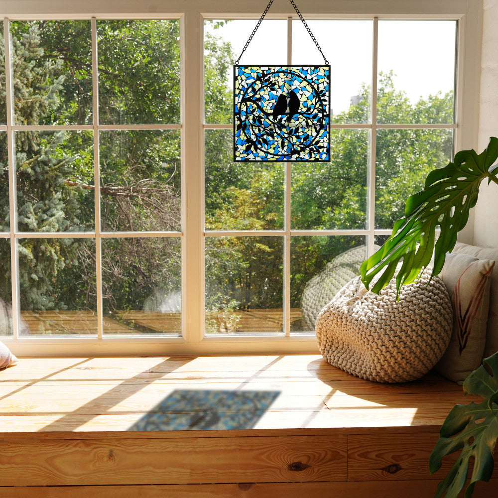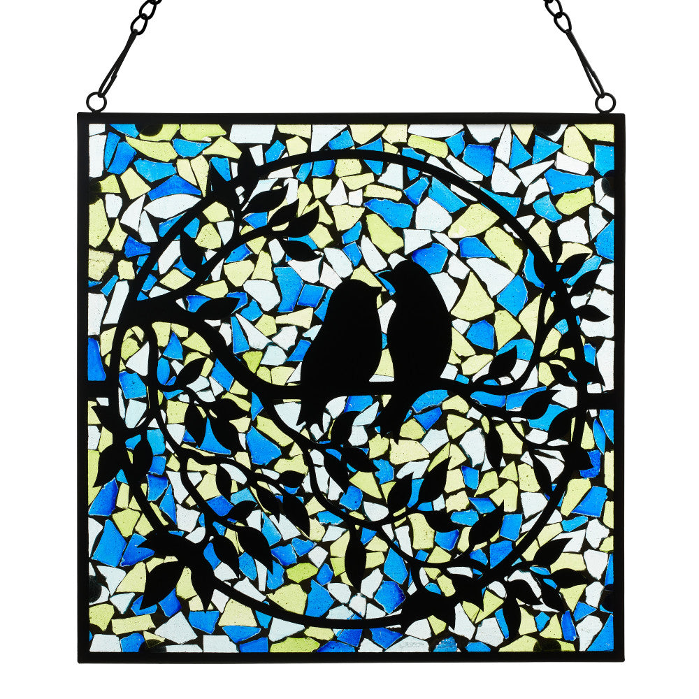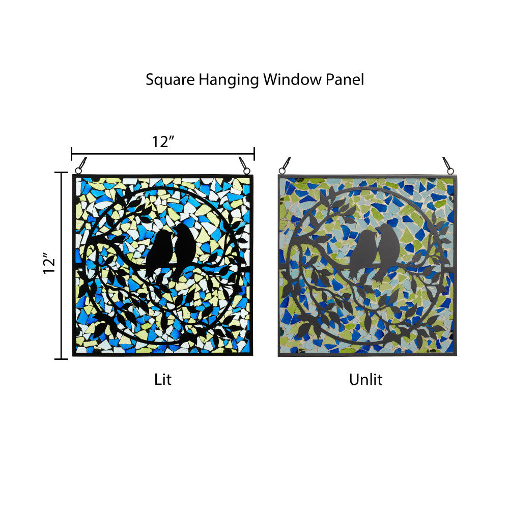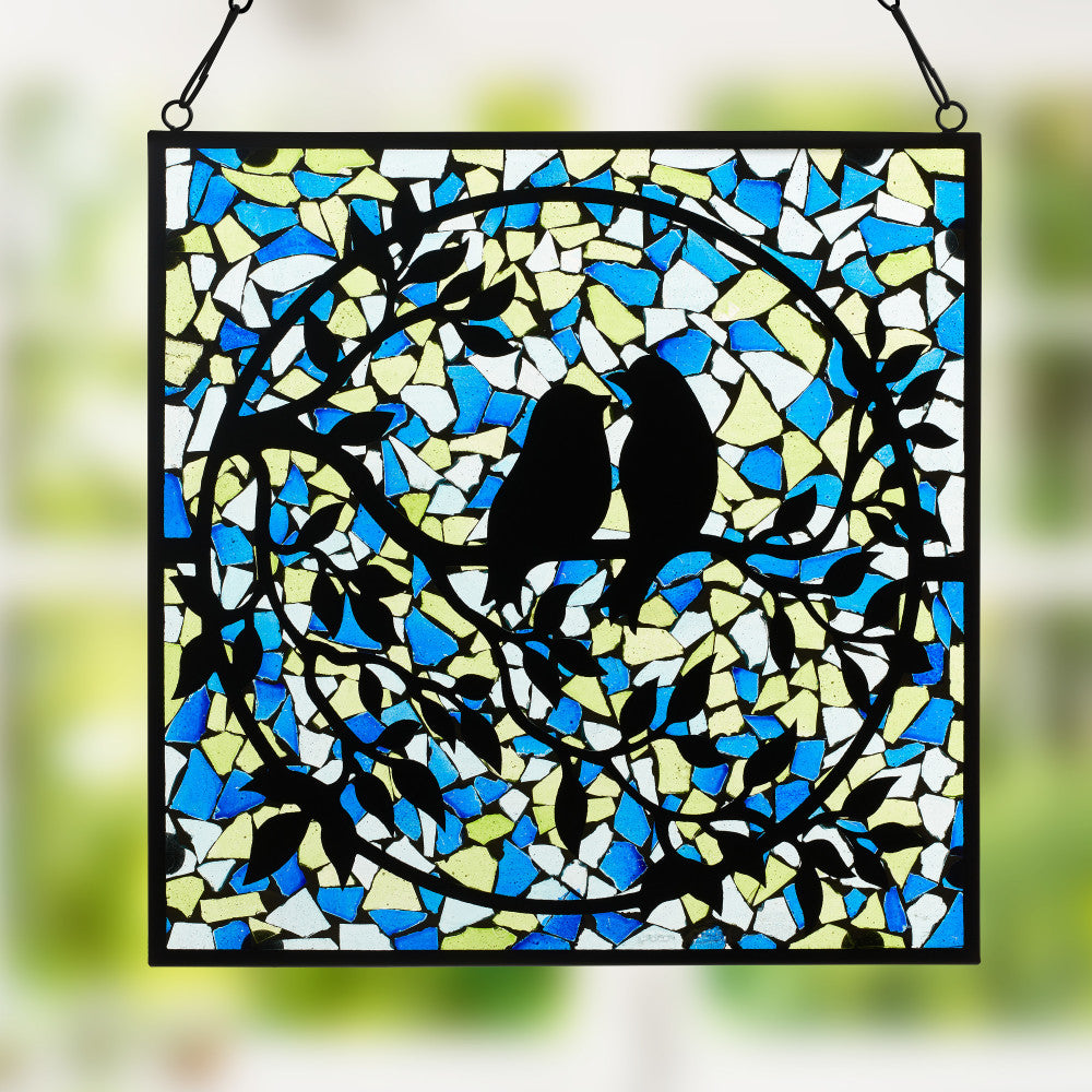 12" W Love Birds Mosaic Stained Glass Window Panel