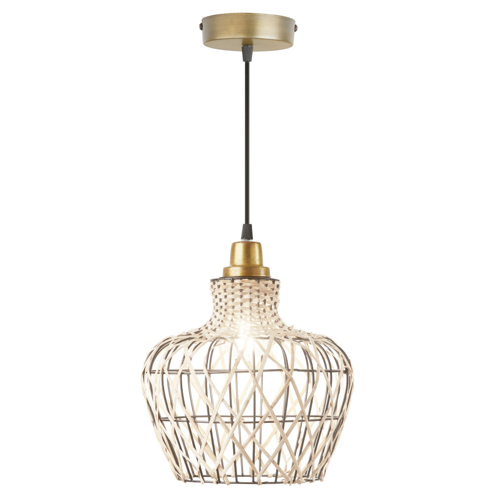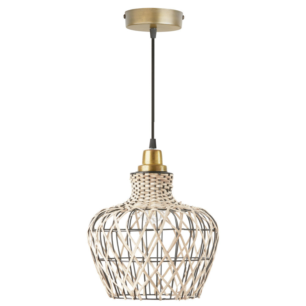 10.25" W 1-Light Betsy Rattan and Metal Pendant