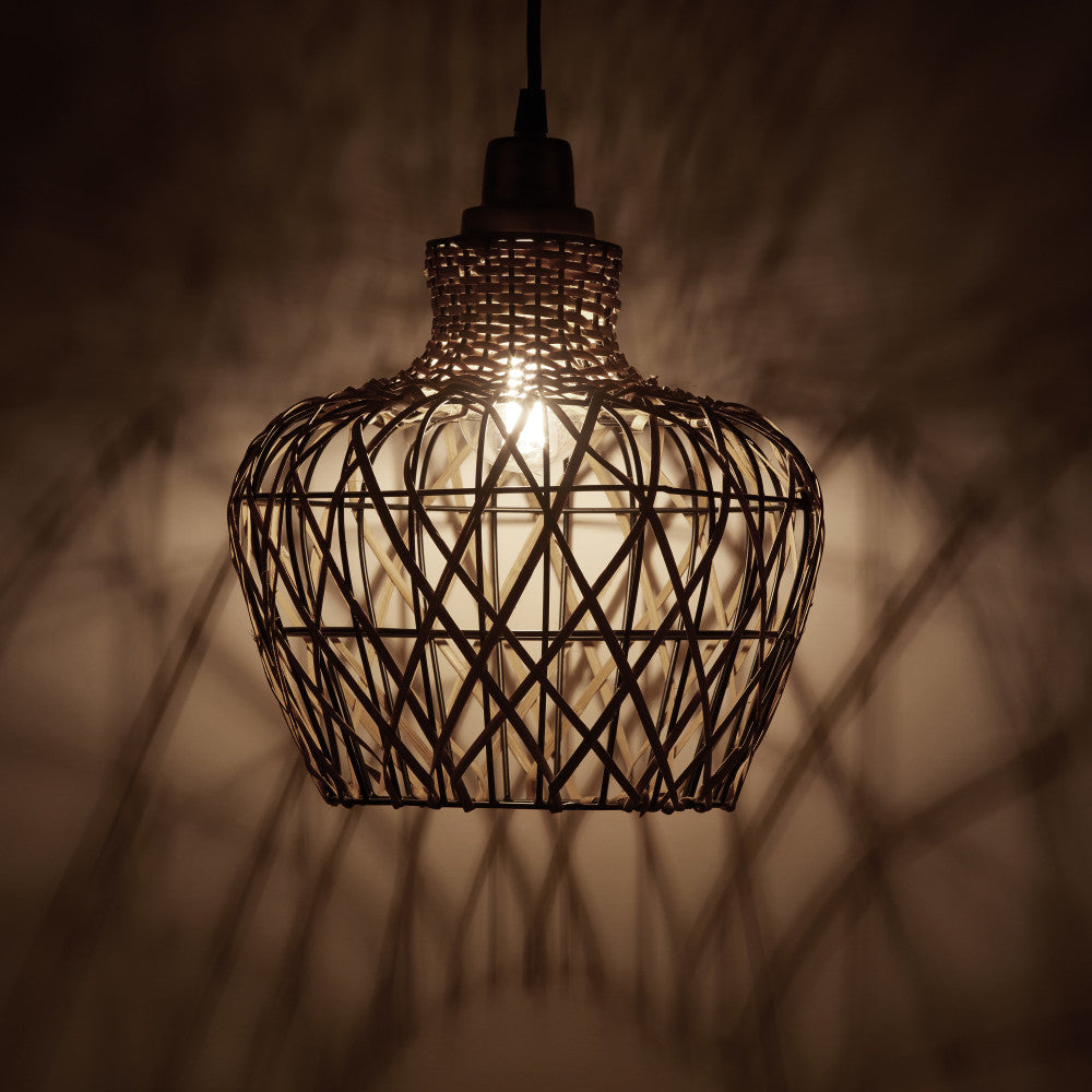 • Pendant light with basket-weave globe shade