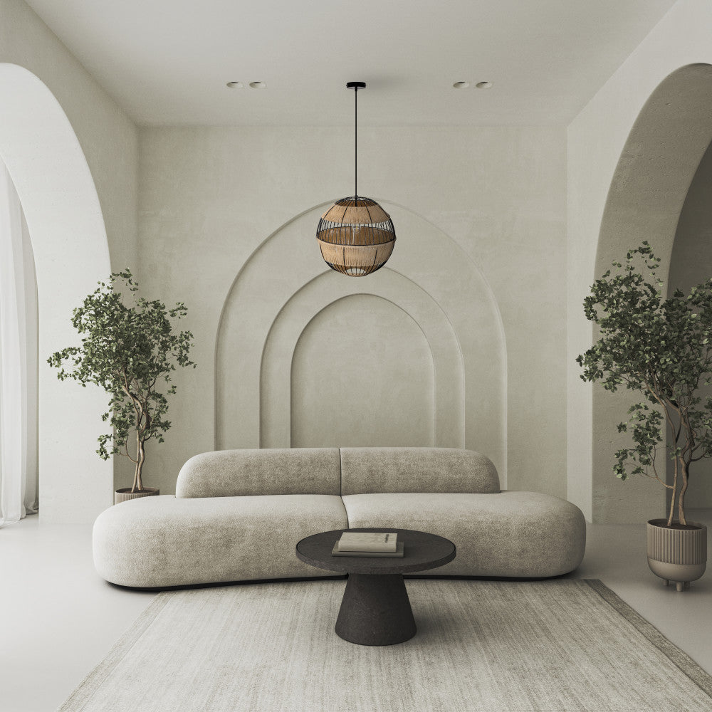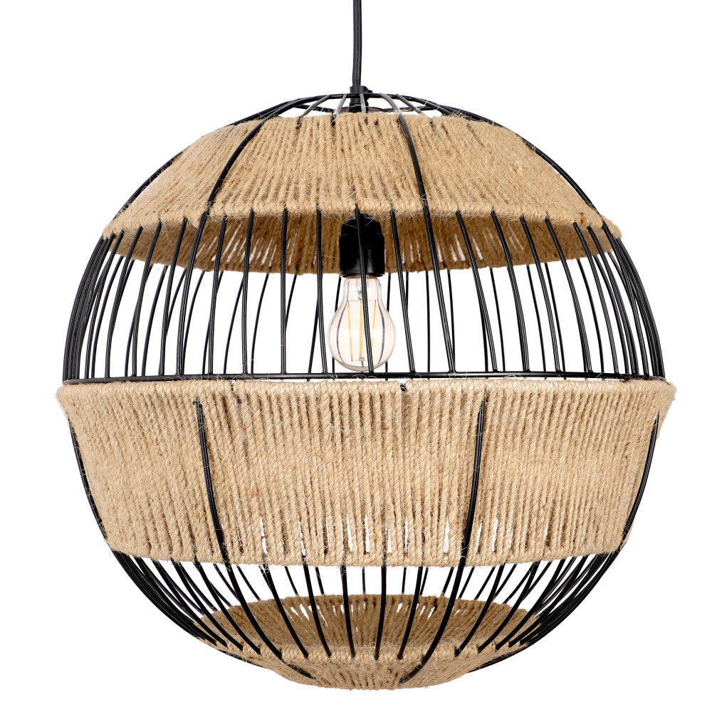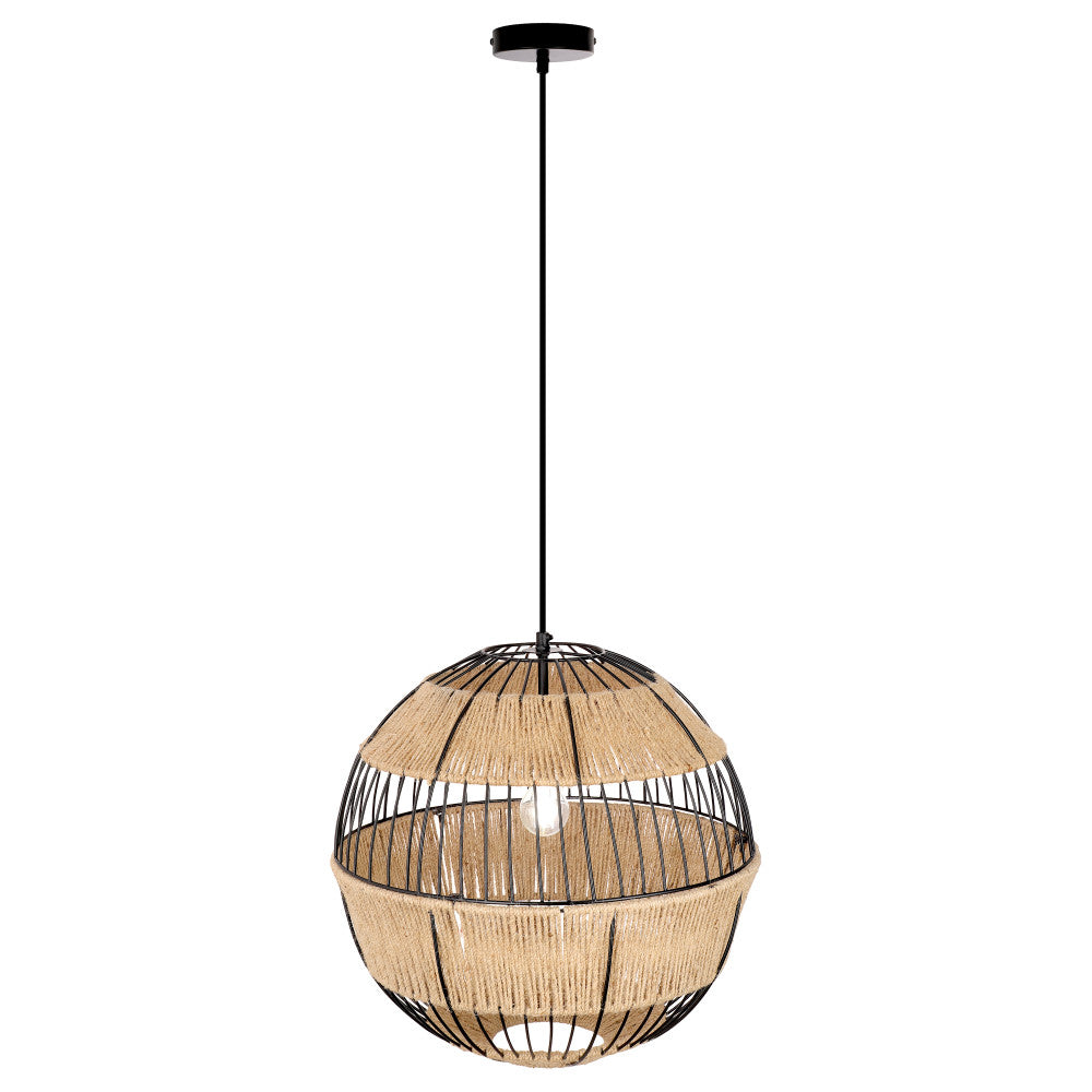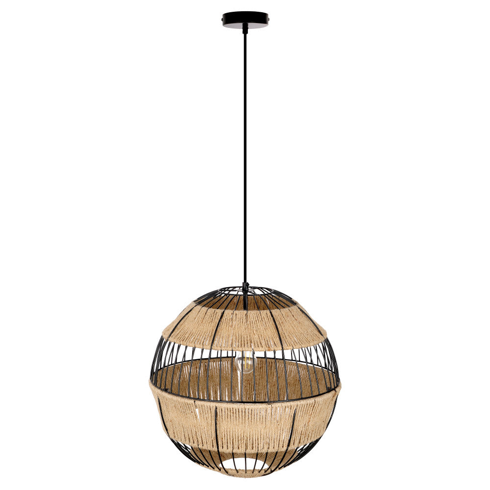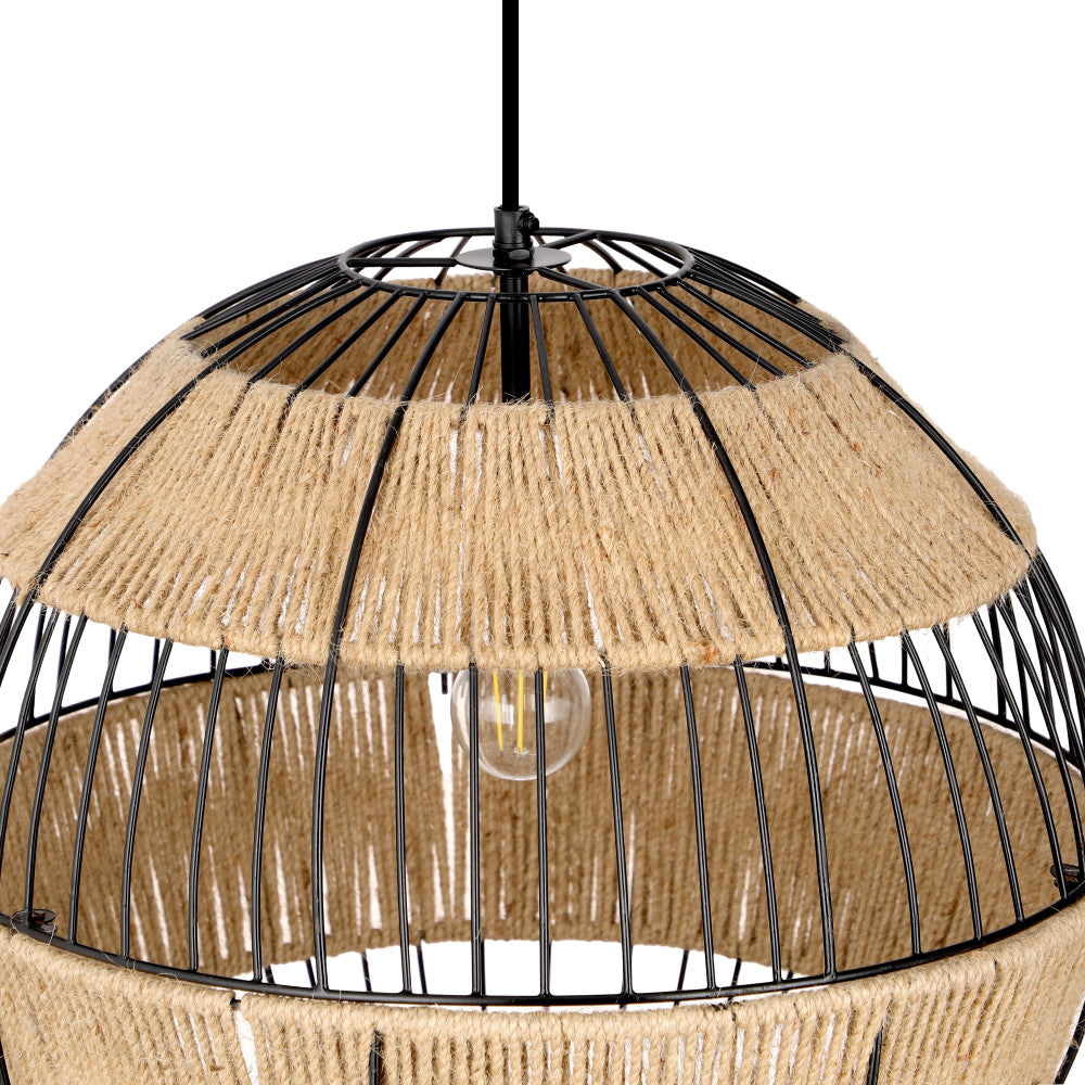 Bring a touch of coastal charm and eclectic elegance to your home with this gorgeous pendant light. Featuring a black metal structure with jute-wrapped details, this pendant light adds an element of unexpected texture and color. The globe shade is handcrafted, providing multidirectional light that beautifully illuminates your space. With its adjustable cord, you can perfectly position this pendant for task or ambient lighting in your kitchen, dining room or living area. It's as versatile as it is stylish, making it a favorite for those who like their décor to be as unique as they are.