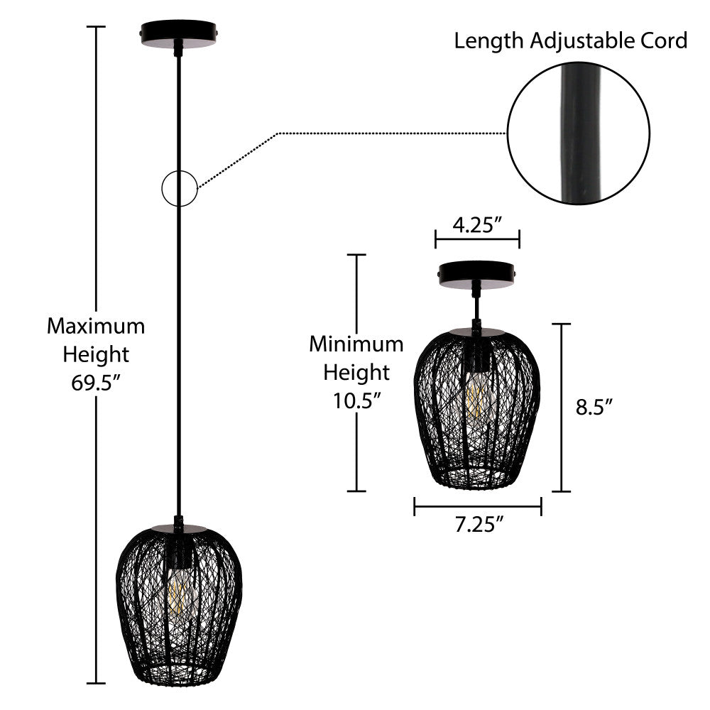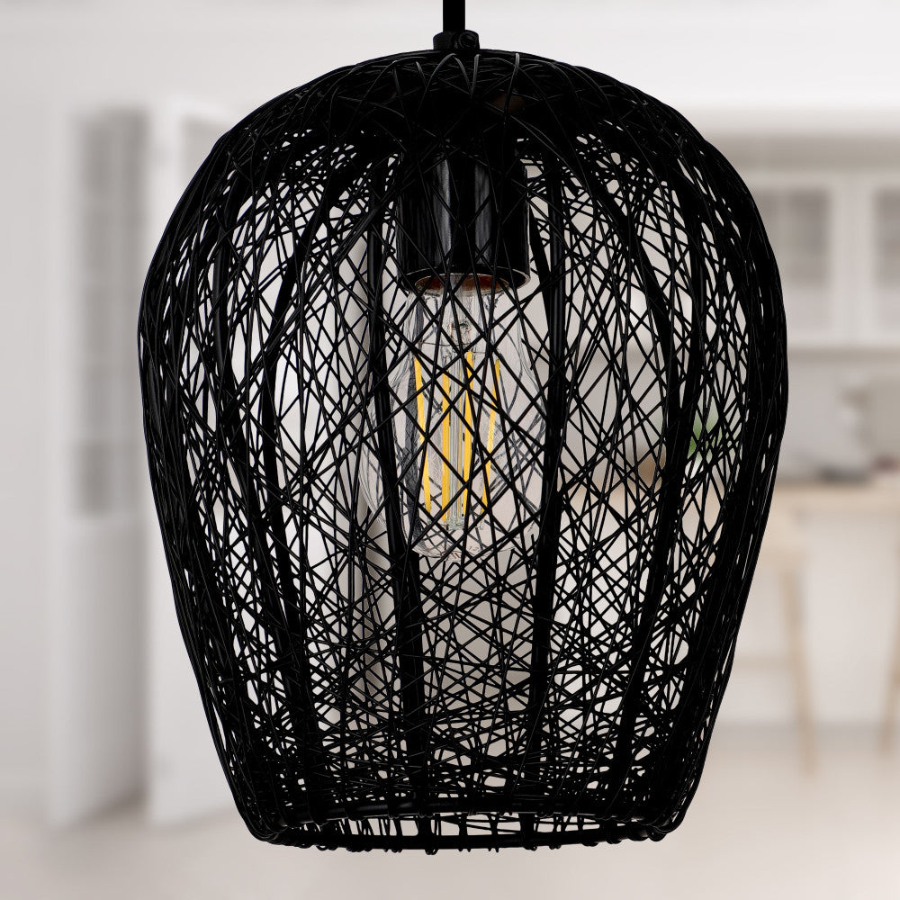 Enhance your home decor with this chic pendant light, which fuses a sense of glam, industrial and contemporary styles. With its multi-directional light, it helps to radiate warmth and ambience in every direction. Its attractive bell-shaped woven metal shade in a black finish adds a hint of grandeur to any room, while the intricate detailing provides a modern twist. This pendant light has an adjustable height feature, allowing you to choose the ideal drop for your space, making it perfect for high or low ceilings. Impeccably handcrafted, this pendant requires one Type A incandescent, CFL, or LED bulb up to 40 watts (not included) to radiate a cozy, inviting glow.
