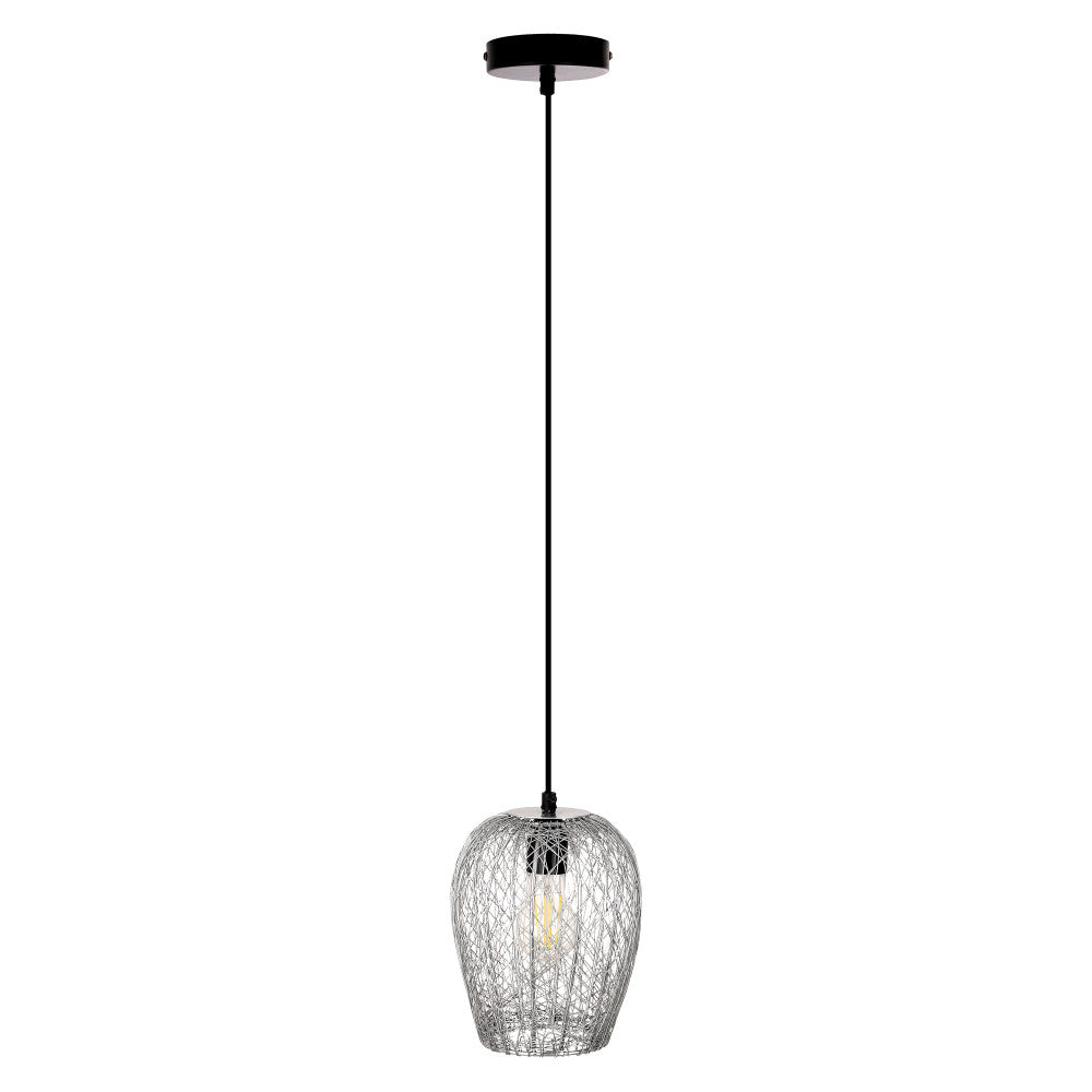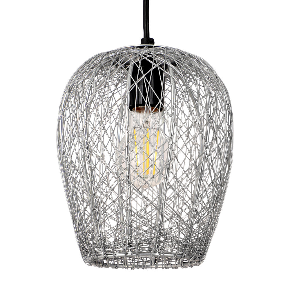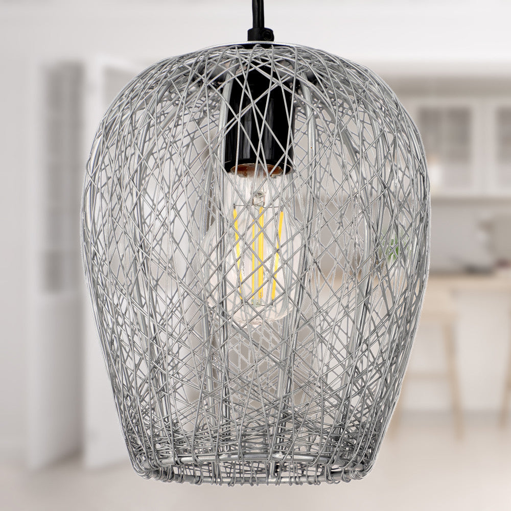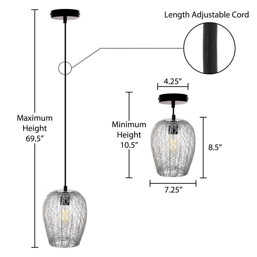 Enhance your home decor with this chic pendant light, which fuses a sense of glam, industrial and contemporary styles. With its multi-directional light, it helps to radiate warmth and ambience in every direction. Its attractive bell-shaped woven metal shade in a silver finish adds a hint of grandeur to any room, while the intricate detailing provides a modern twist. This pendant light has an adjustable height feature, allowing you to choose the ideal drop for your space, making it perfect for high or low ceilings. Impeccably handcrafted, this pendant requires one Type A incandescent, CFL, or LED bulb up to 40 watts (not included) to radiate a cozy, inviting glow.