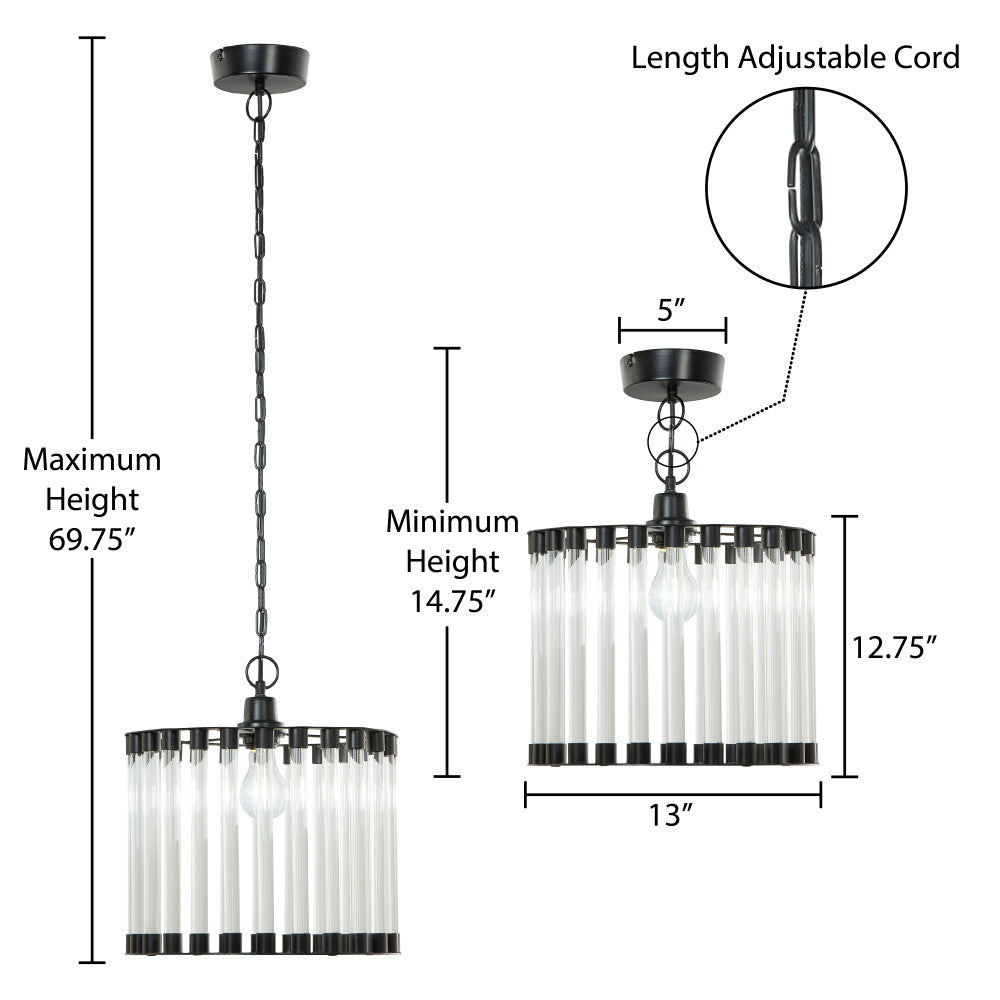 13" W Trudie Clear and Black Glass and Metal Pendant Light