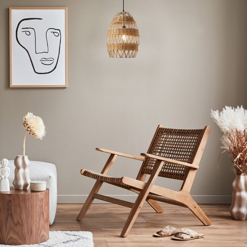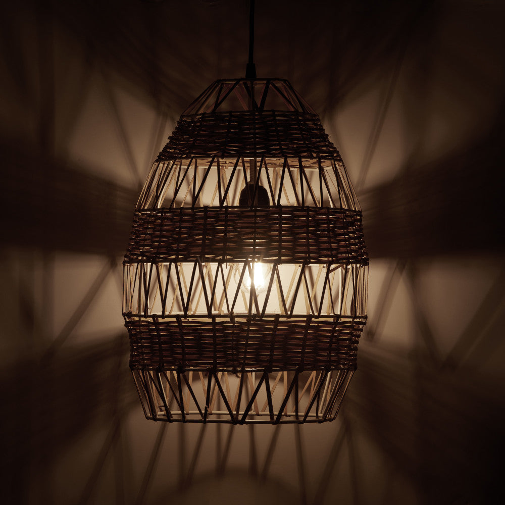 This hardwired hanging pendant light with a dome shade will add lovely lighting and a cool bohemian decor accent to any room in your home. Made with a painted white-finish metal canopy and a tan rattan shade with a tiered band design, this pendant light casts a soft, warm glow with the help of one 40-watt Type A bulb (not included). An easy pairing with other bohemian or modern decor, it also features an adjustable hanging cord that lets you set the drop height from 20 inches to 79 inches to best fit your space.