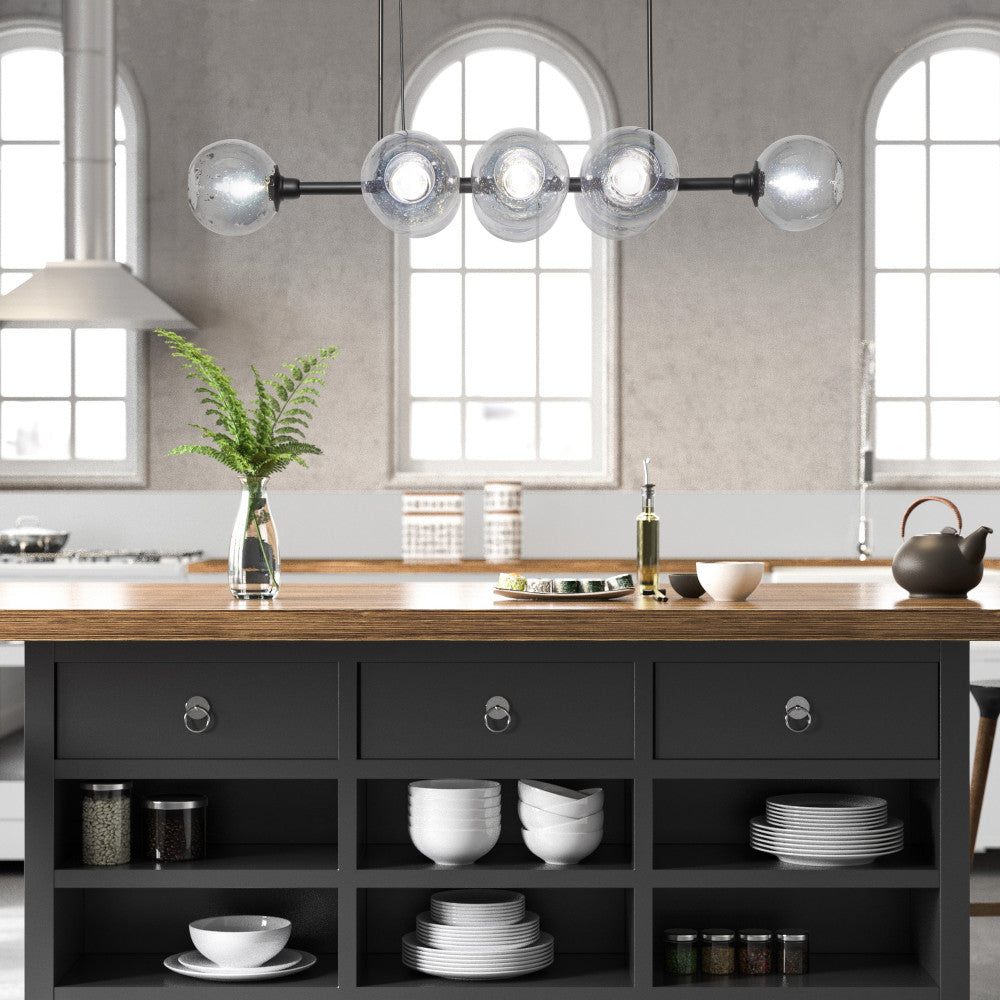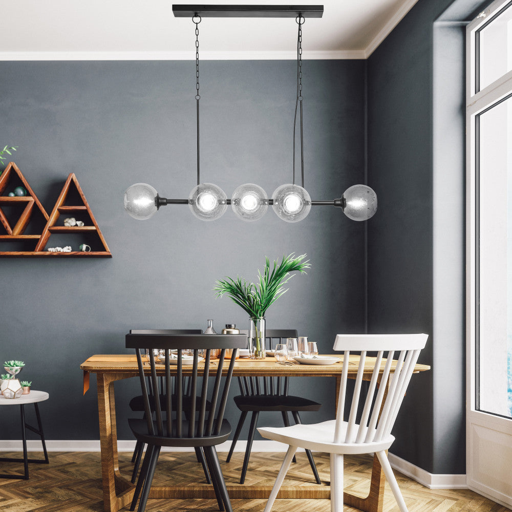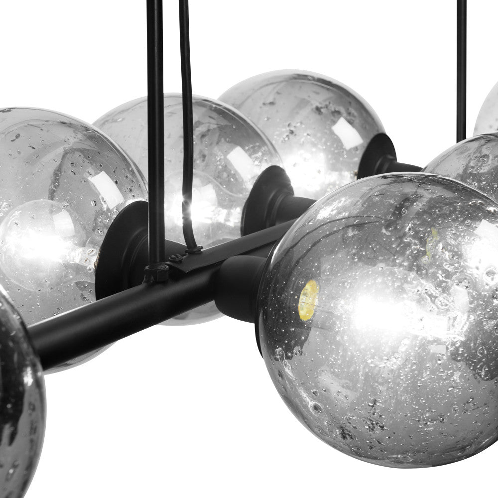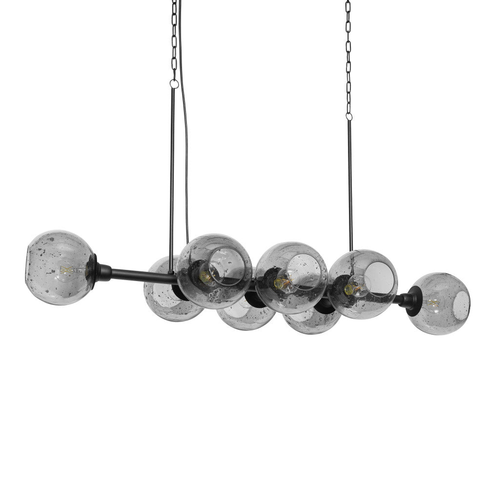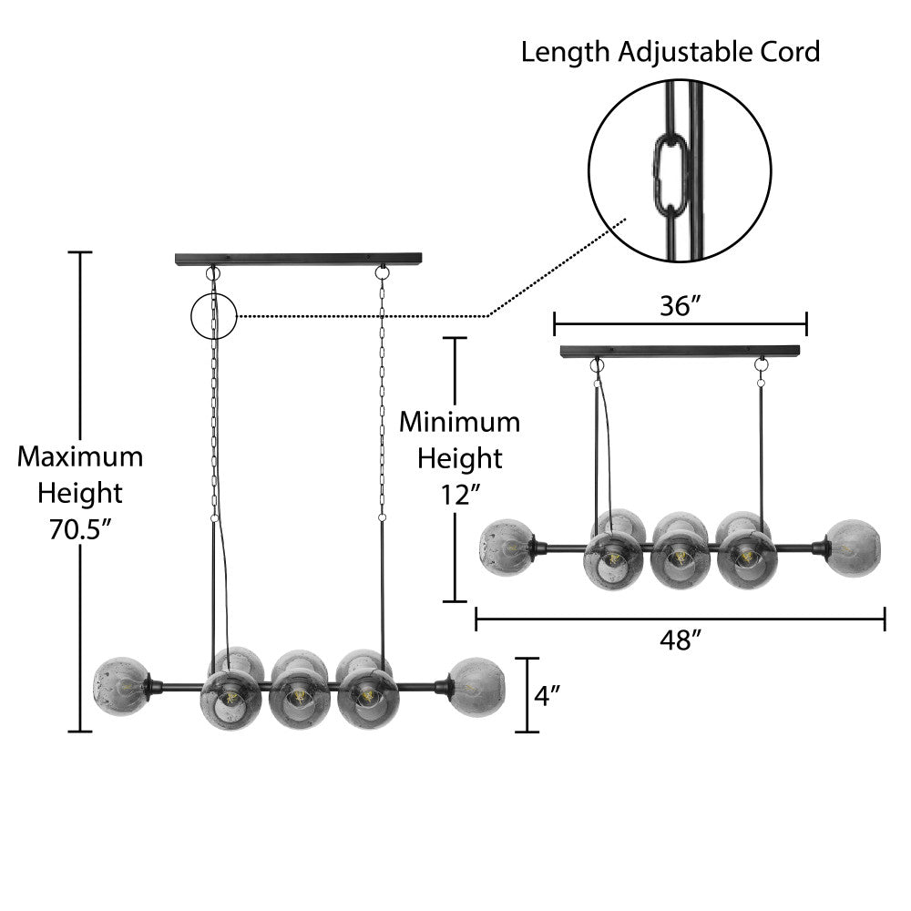 Bring elegant lighting to your living room, kitchen or foyer with this unique mixed-material chandelier. Showcasing a rectangular black-finish metal canopy and eight smoky glass globe shades attached to a black metal frame, it makes an excellent pairing with modern, industrial or glam decor. The chandelier casts light all around with the help of eight 40-watt Type A bulbs (not included). And thanks to the adjustable hanging cord, you can set the drop height anywhere from 12 inches to 70.5 inches to best fit your space.